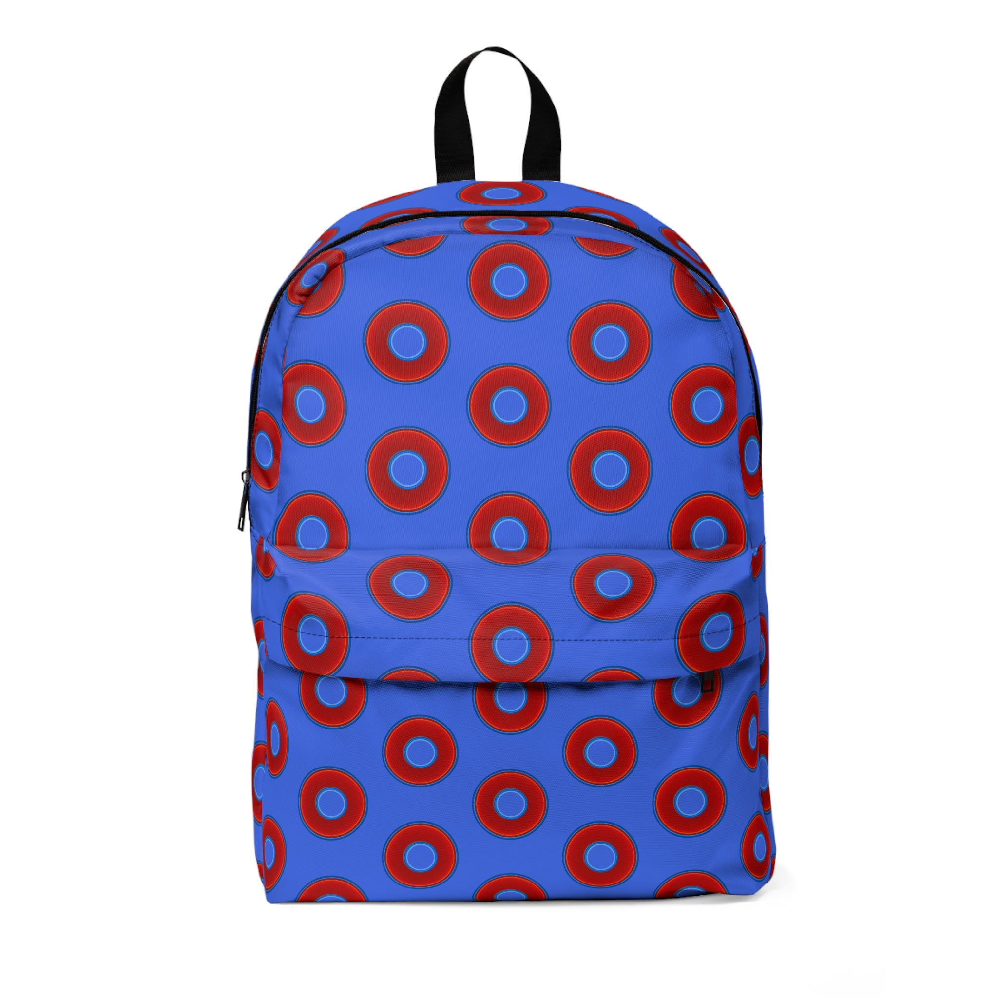 Donut Backpack - red vivid donuts w/royal blue background