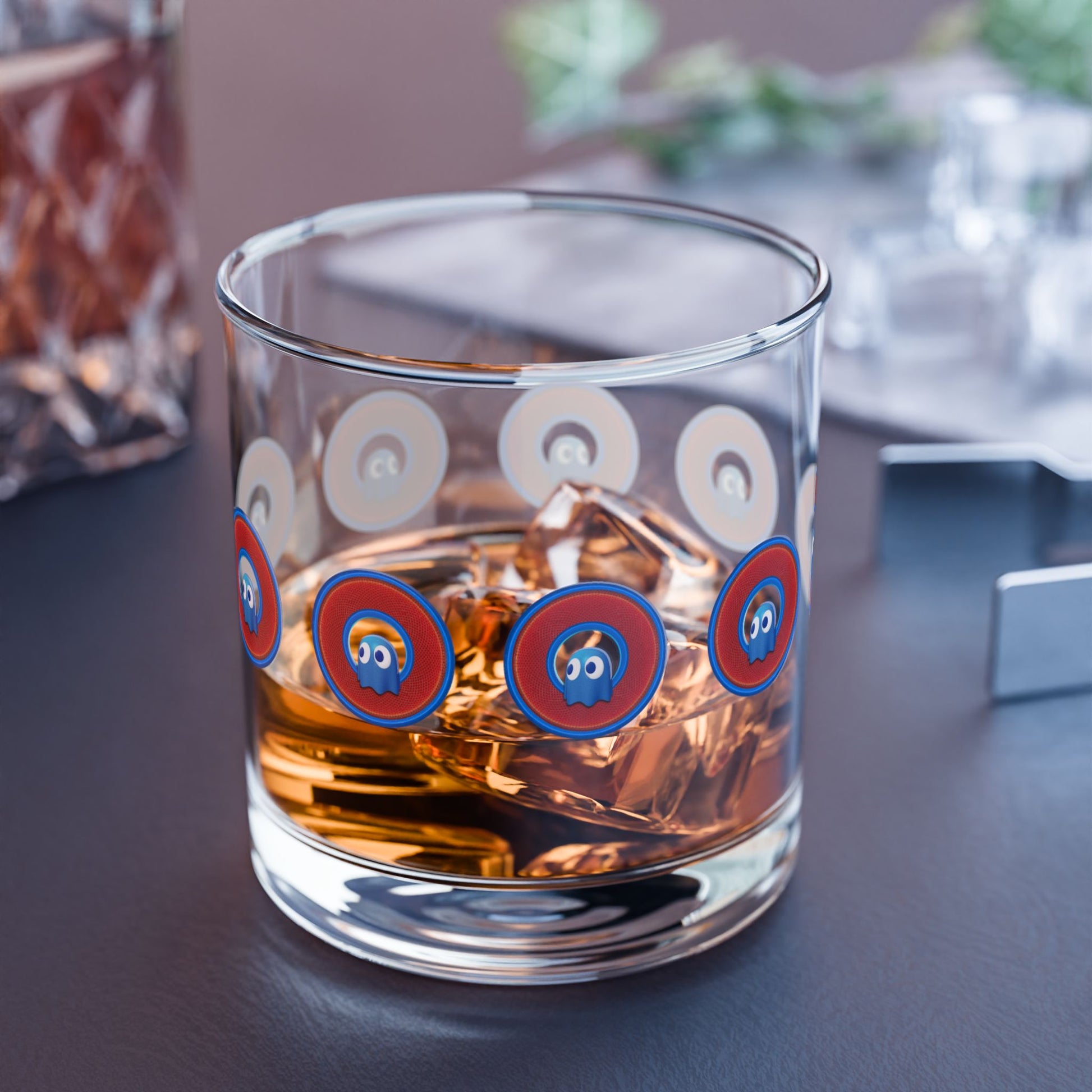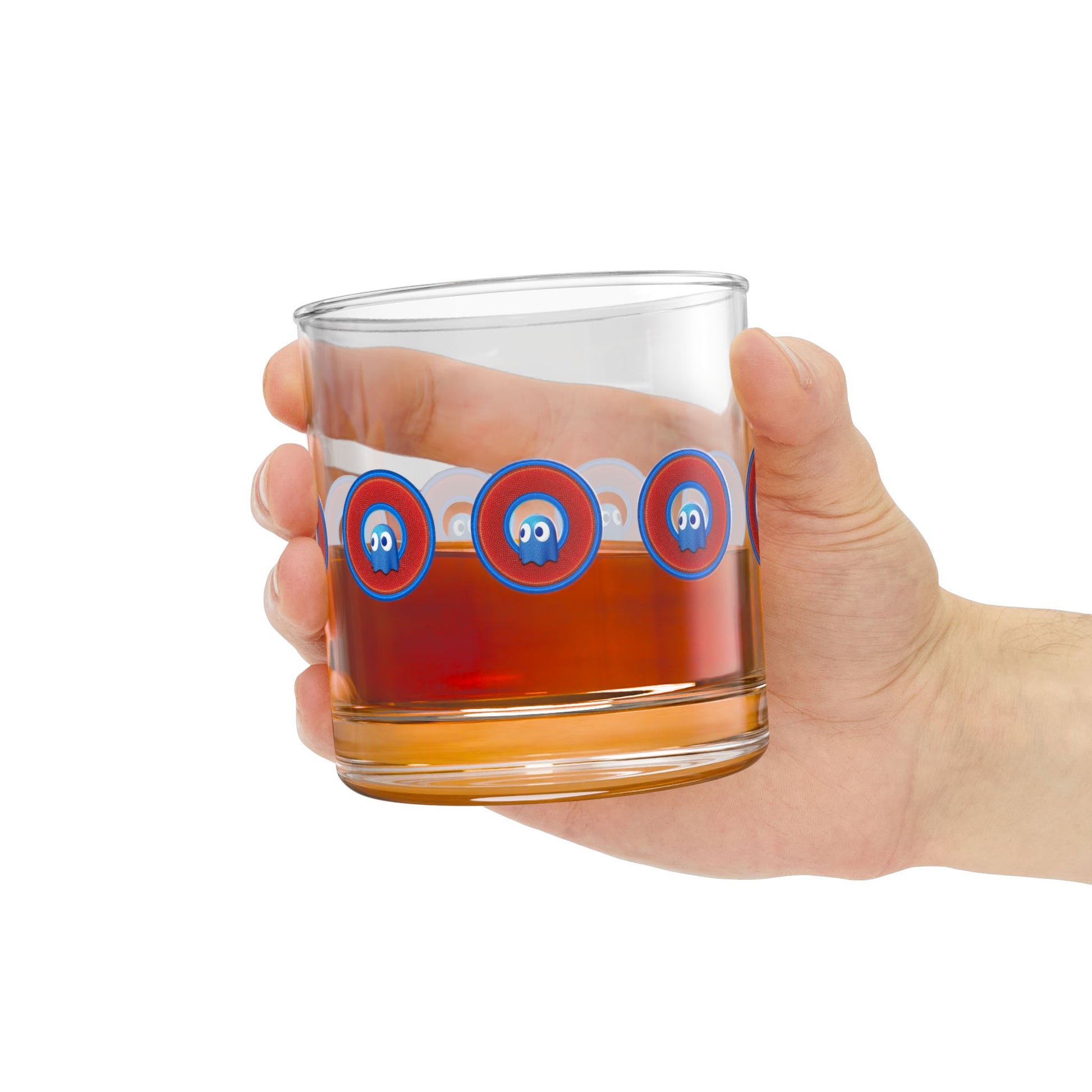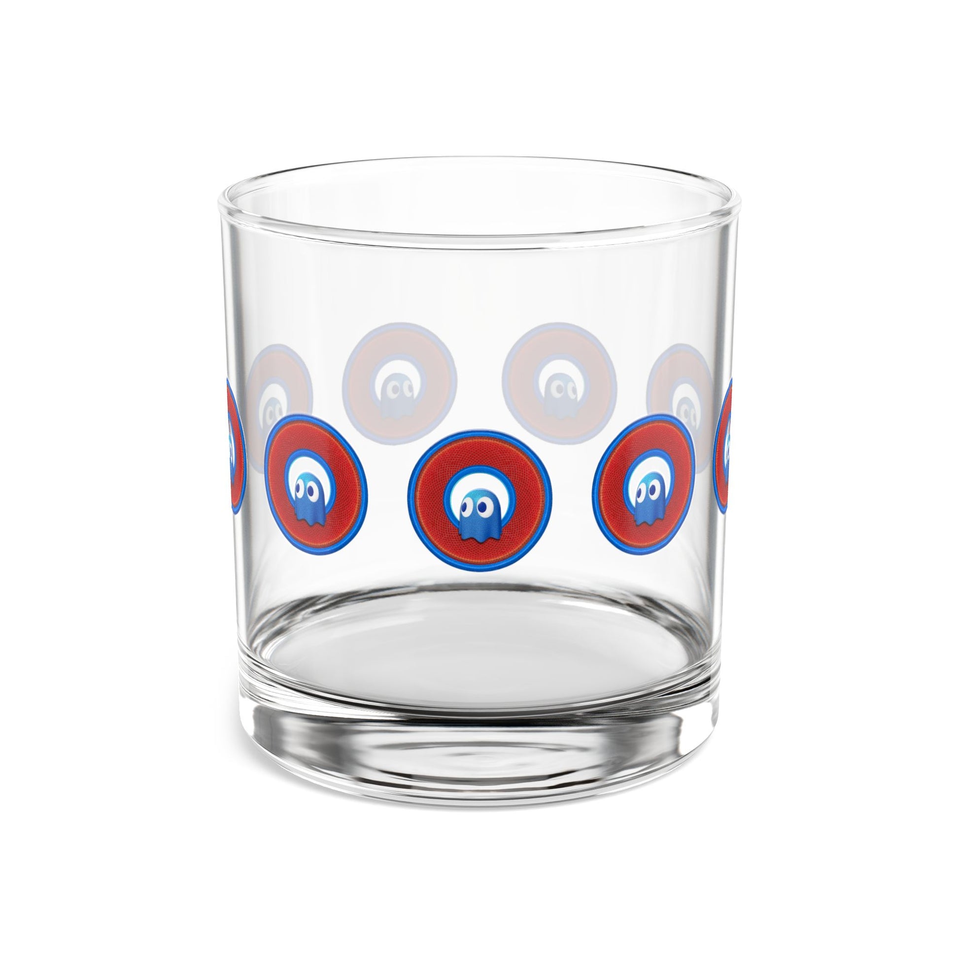 10oz Lumpy Rock Glass - "Story of the Rock Glass" - blue/red rustic donut