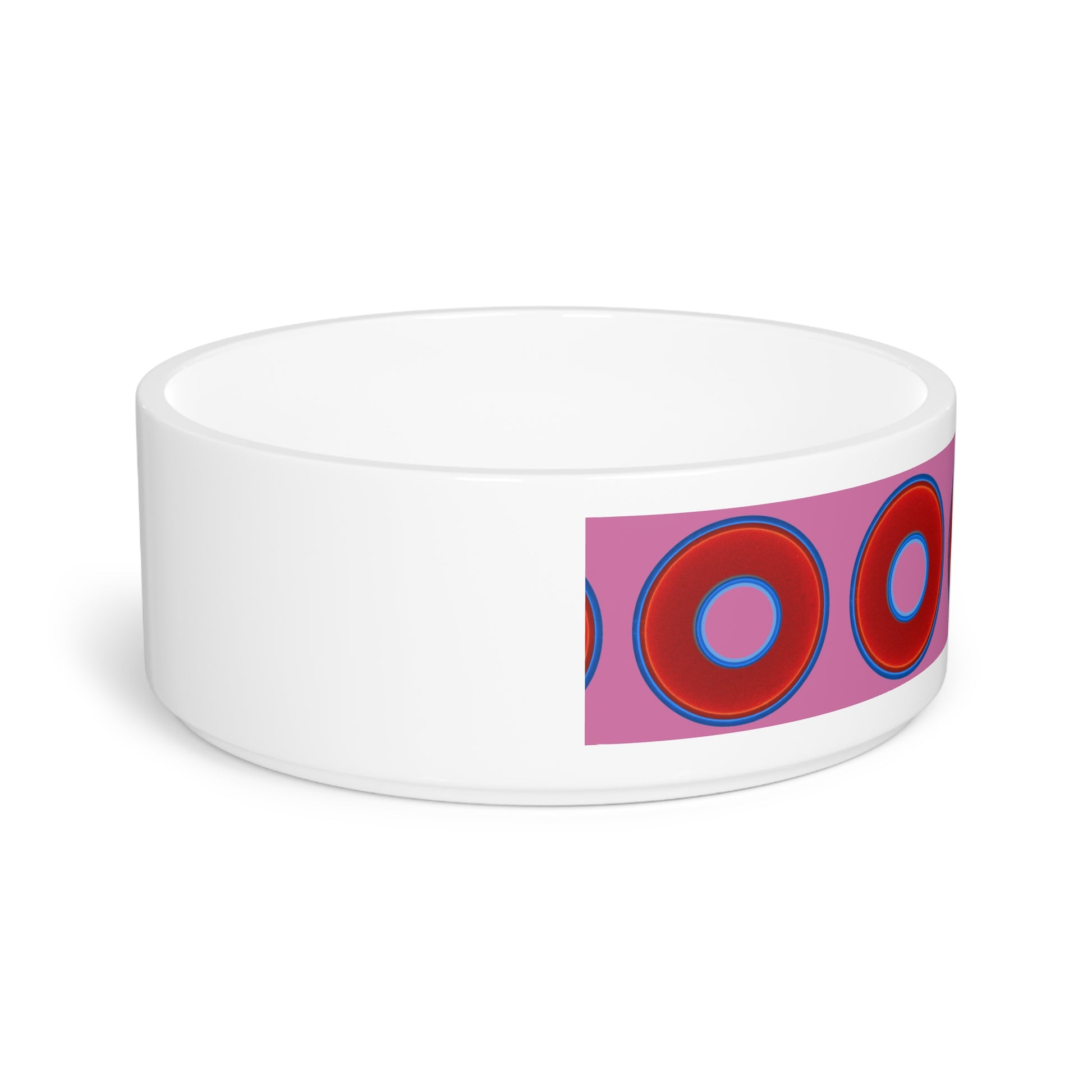 16 oz Lumpy Pet Bowl - vivid red donuts w/pink background