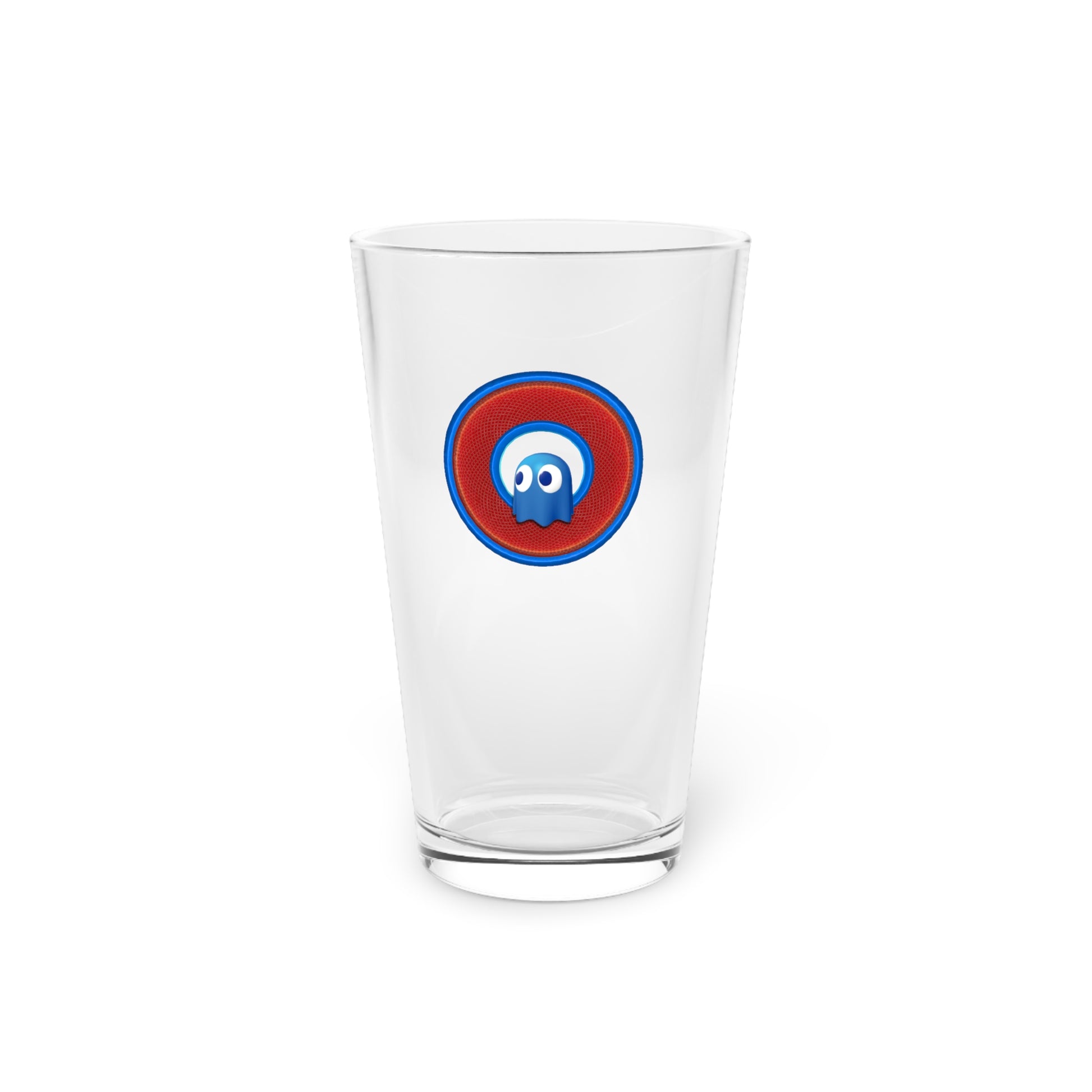 16oz Lumpy Pint Glass - "Story of the Pint Glass" - variant 1 - rustic red/blue donut