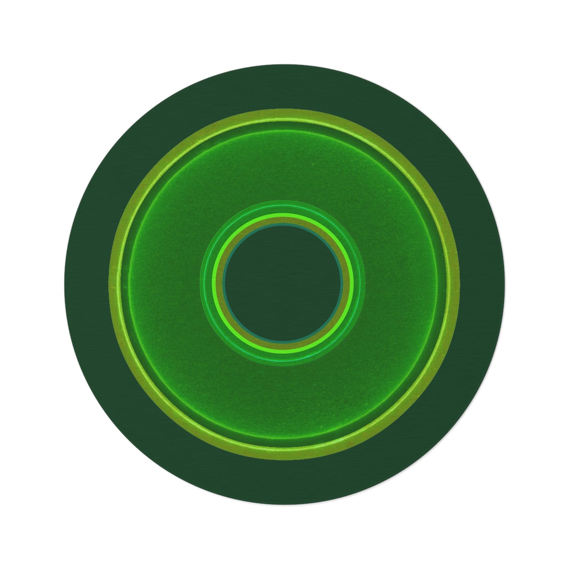 Round Room - 5 ft x 5 ft Lumpy Donut Rug - "Plain Donut" - green vivid donut print w/deep pond green background