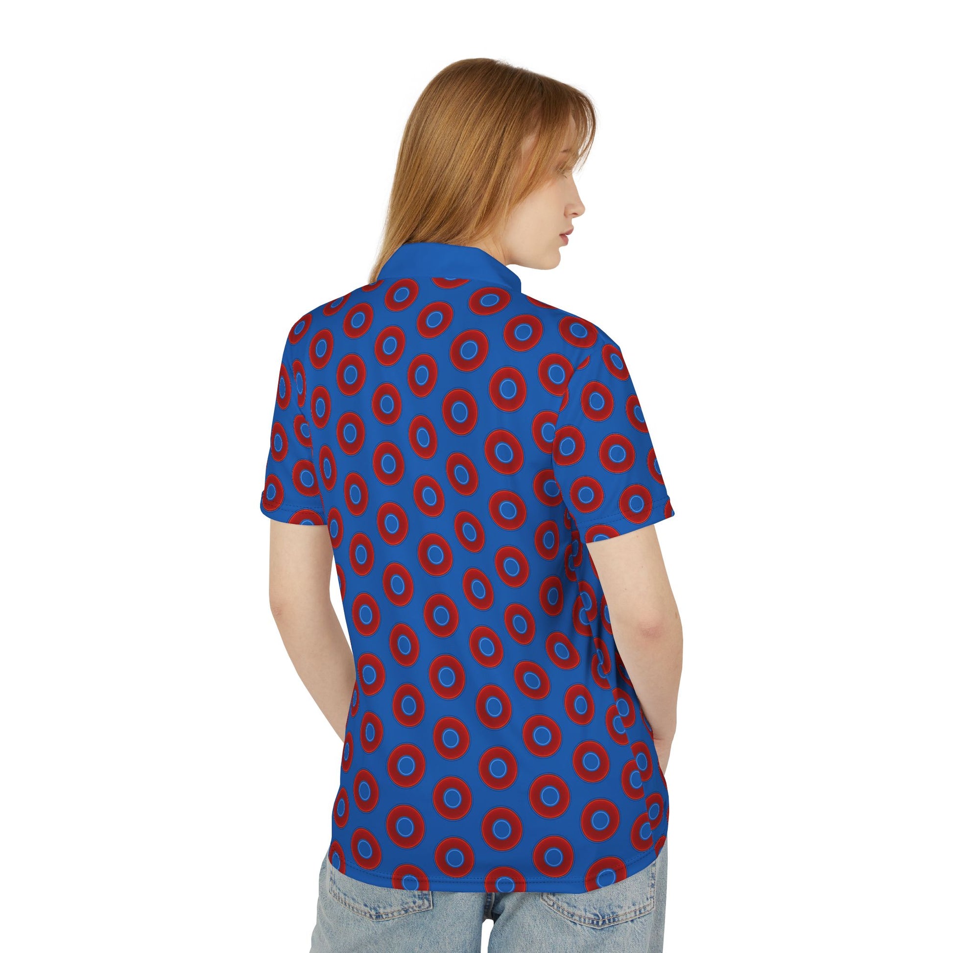 AOP Donut Polo - vivid donut print w/dark royal blue background [unisex]