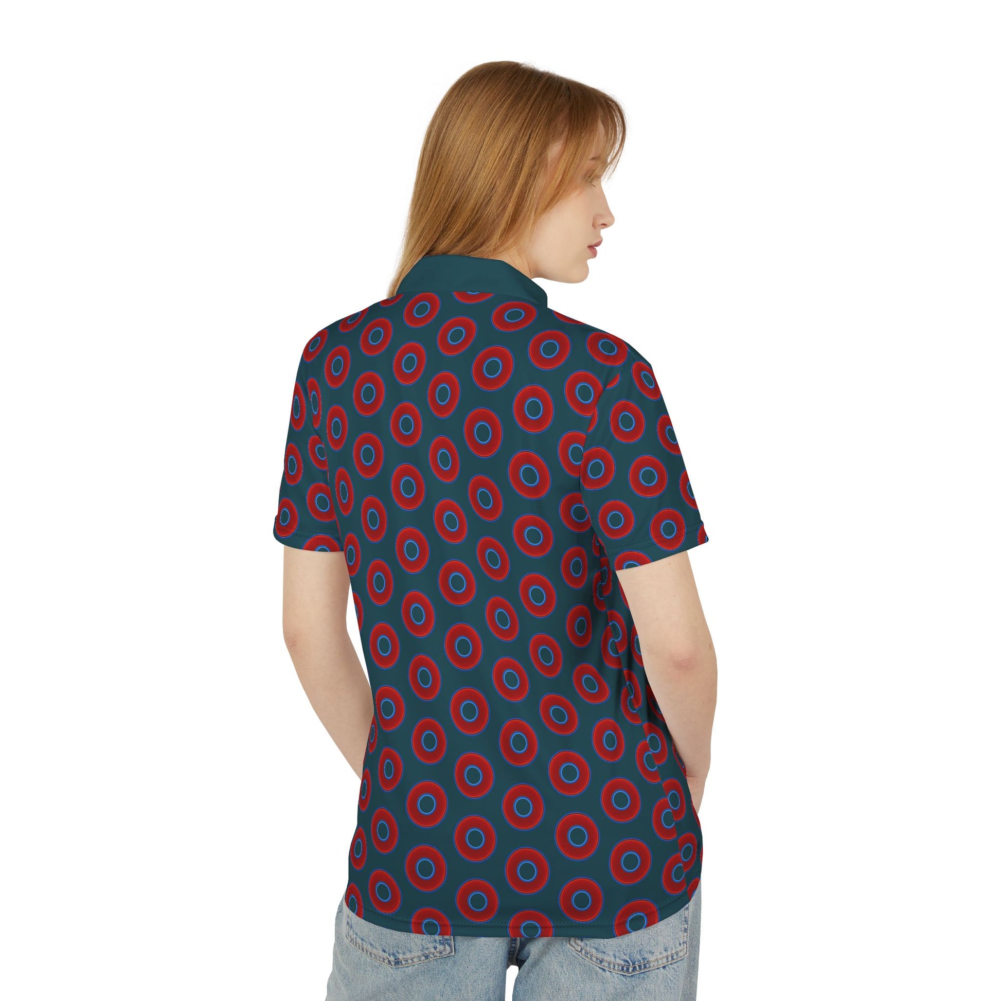 AOP Donut Polo - vivid donut print w/midnight teal green background [unisex]