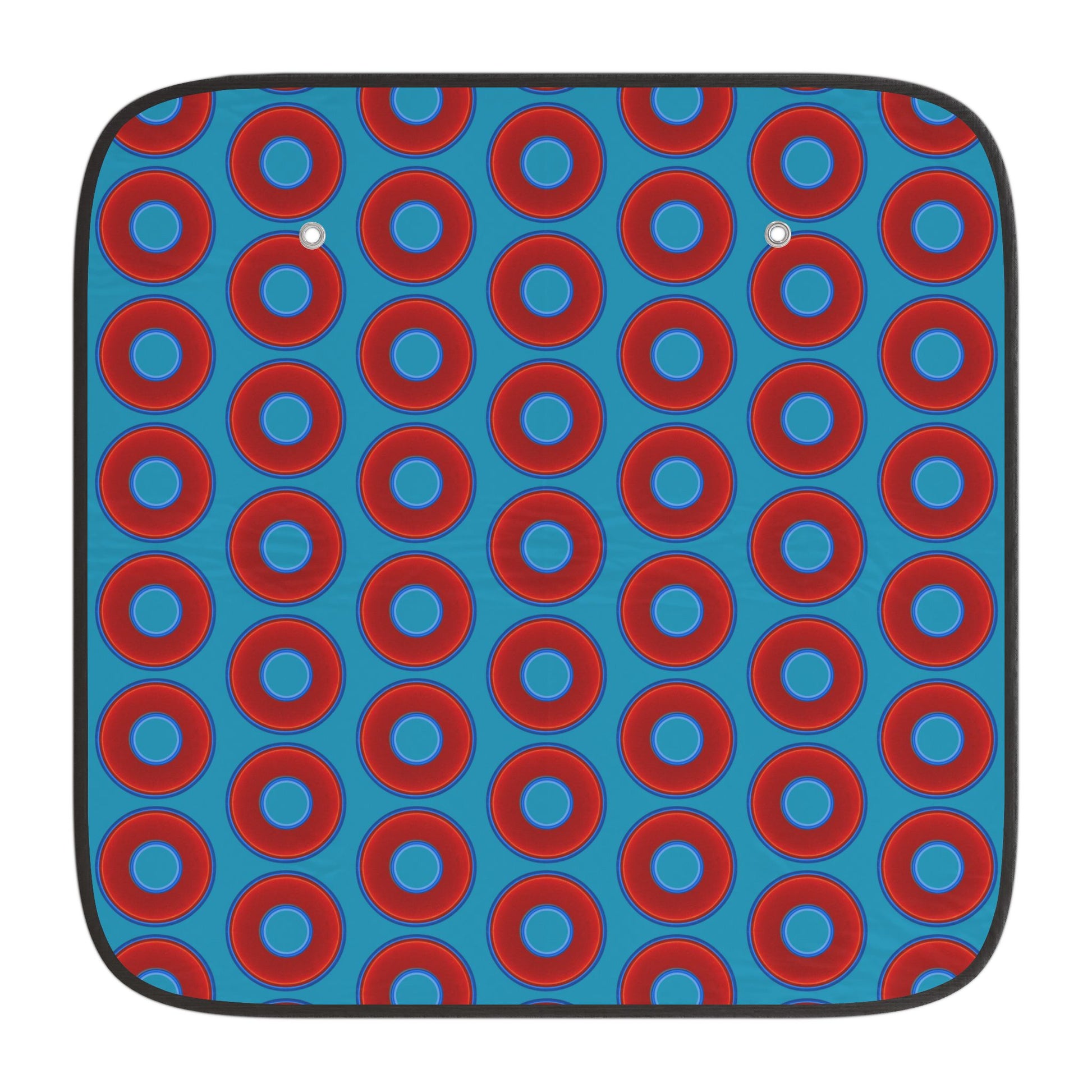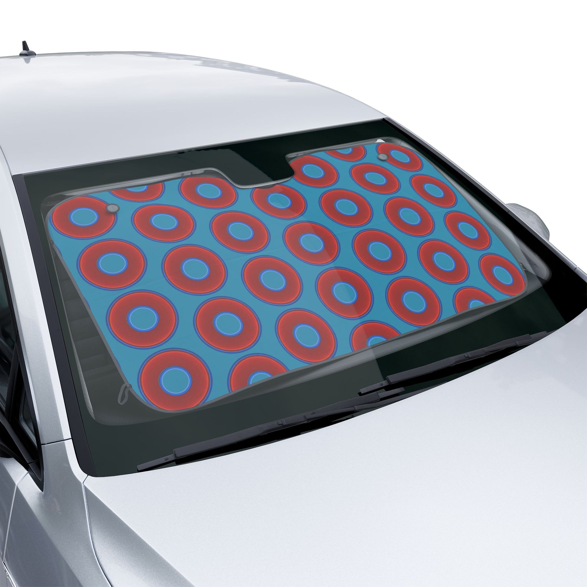 Automotive Donut Sun Shade - red vivid donuts w/aquamarine blue background