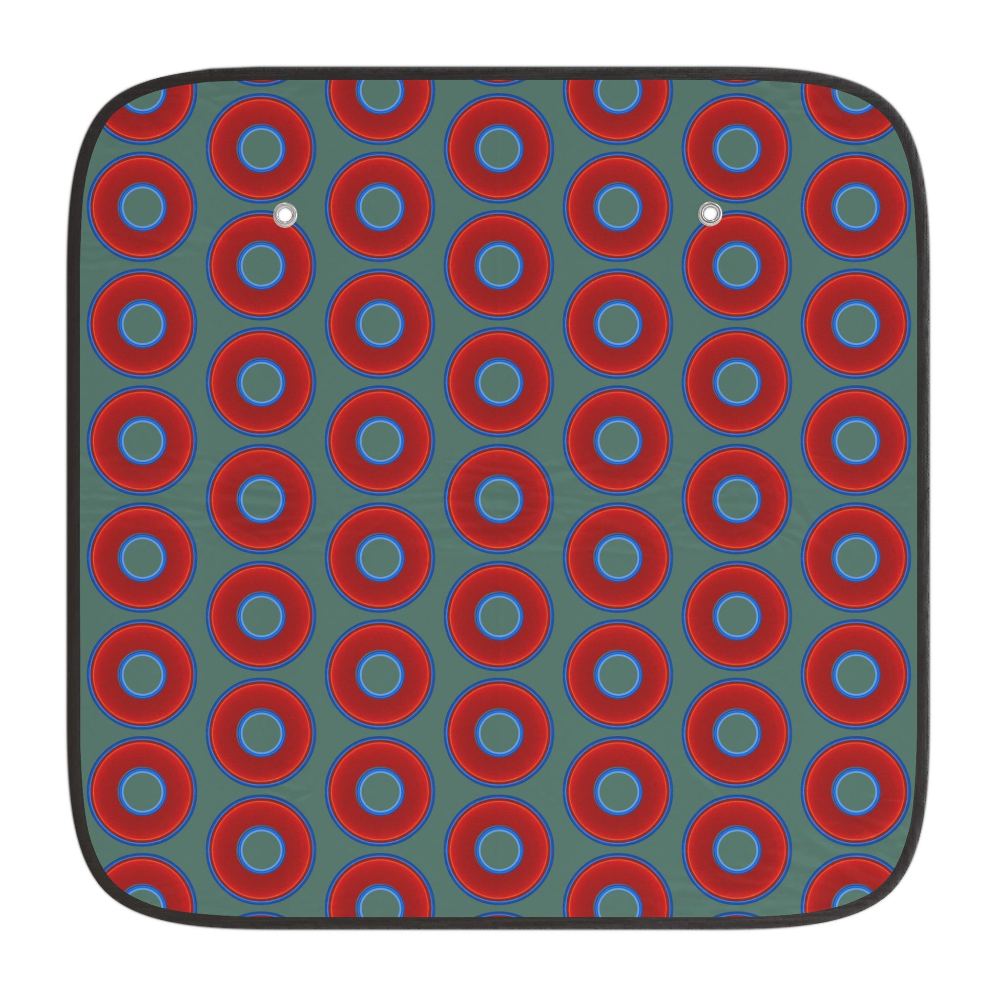 Automotive Donut Sun Shade - red vivid donuts w/Fenway green background