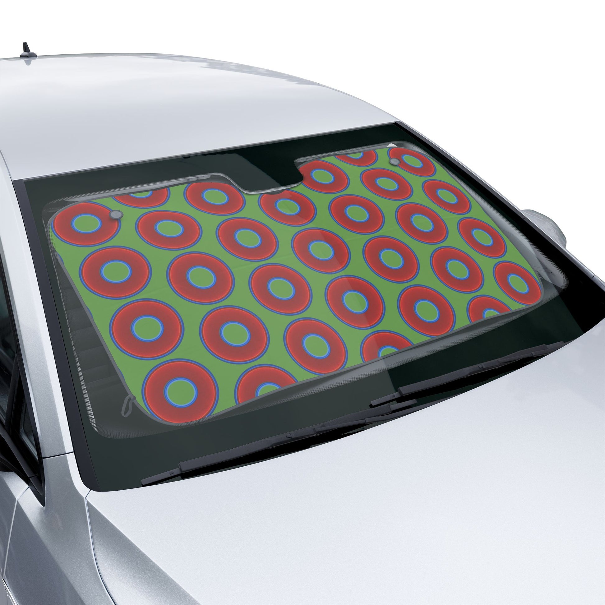 Automotive Donut Sun Shade - red vivid donuts w/light green background