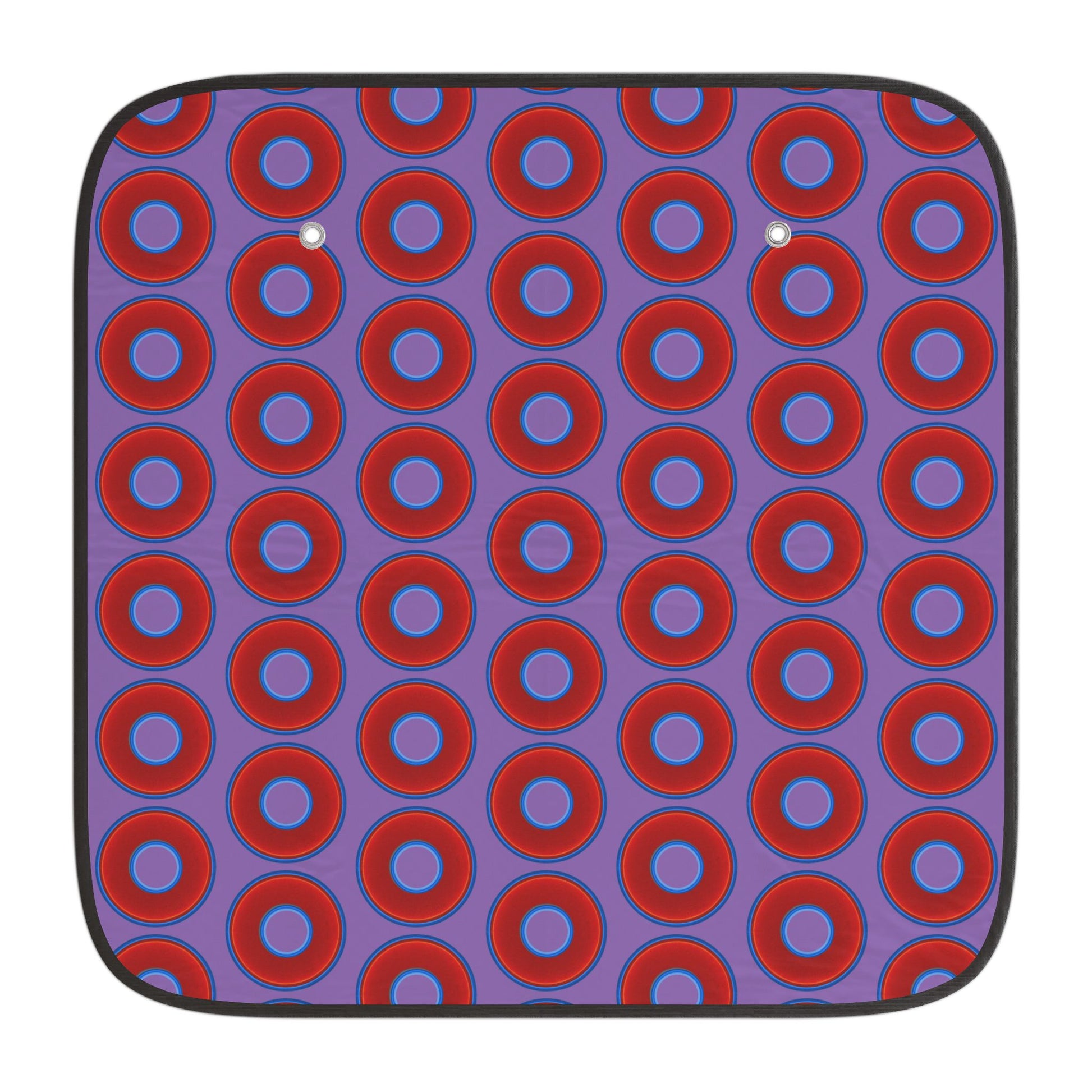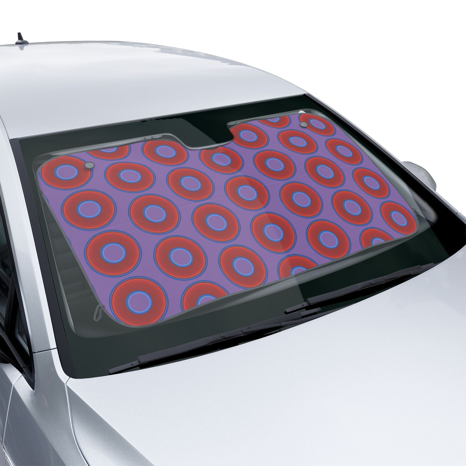 Automotive Donut Sun Shade - red vivid donuts w/light purple background