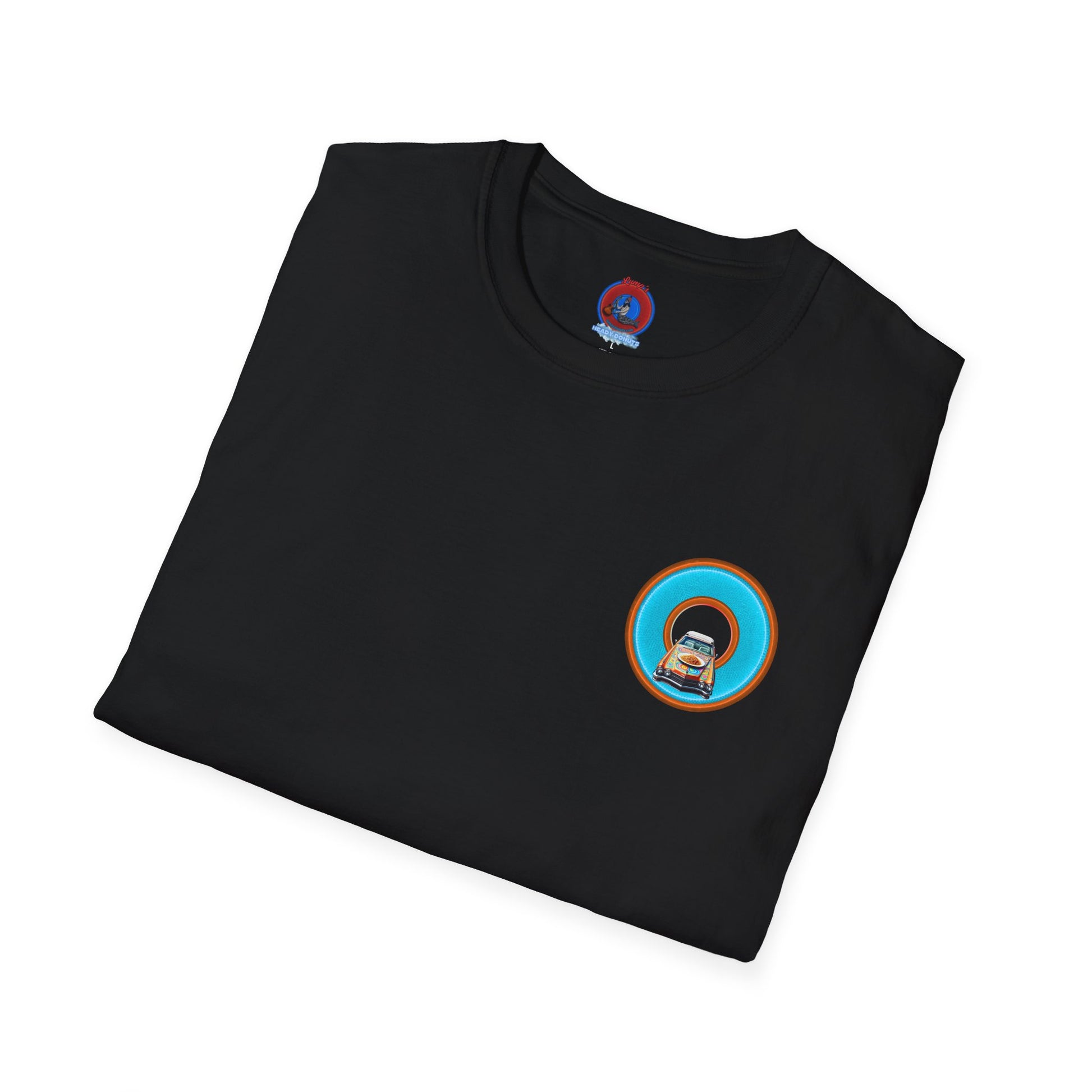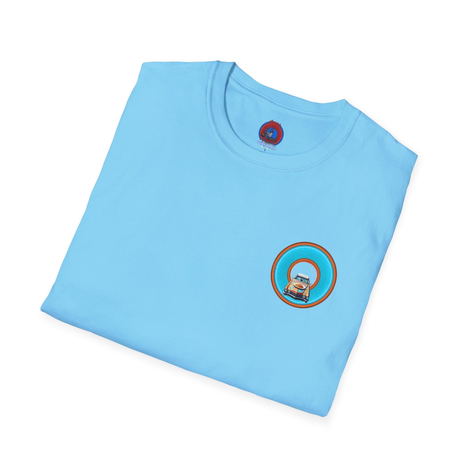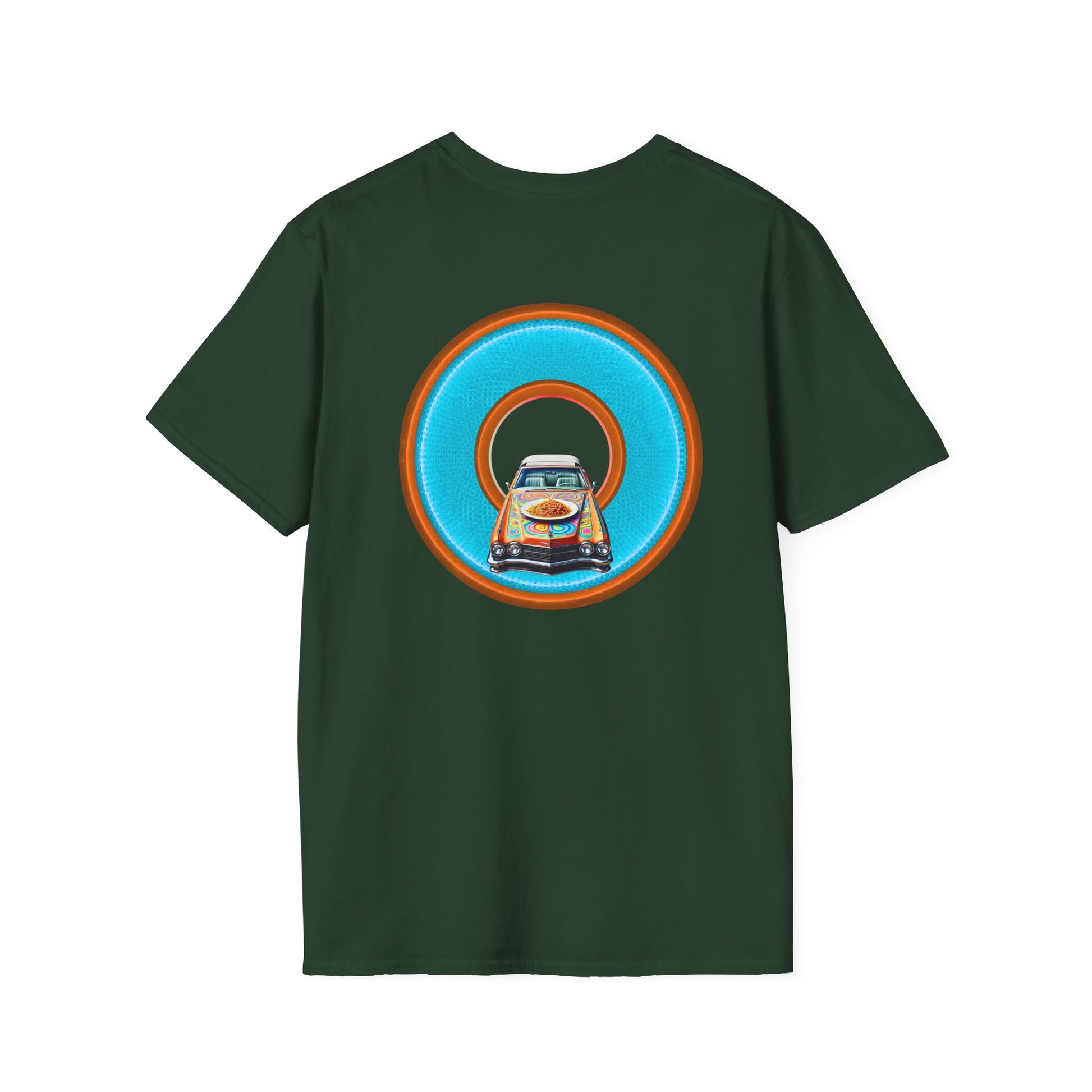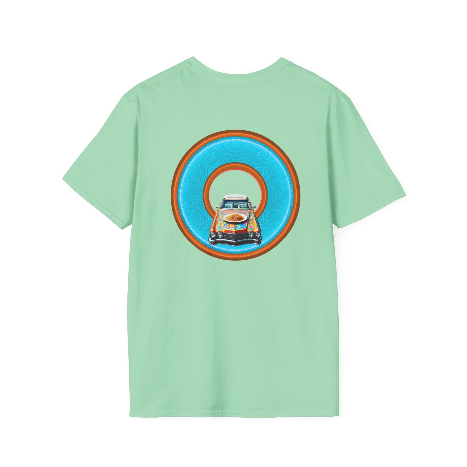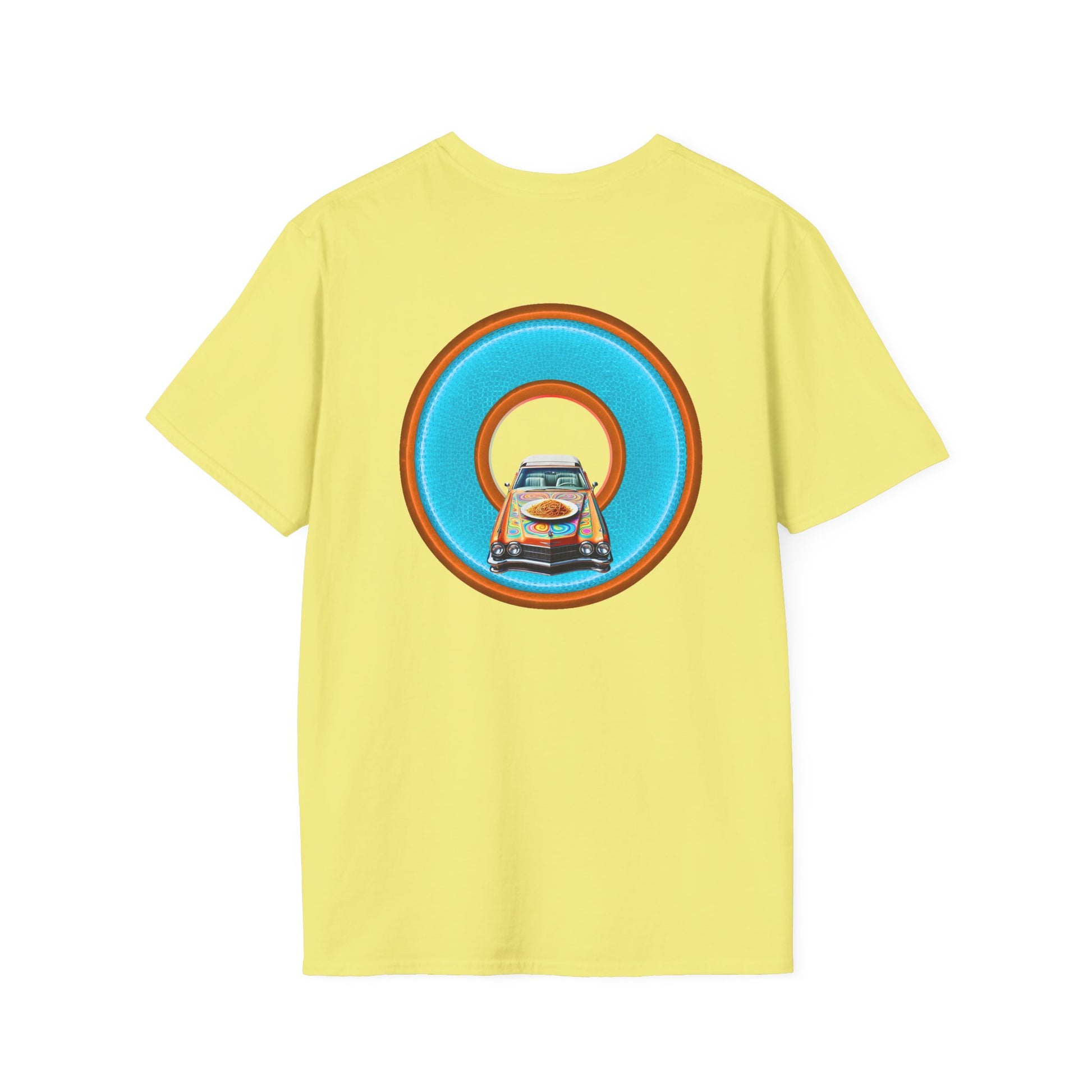 Classic Donut Tee - Unisex Soft-Style - "Cadillac Rainbow Spaghetti Incident" - series 1.0 - variant 2 - blue/orange donut
