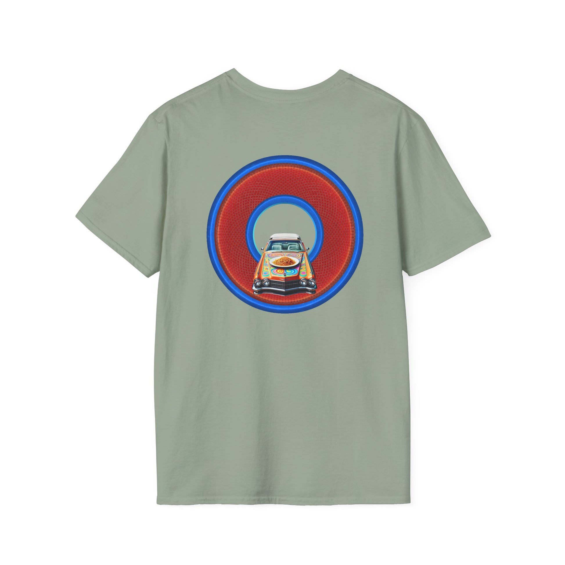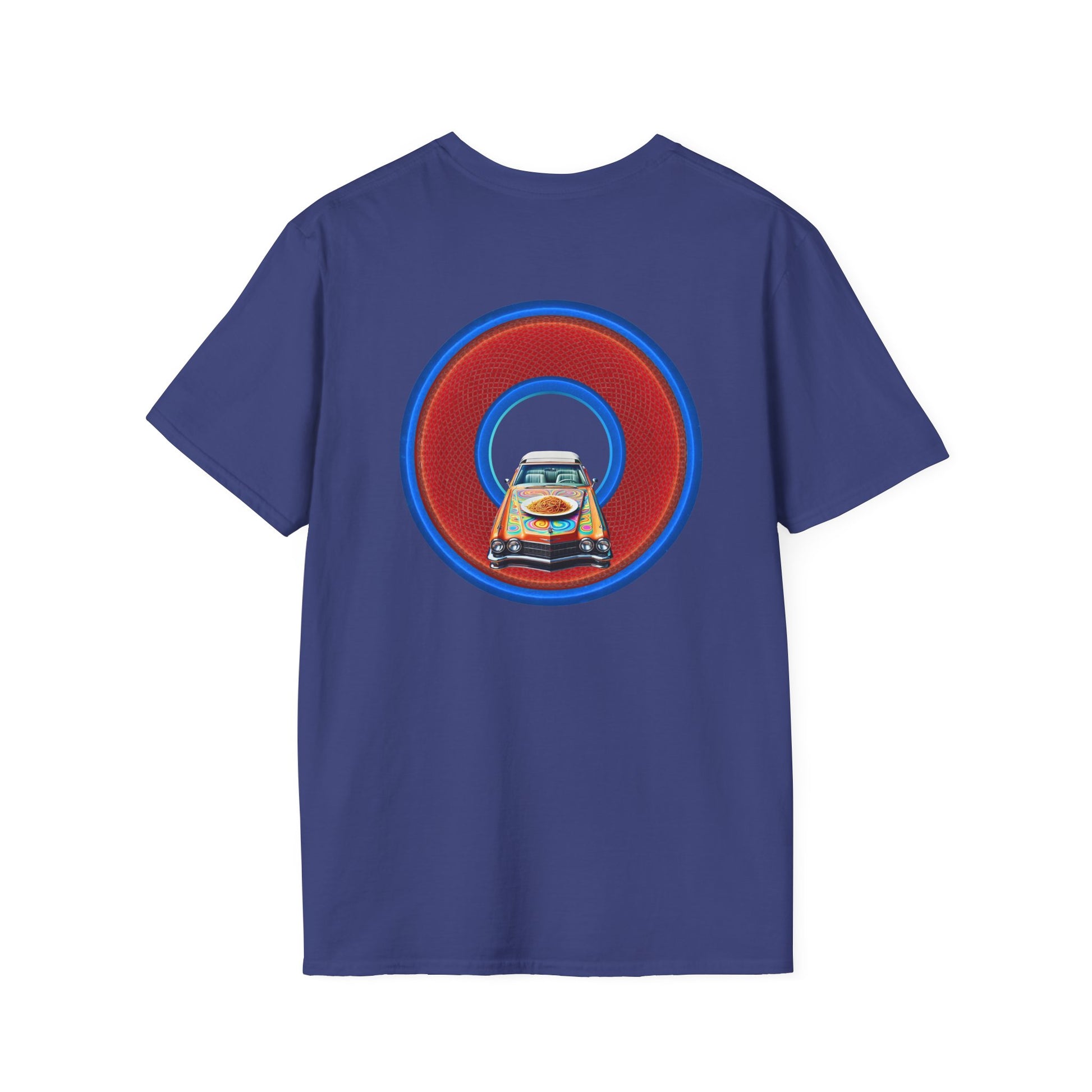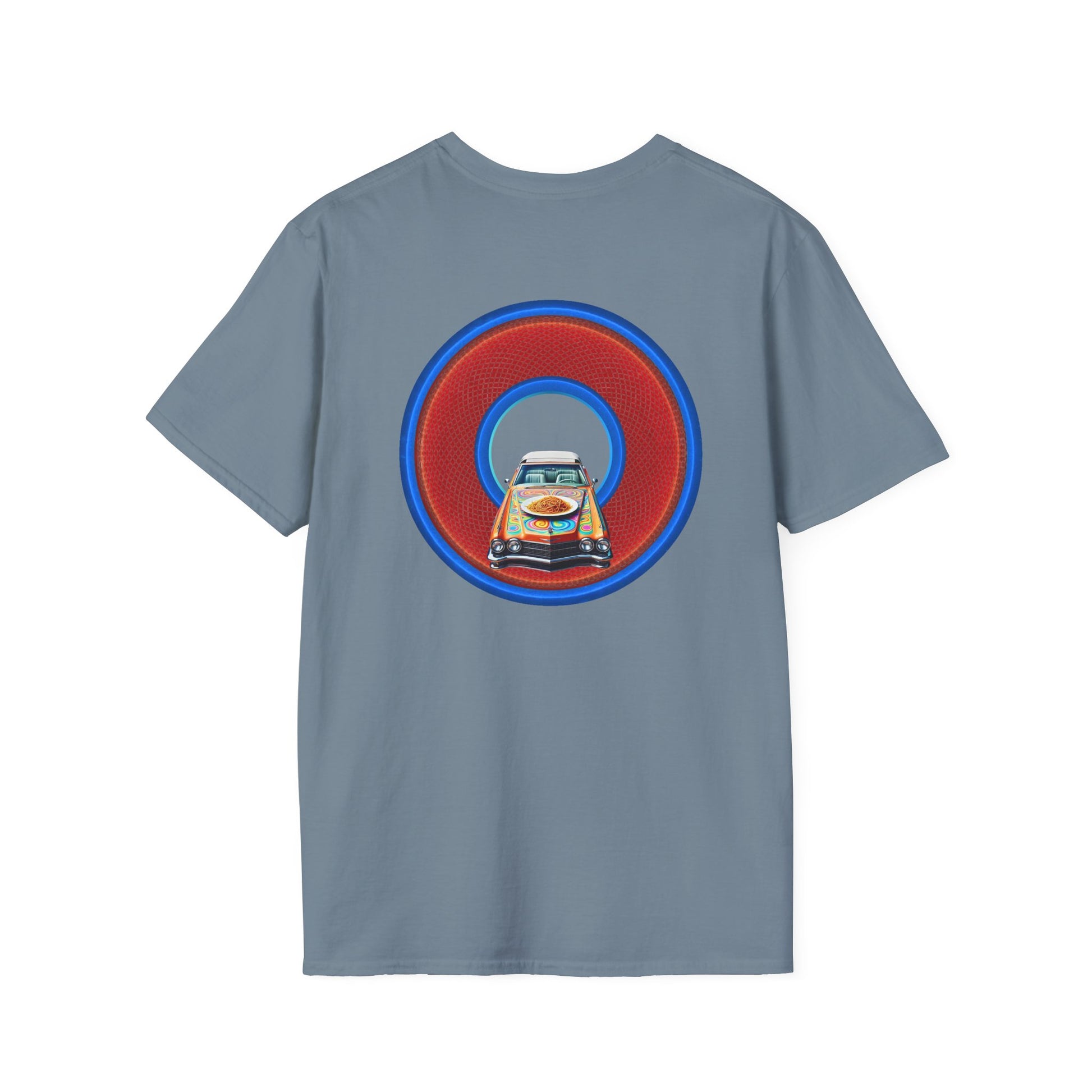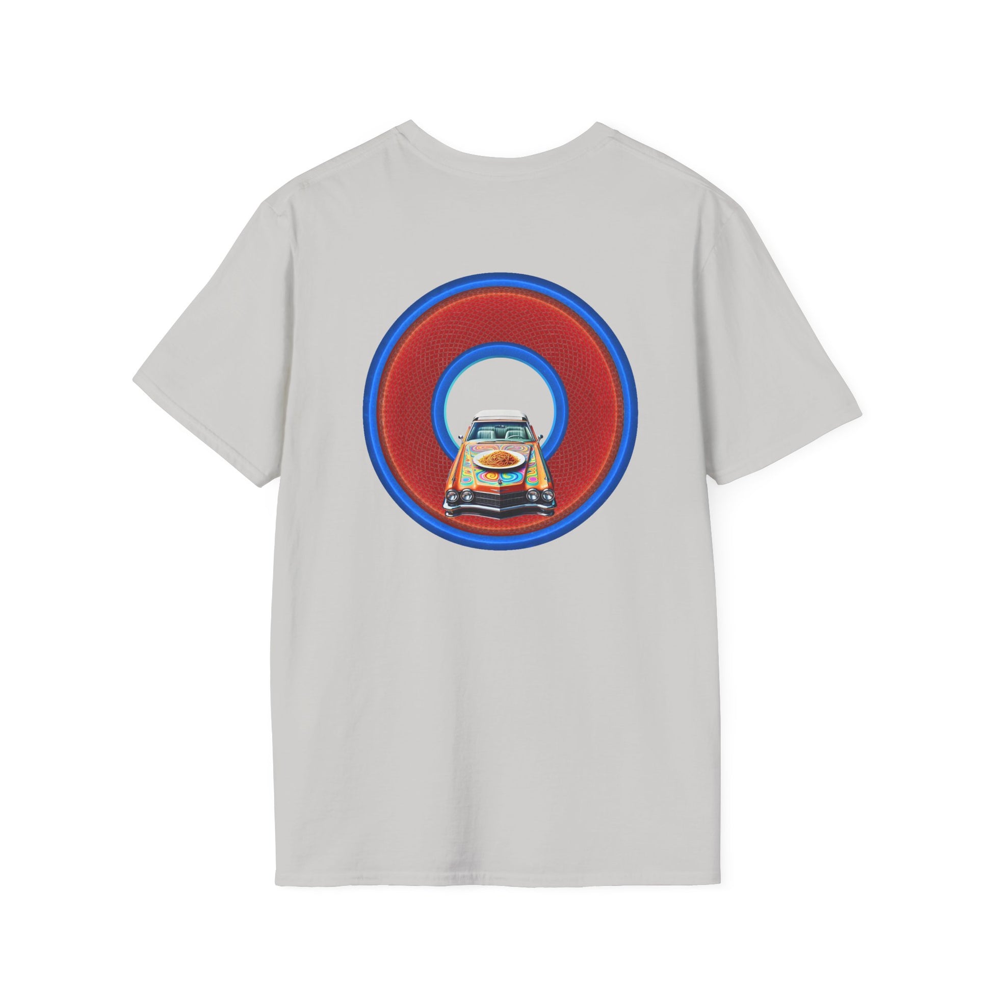 Classic Donut Tee - Unisex Soft-Style - "Cadillac Rainbows Spaghetti Incident" - series 1.0 - variant 4 - red/blue donut