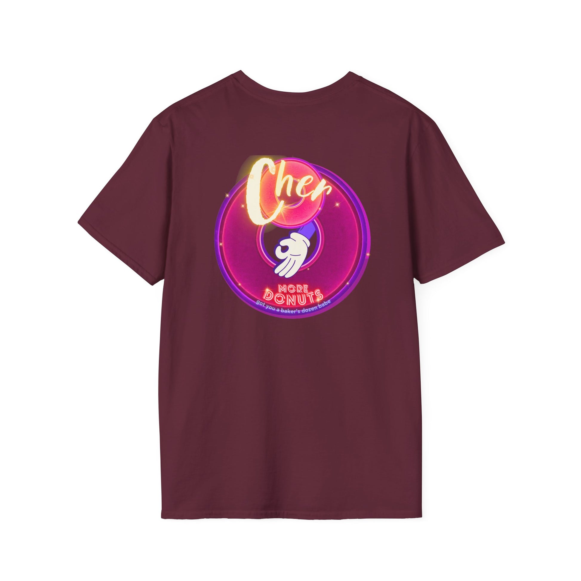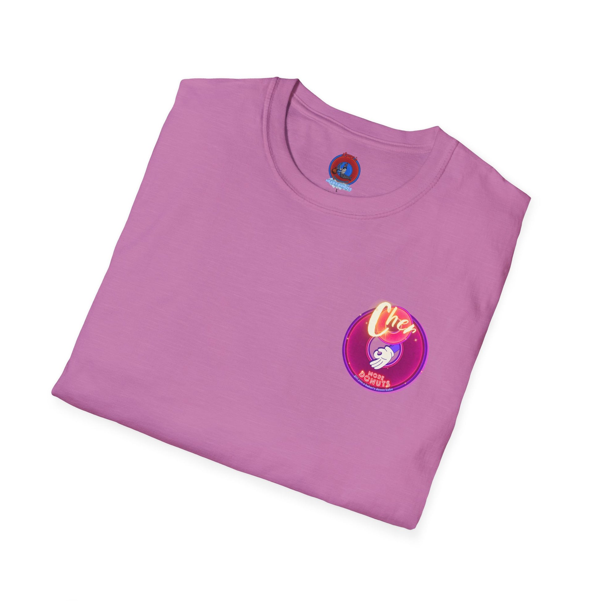 Classic Donut Tee - Unisex Soft-Style - "Cher-ing is Caring" - series 1.0 - variant 1 - magenta donuts [*charitable donut]