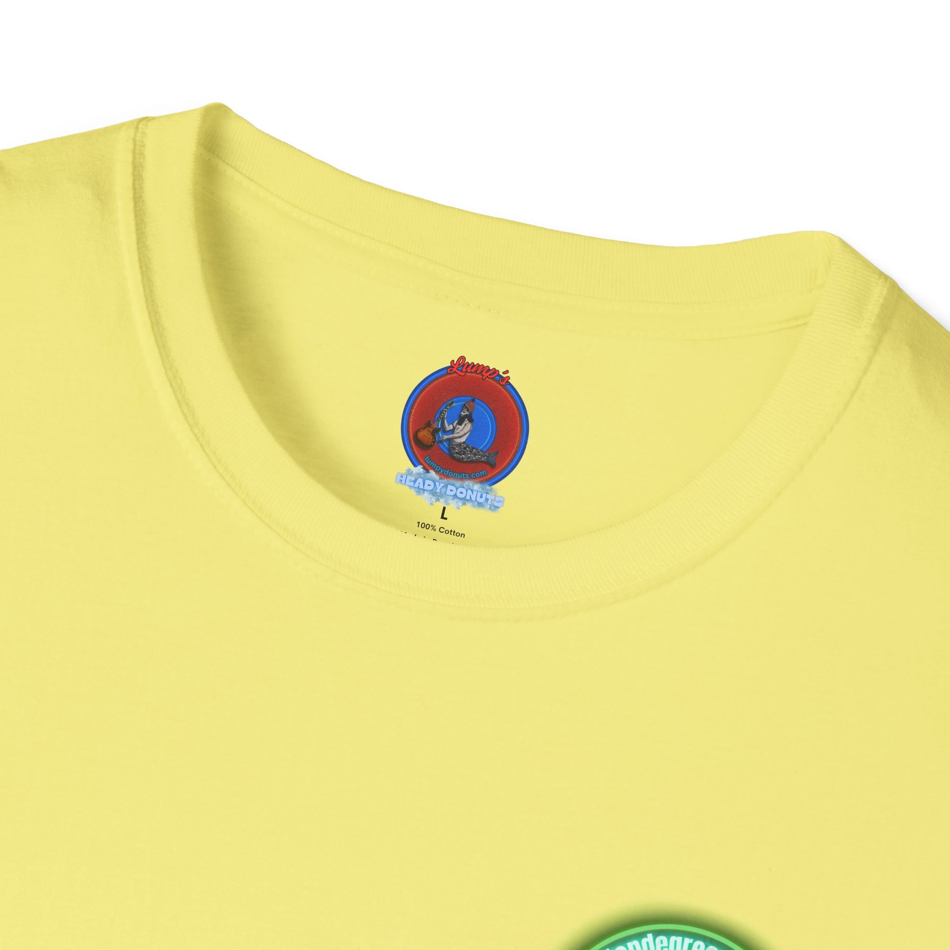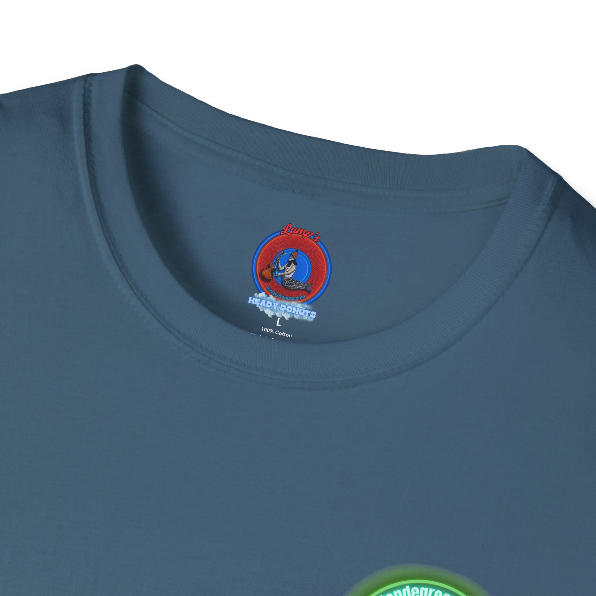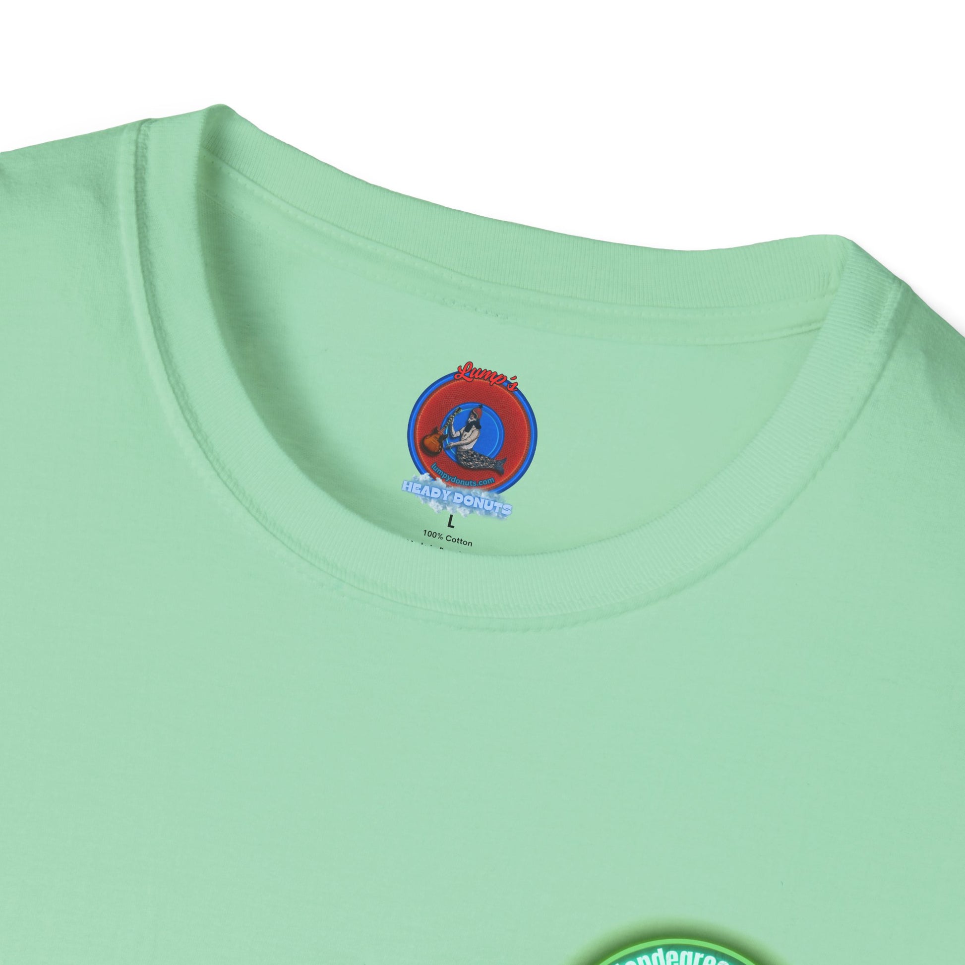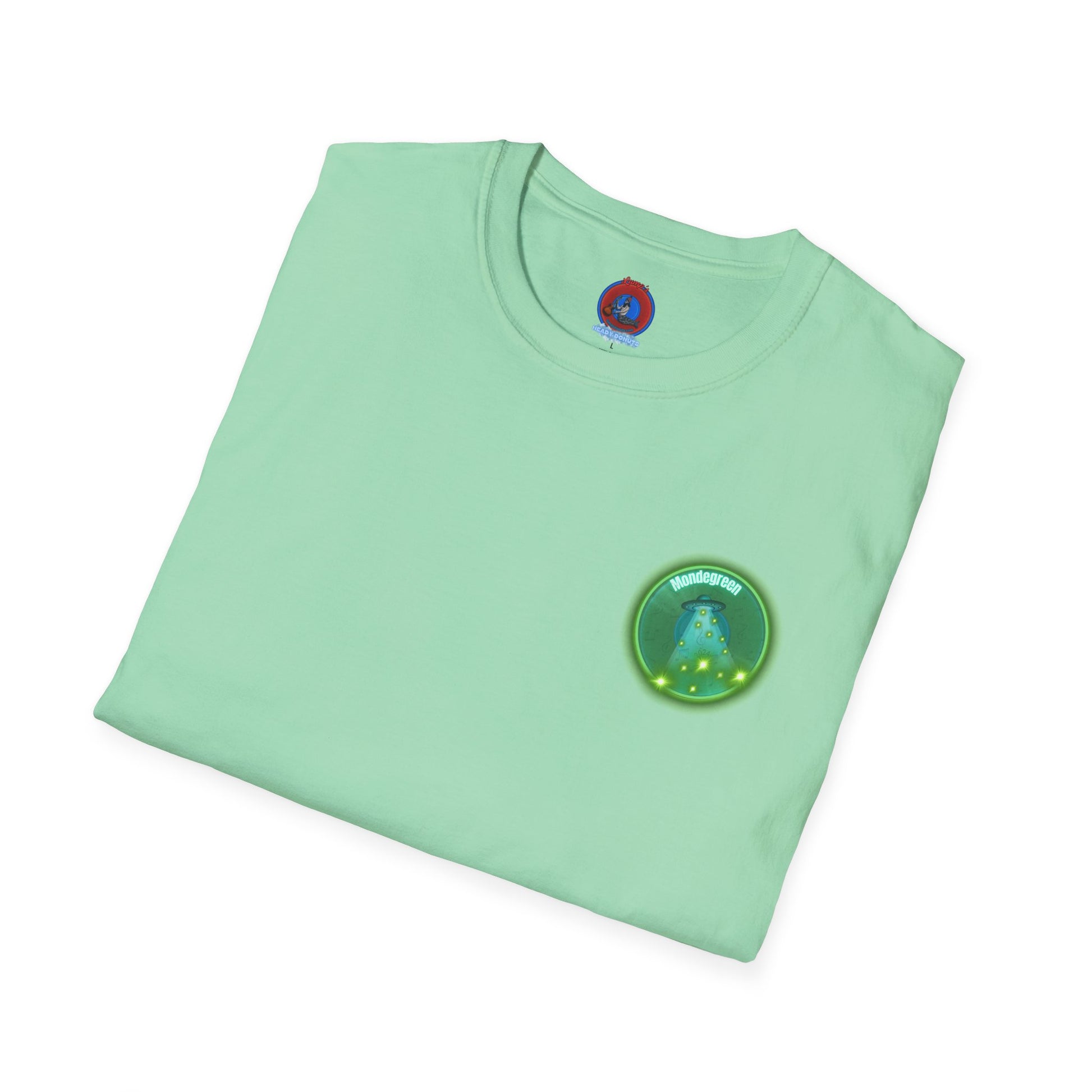 Classic Donut Tee - Unisex Soft-Style - "Close Encounters of the Delaware kind - Mondegreen Donut" " variant 1 - green donut