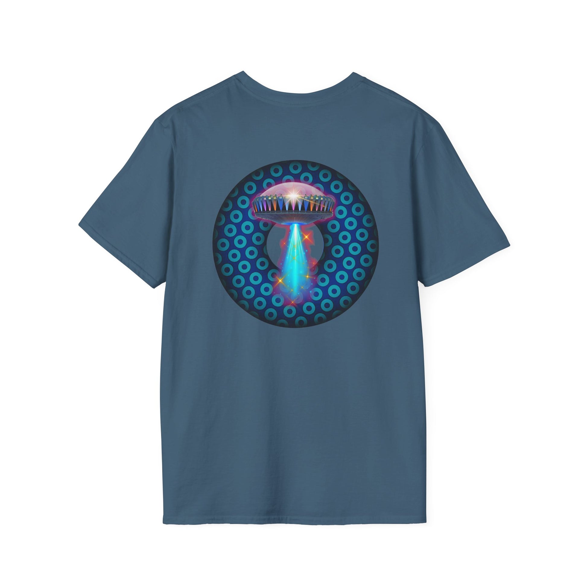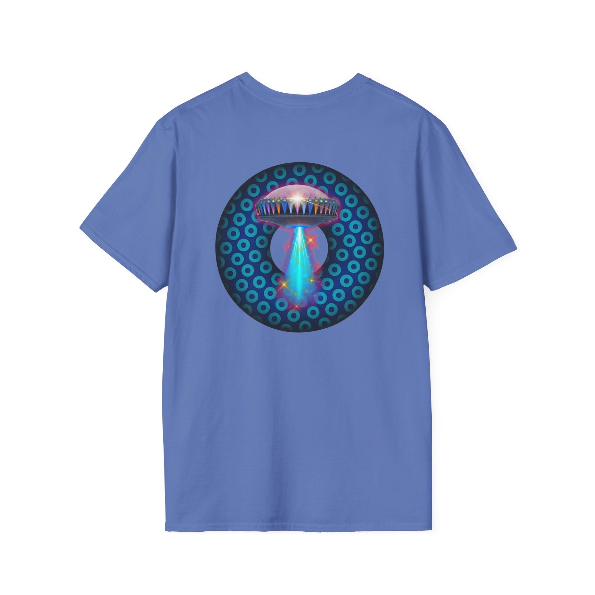 Classic Donut Tee - Unisex Soft-Style - "Donuts now Served on the Mothership" - series 1.0 - variant 3 - magenta/pink donut