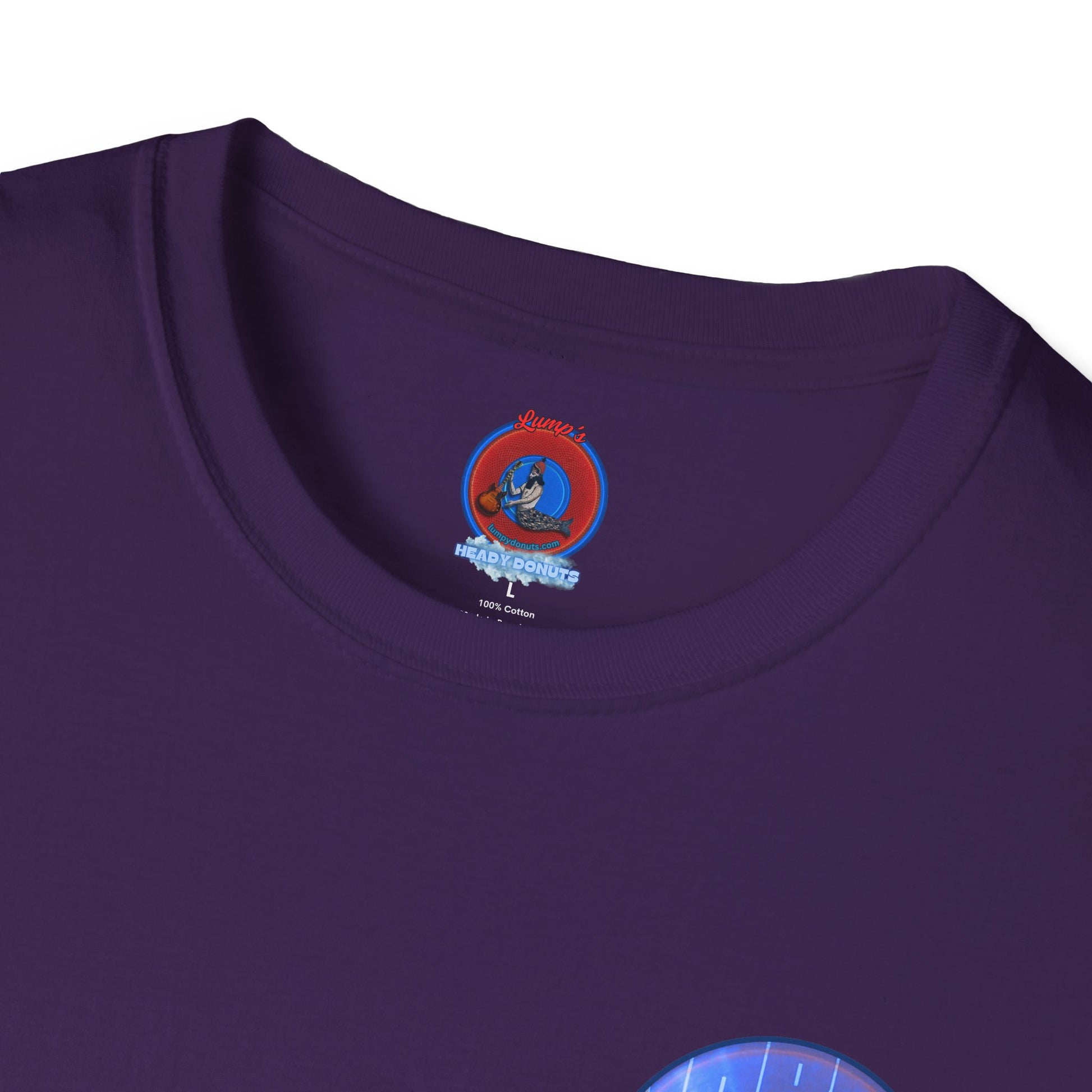 Classic Donut Tee - Unisex Soft-Style - "Harry Left His Shirt" - series 1.0 - variant 3 - purple/blue donut