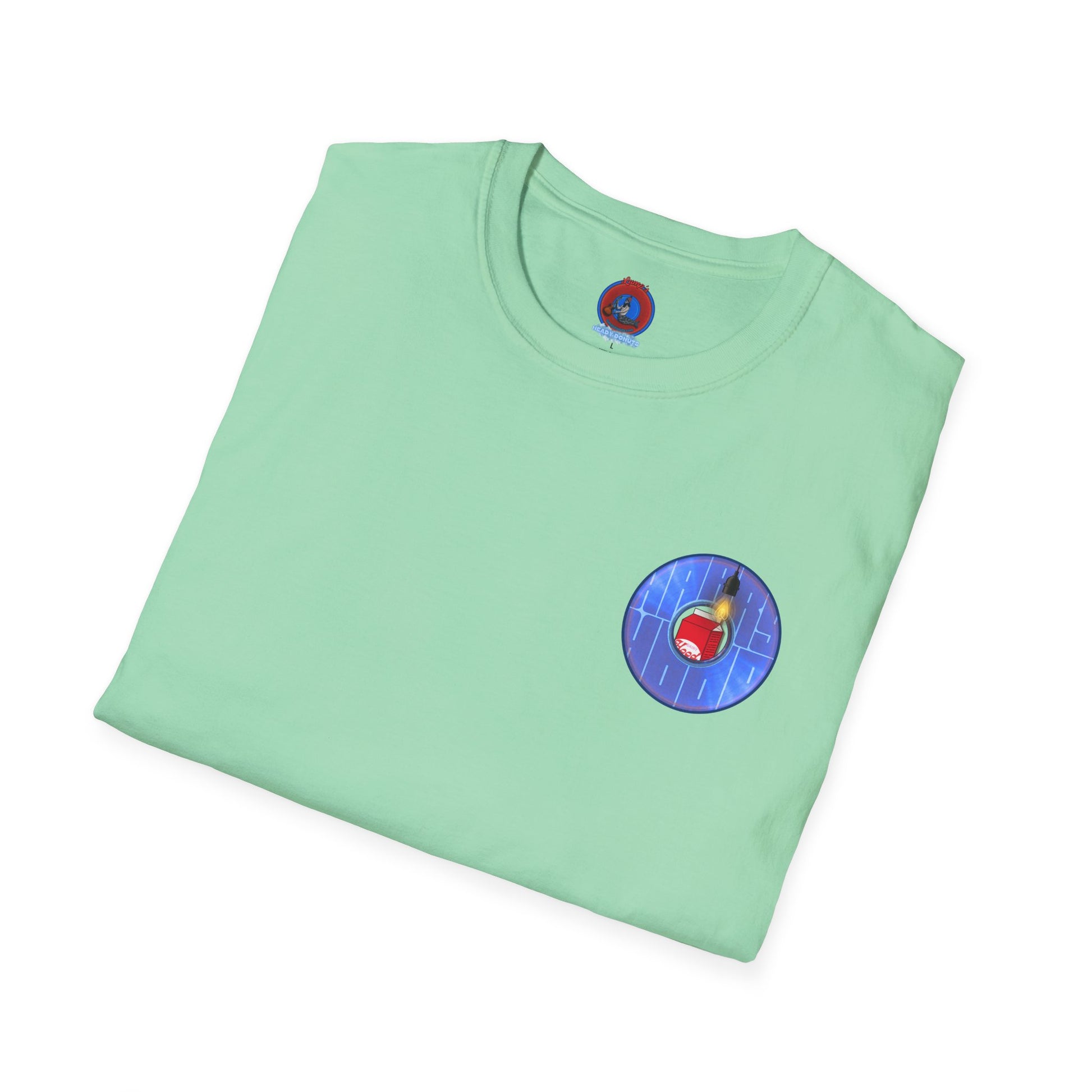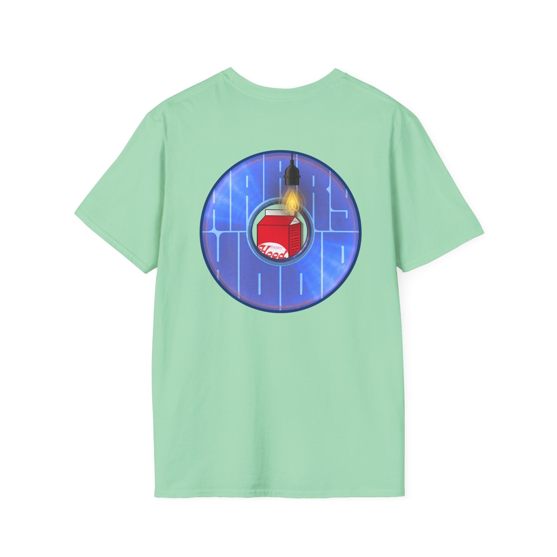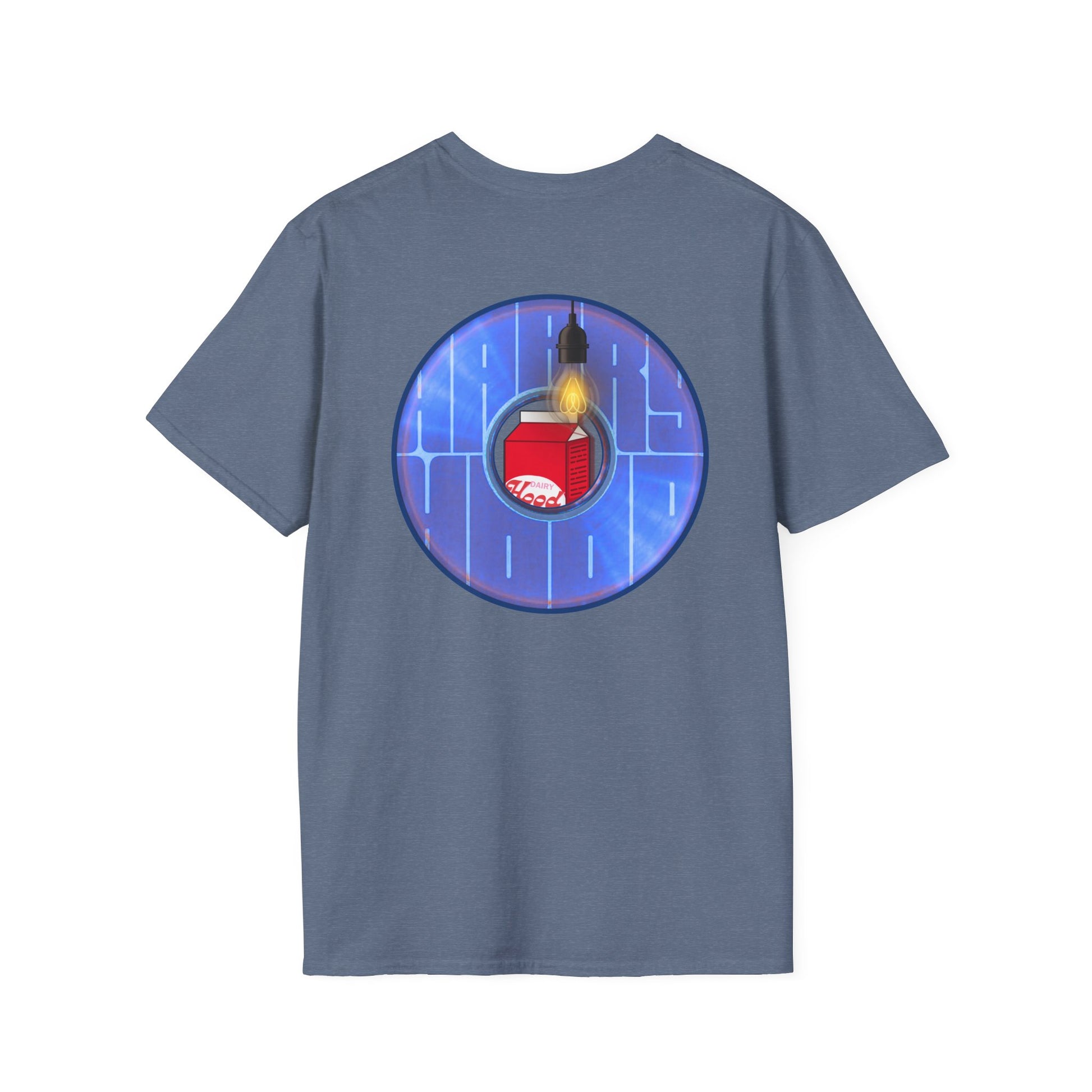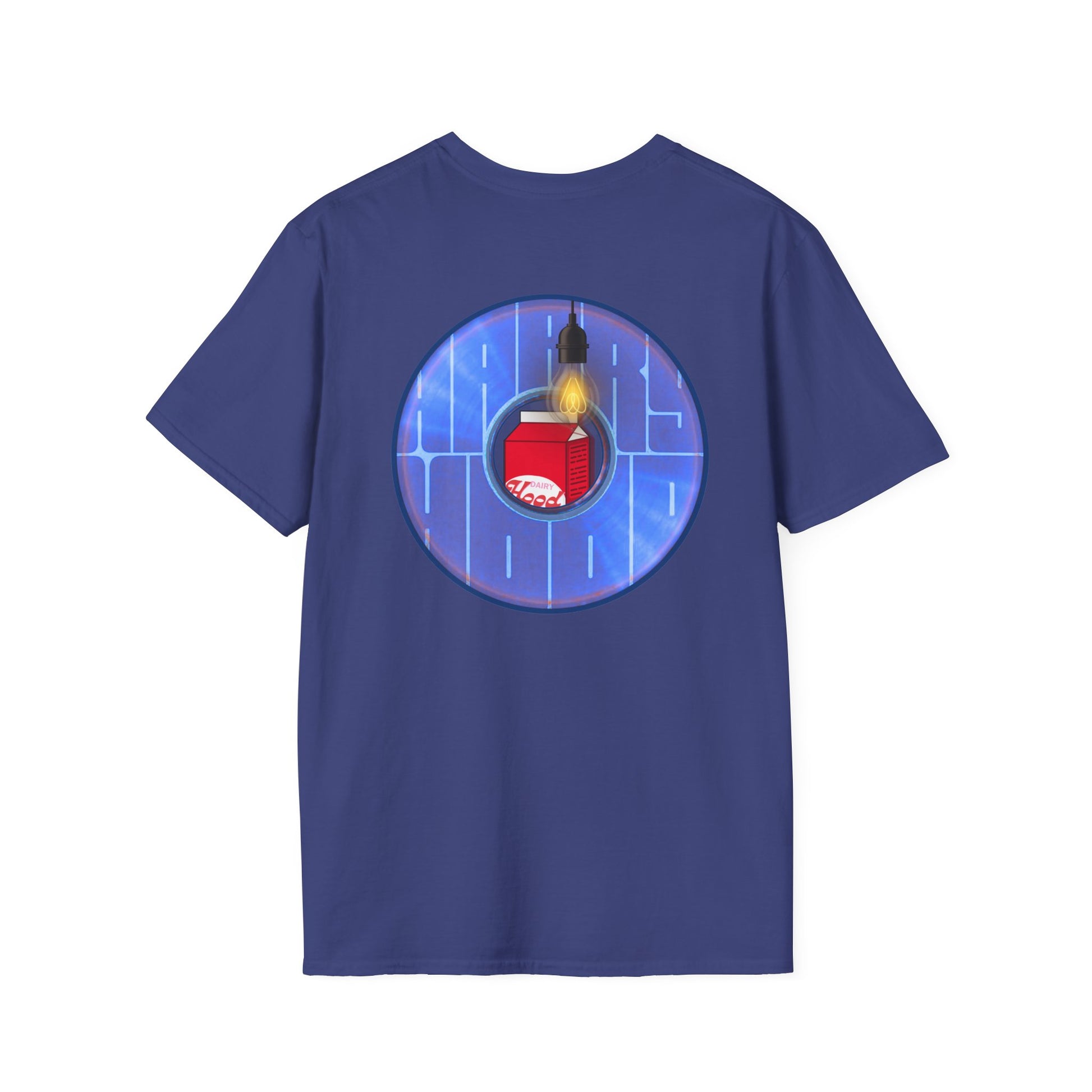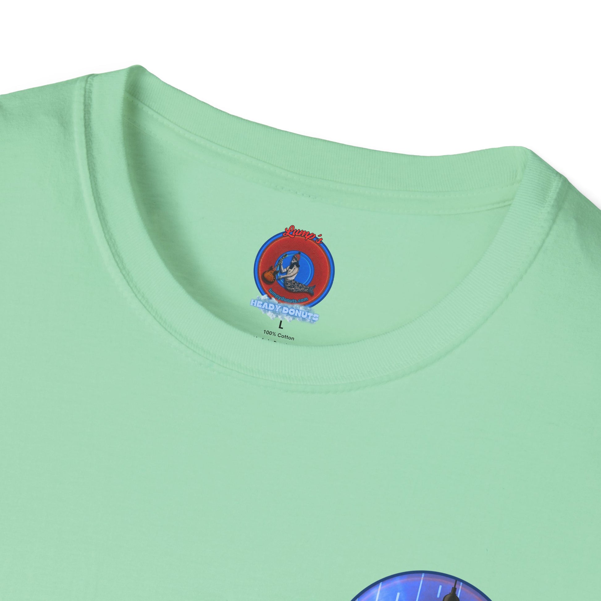 Classic Donut Tee - Unisex Soft-Style - "Harry Left His Shirt" - series 1.0 - variant 4 - purple/blue donut - w/light on