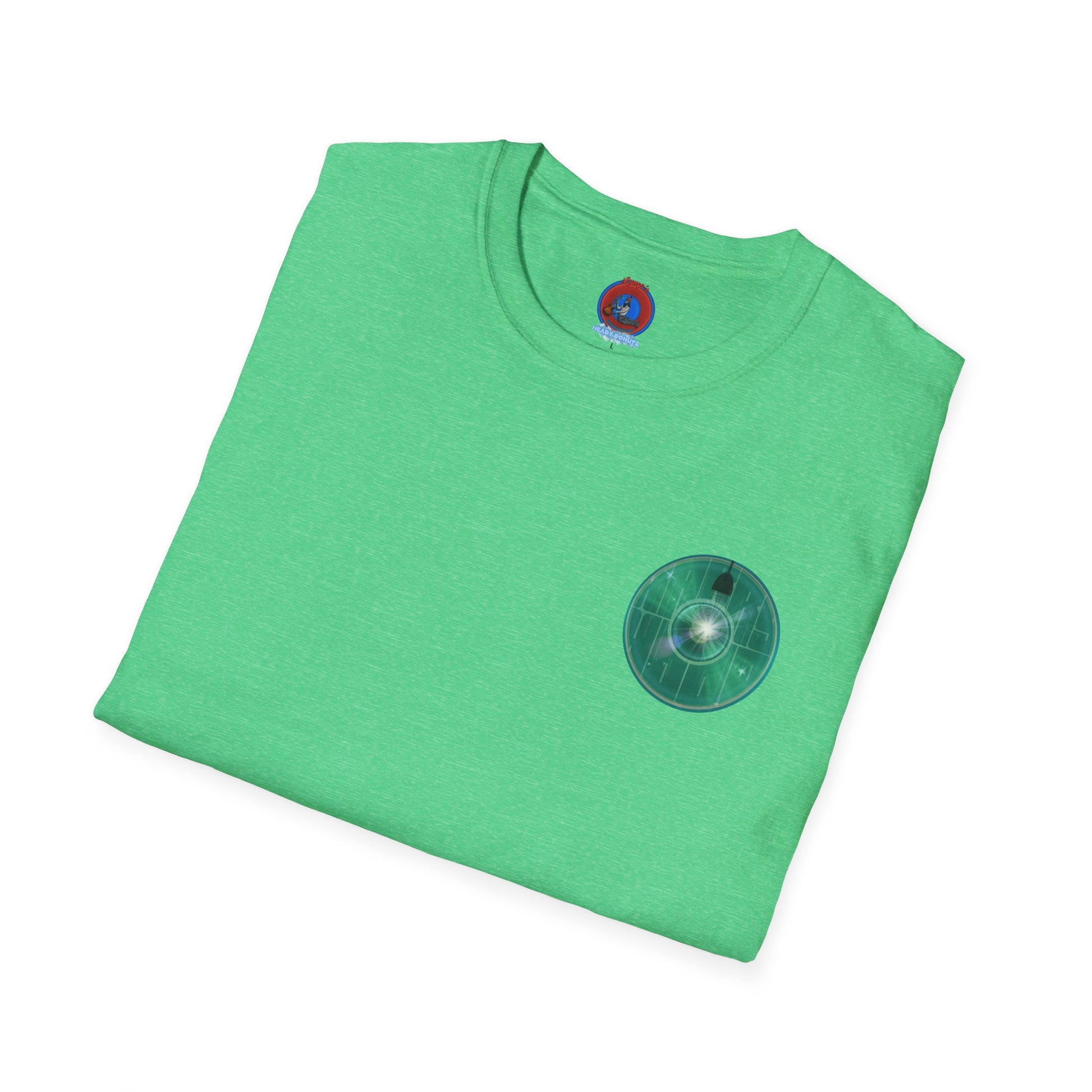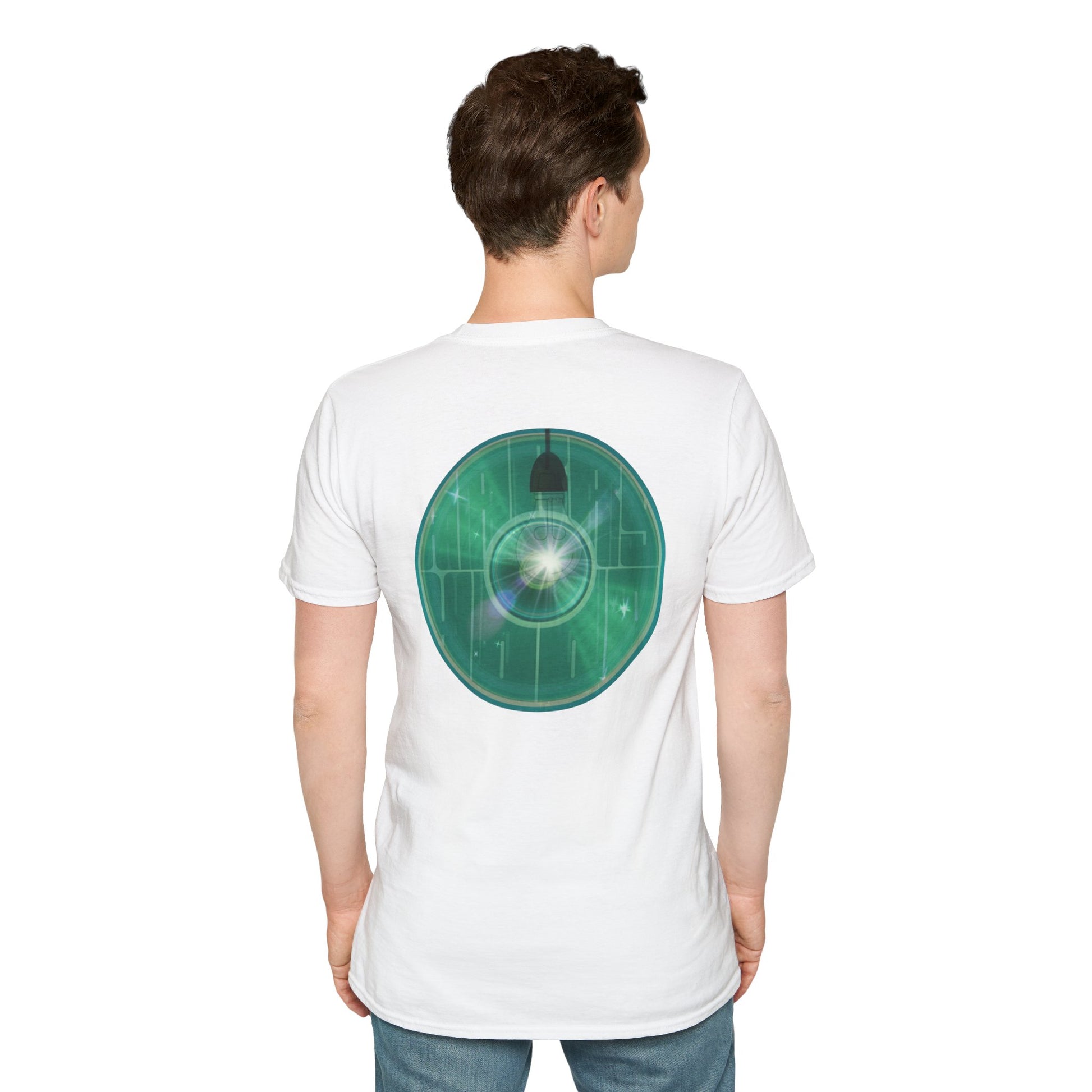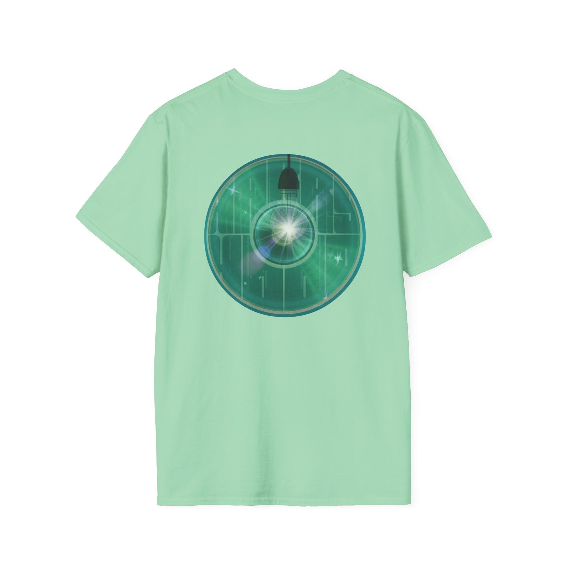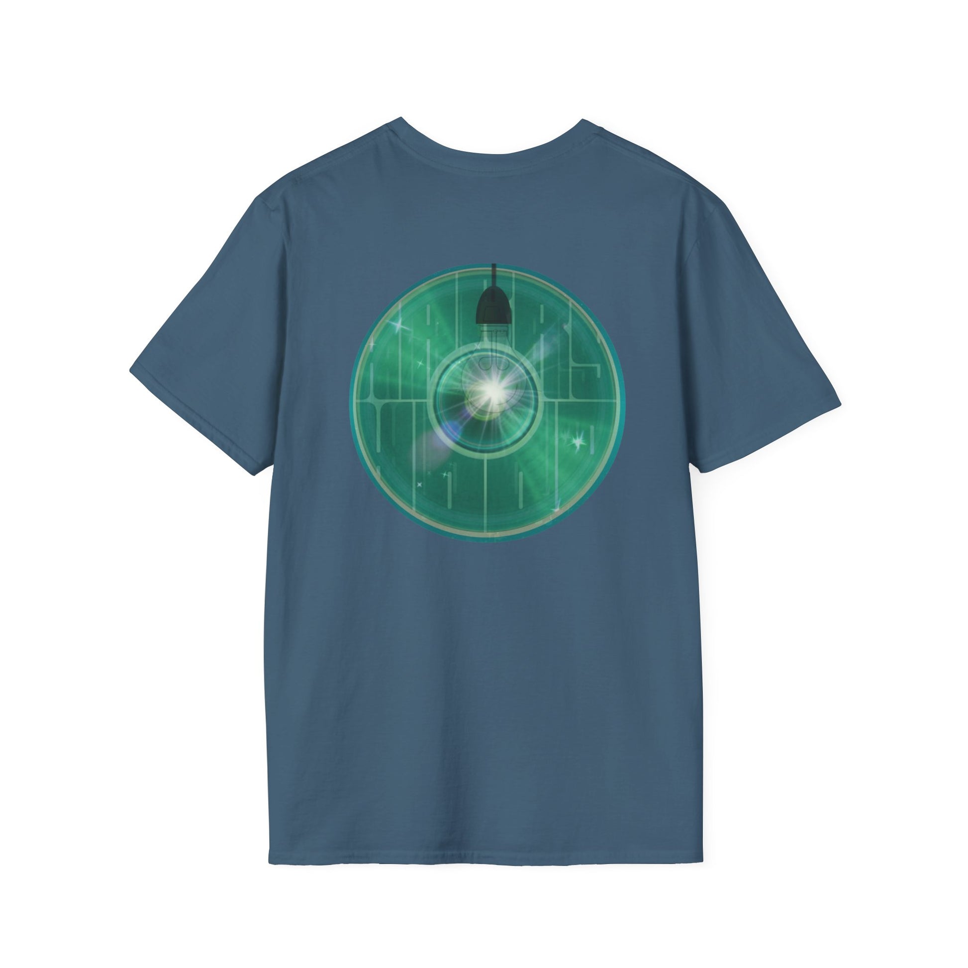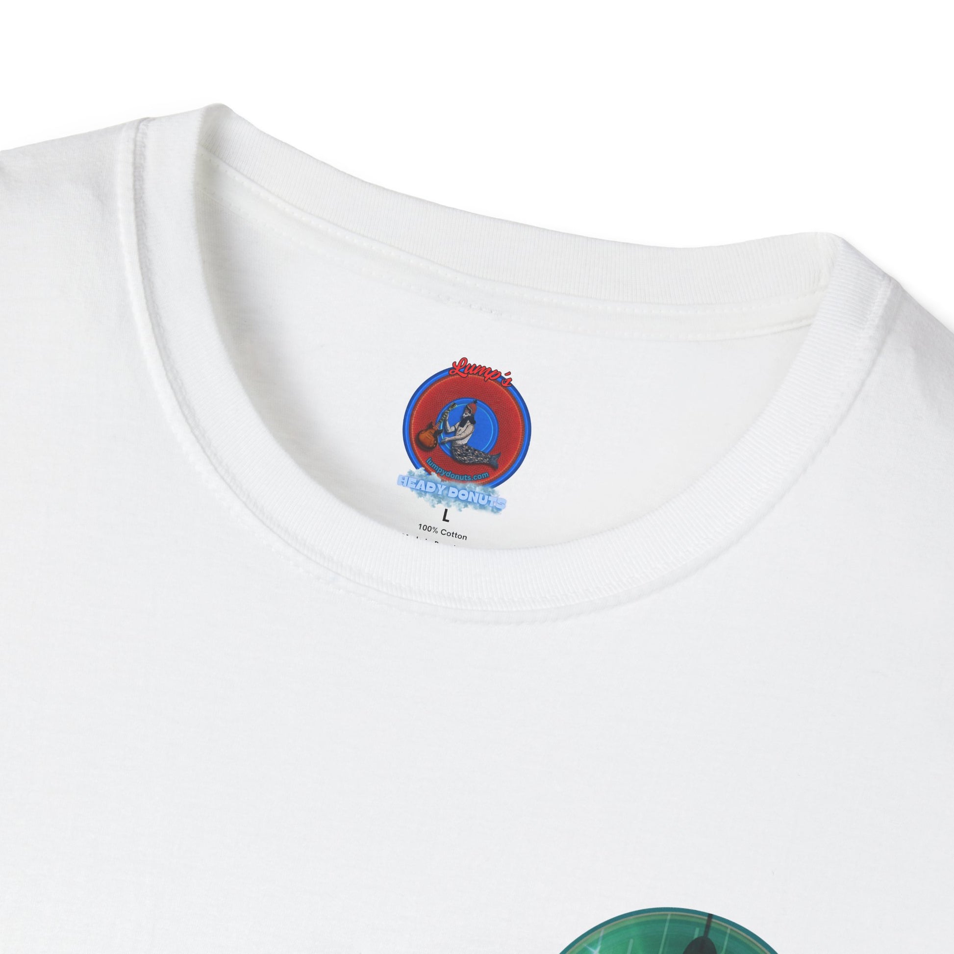 Classic Donut Tee - Unisex Soft-Style - "Harry's Hoodlum Donut" - series 1.0 - variant 4 - lights on/green donut(s)