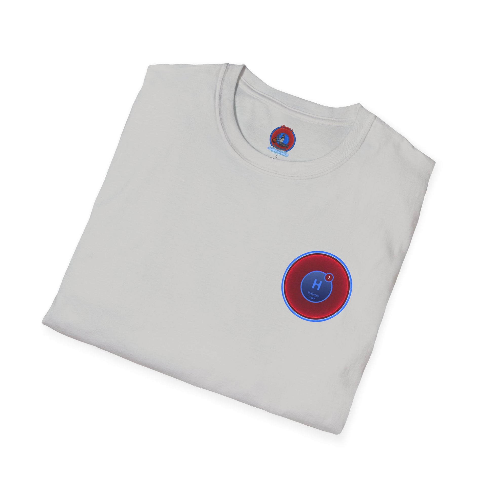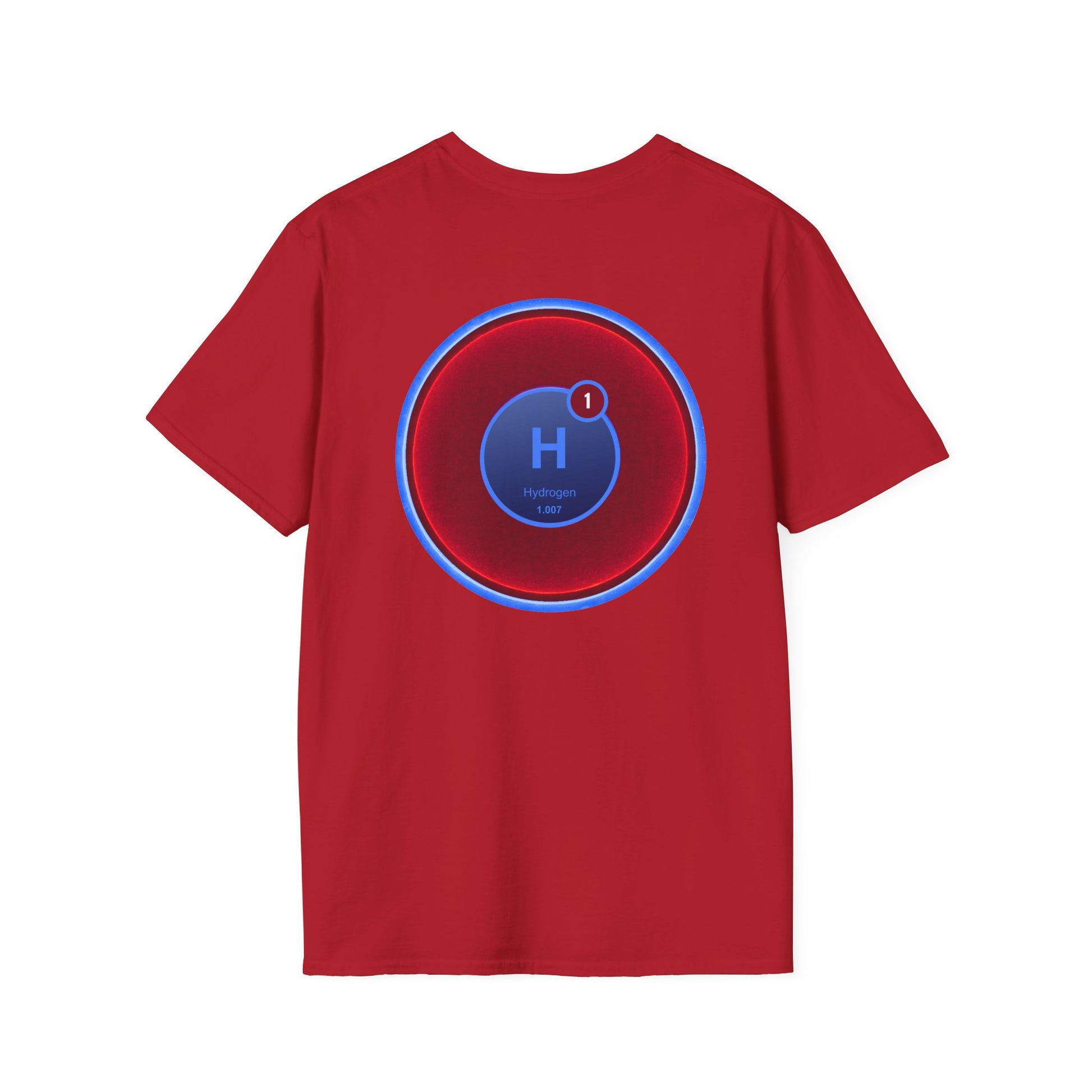 Classic Donut Tee - Unisex Soft-Style - "I am 10% Hydrogen Tee" - vivid red/light blue donut