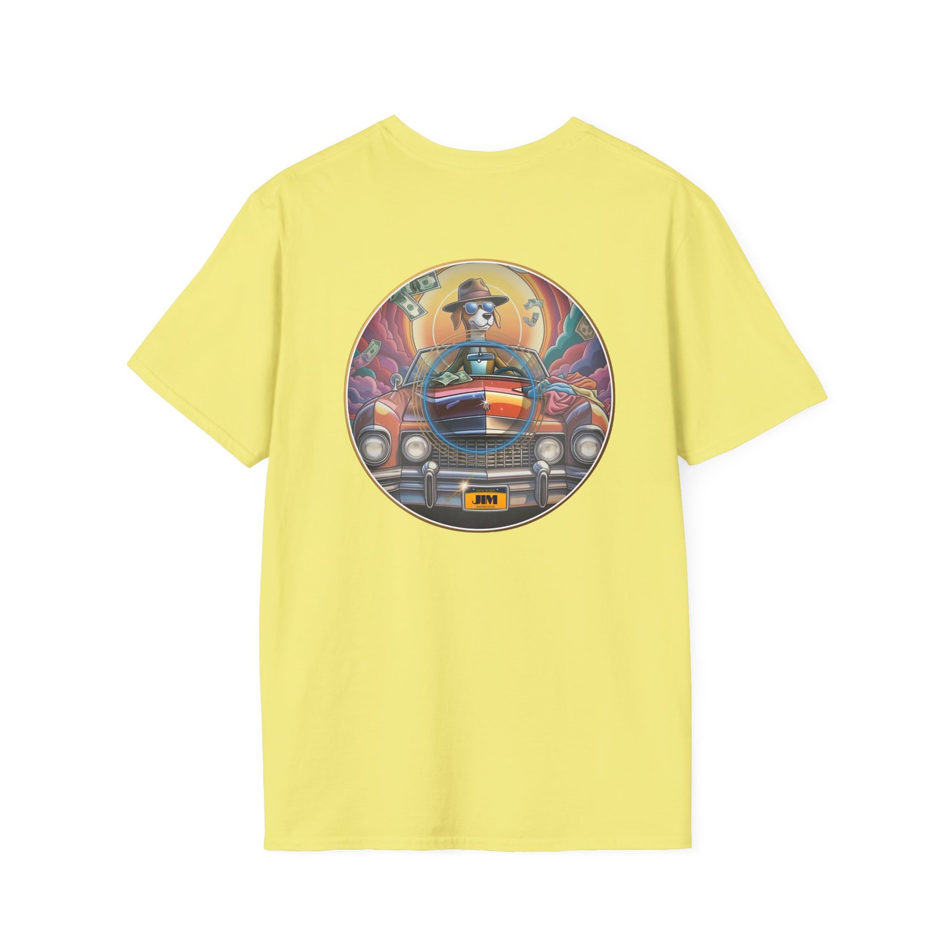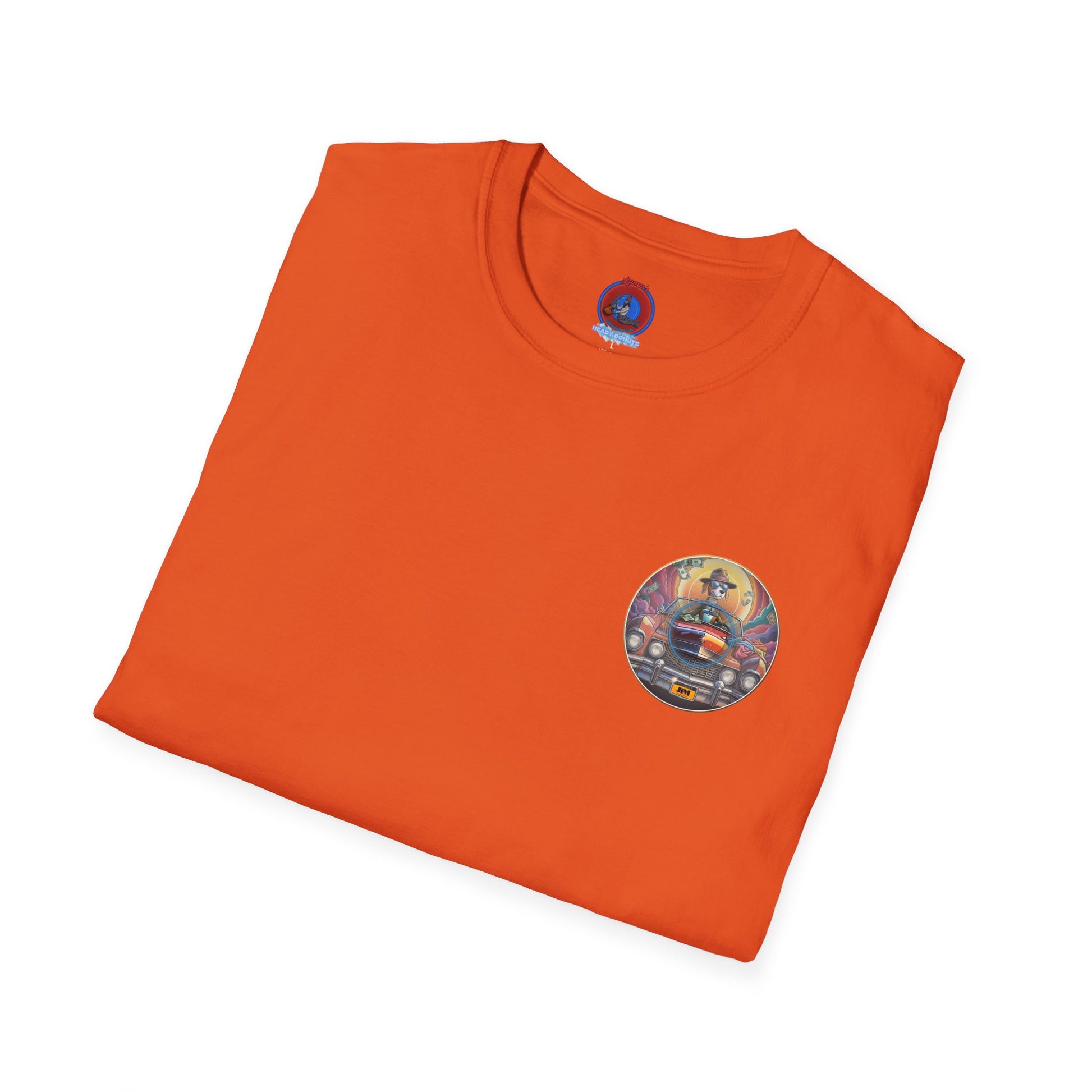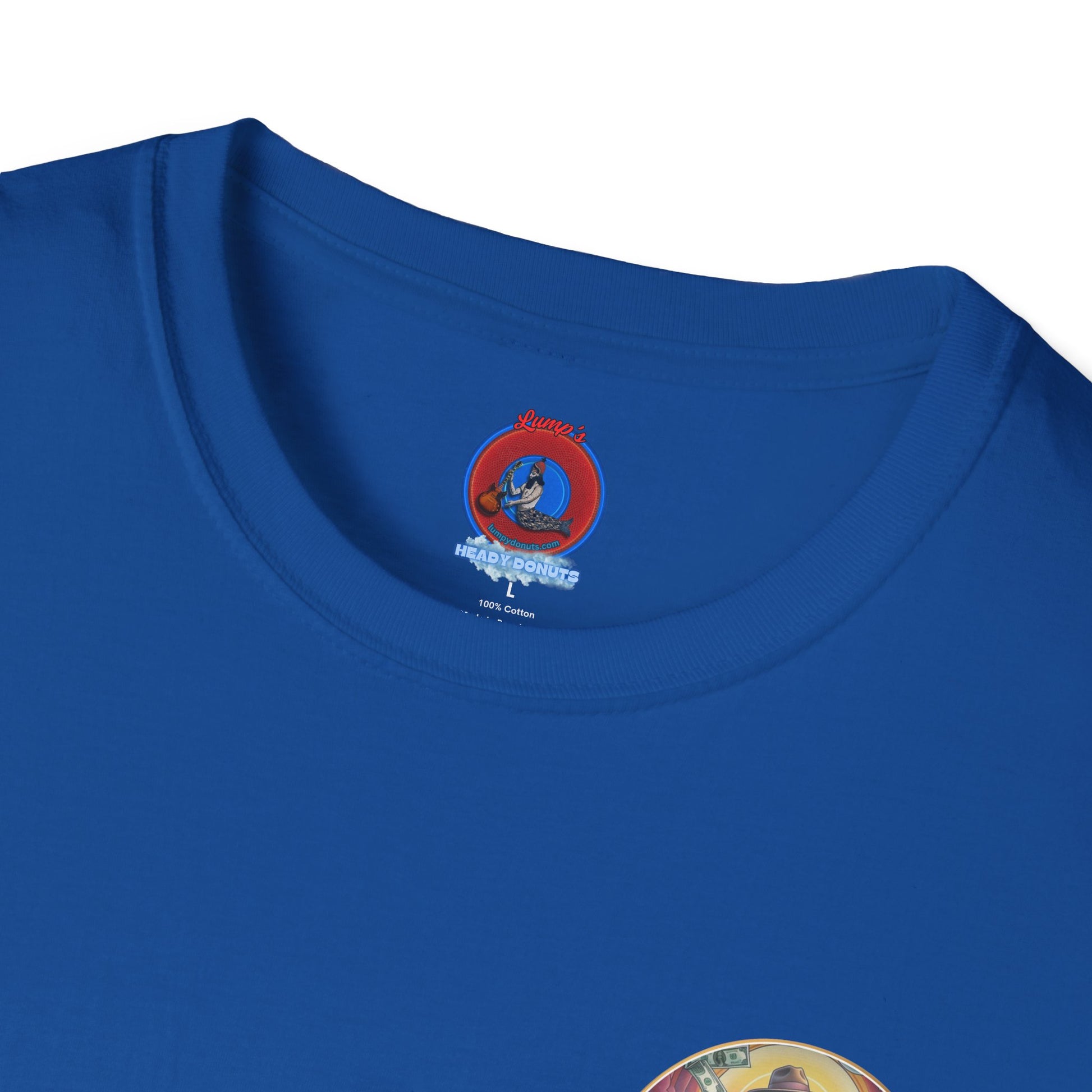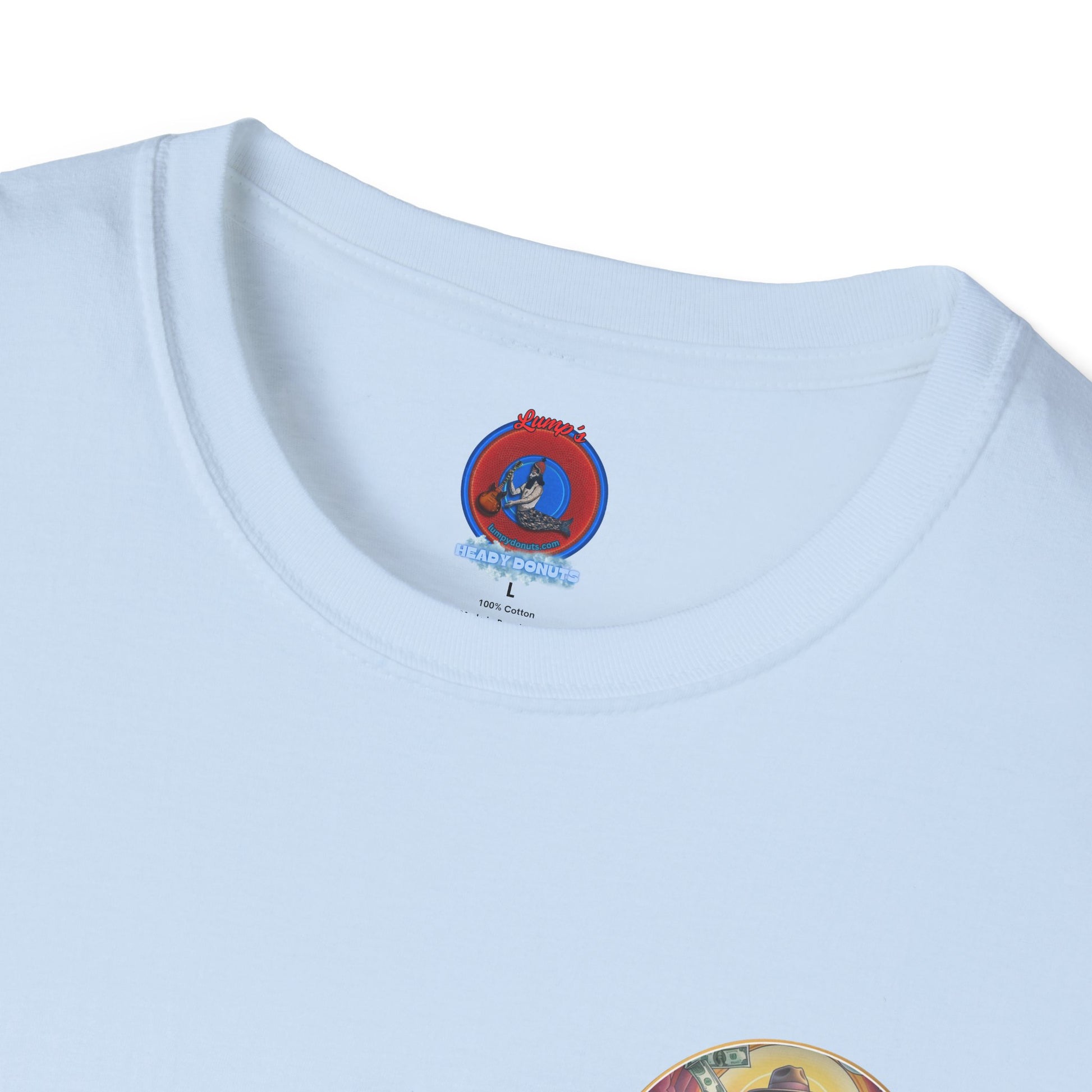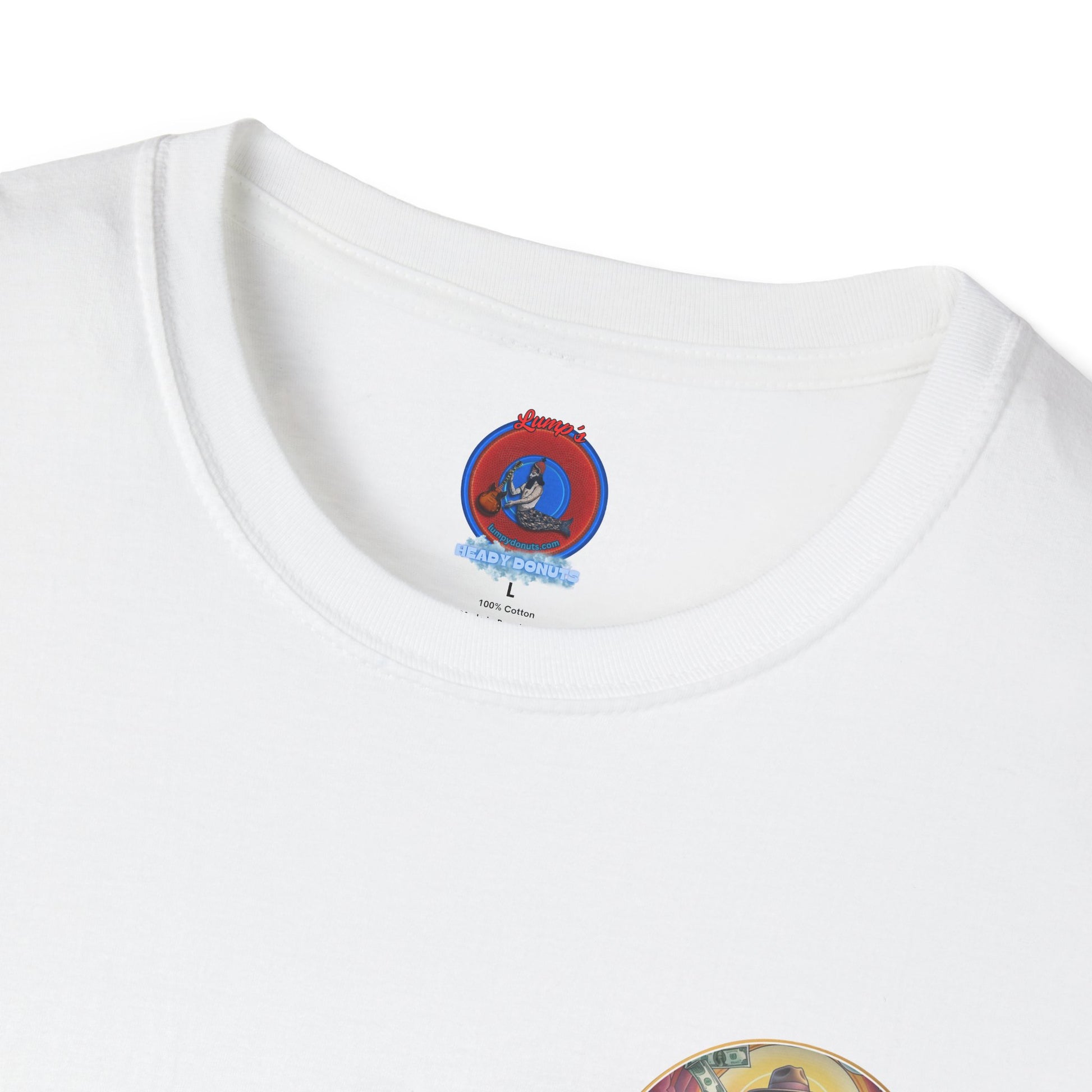 Classic Donut Tee - Unisex Soft-Style - "Jimmy's Marathon Donut Tee" - series 1.0 - variant 2 - orange/purple pic donut