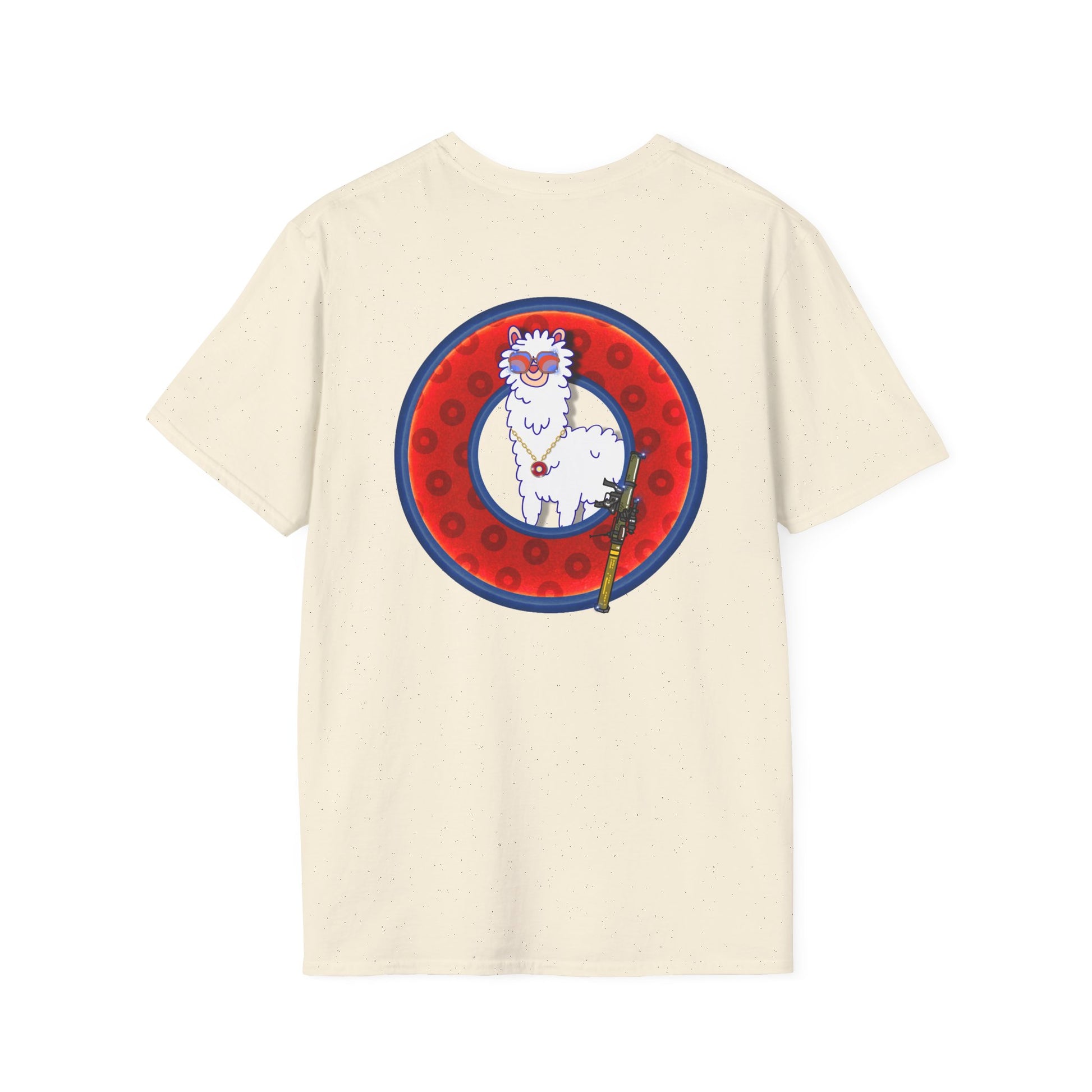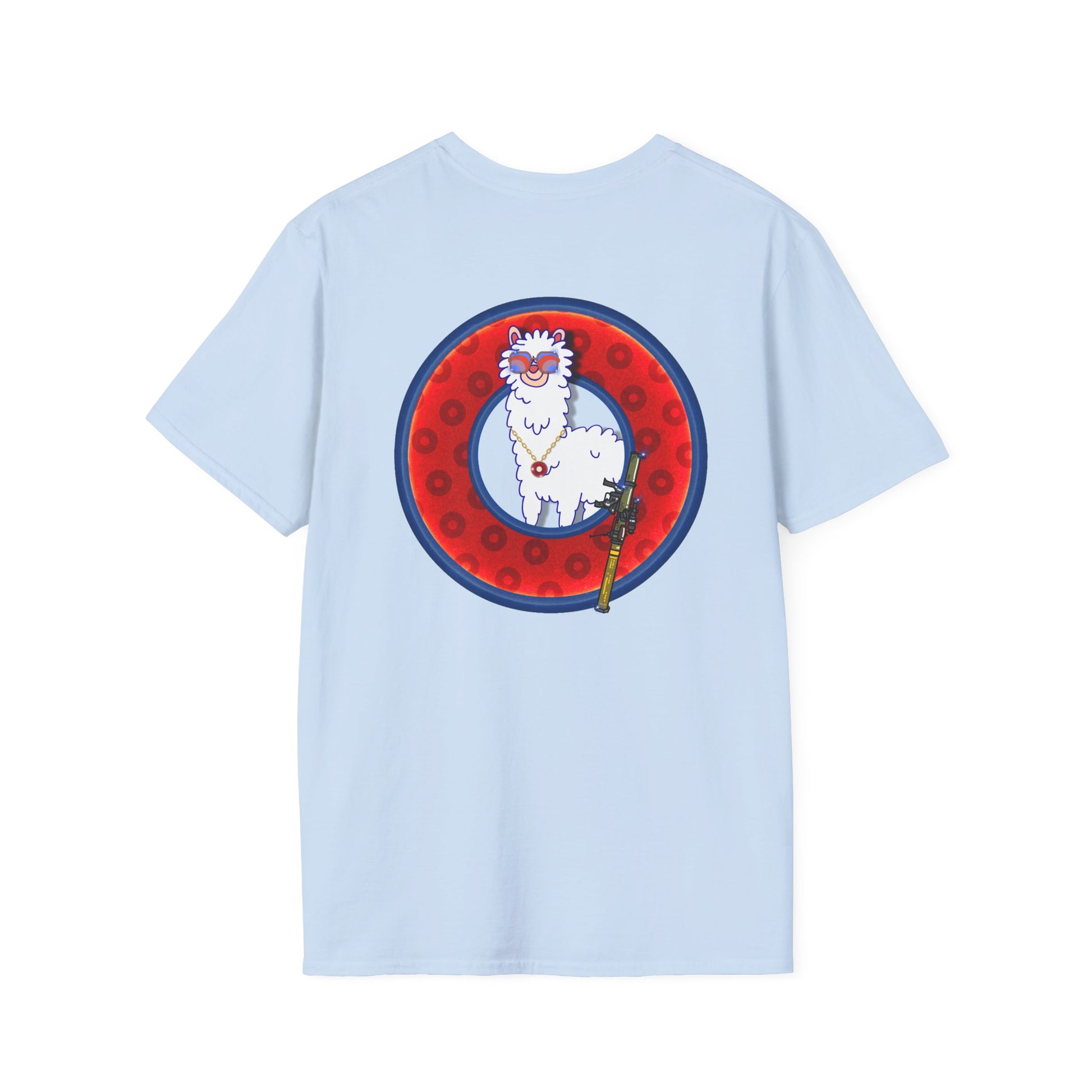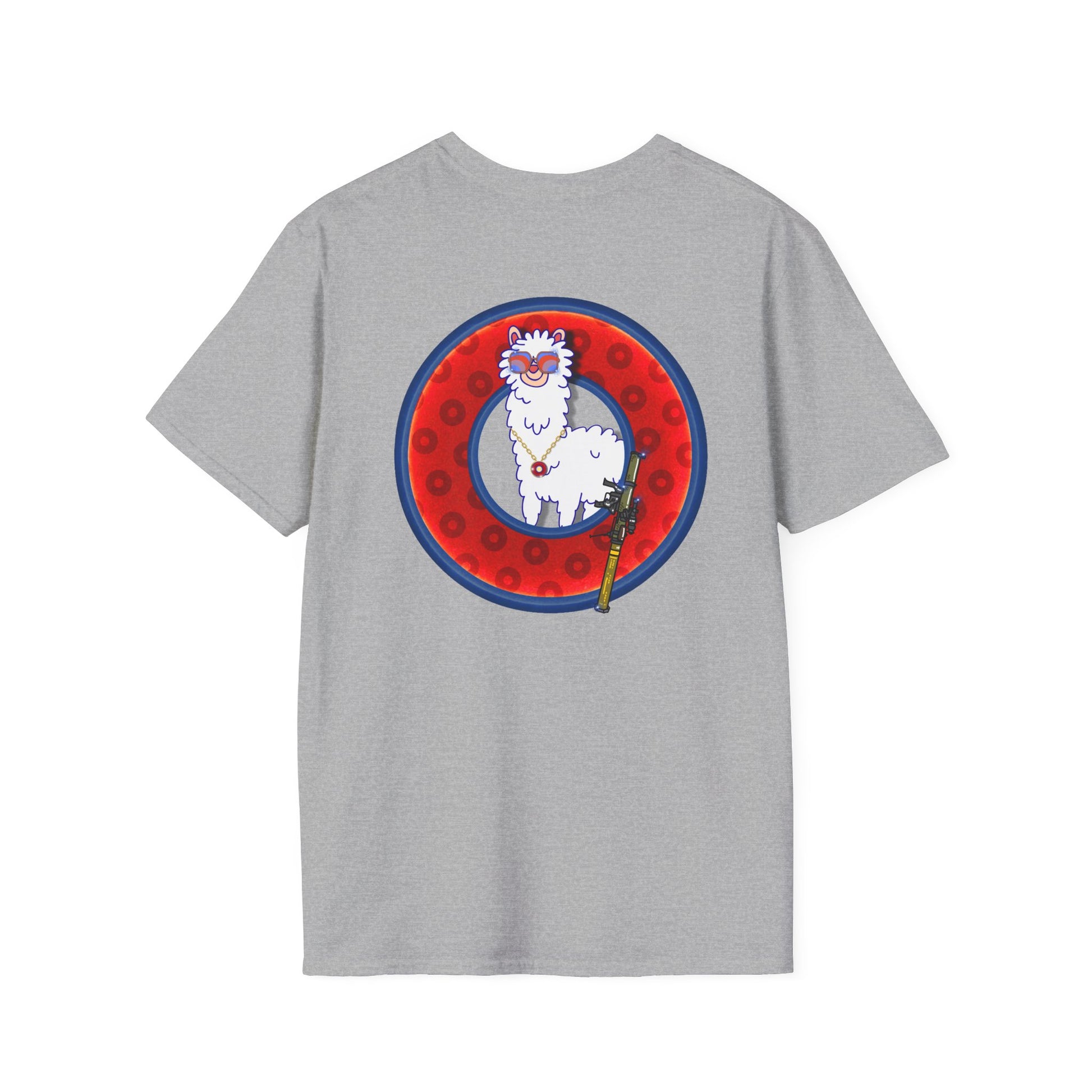 Classic Donut Tee - Unisex Soft-Style - "Medium Paced Llama Donut" - red/blue widemouthed paradox donut