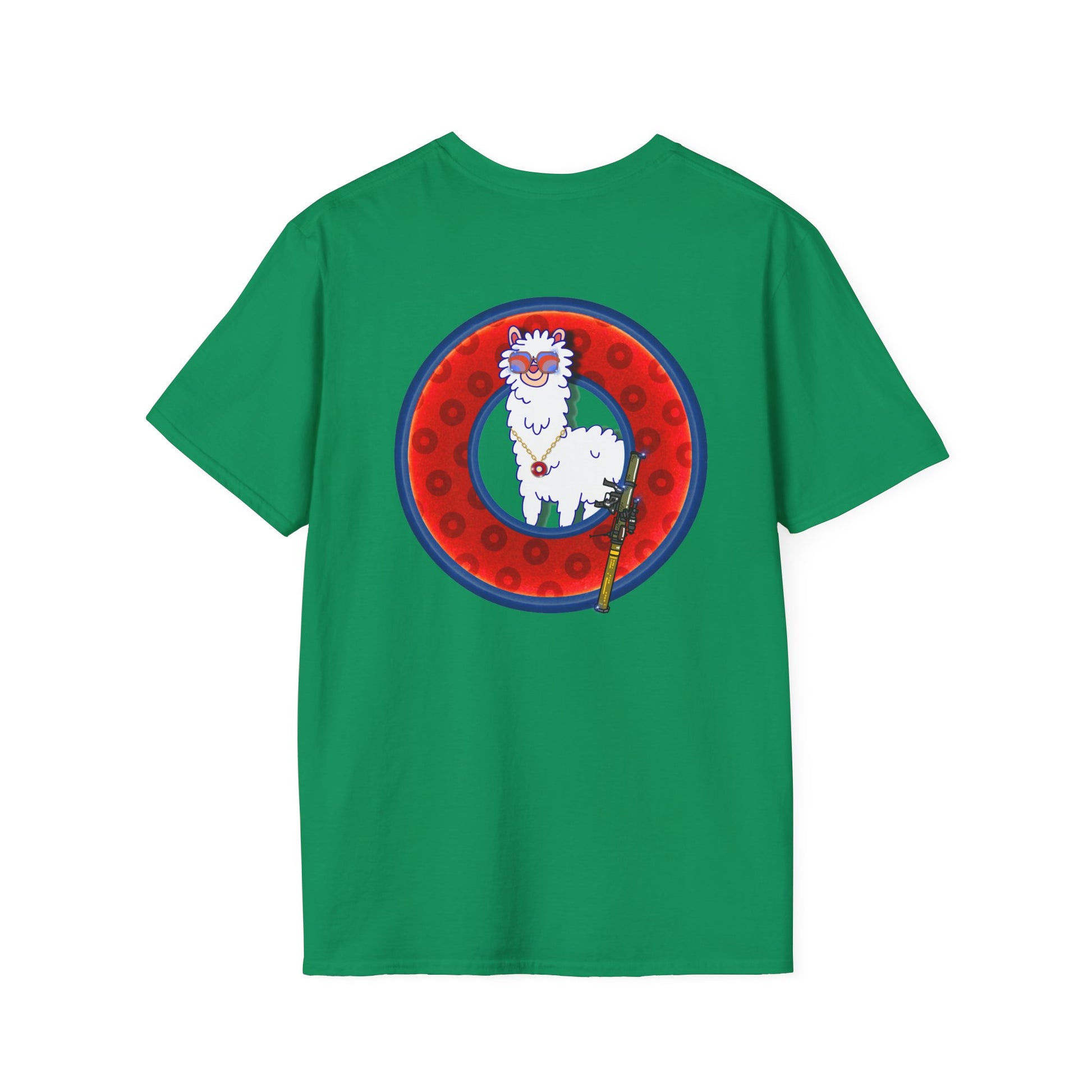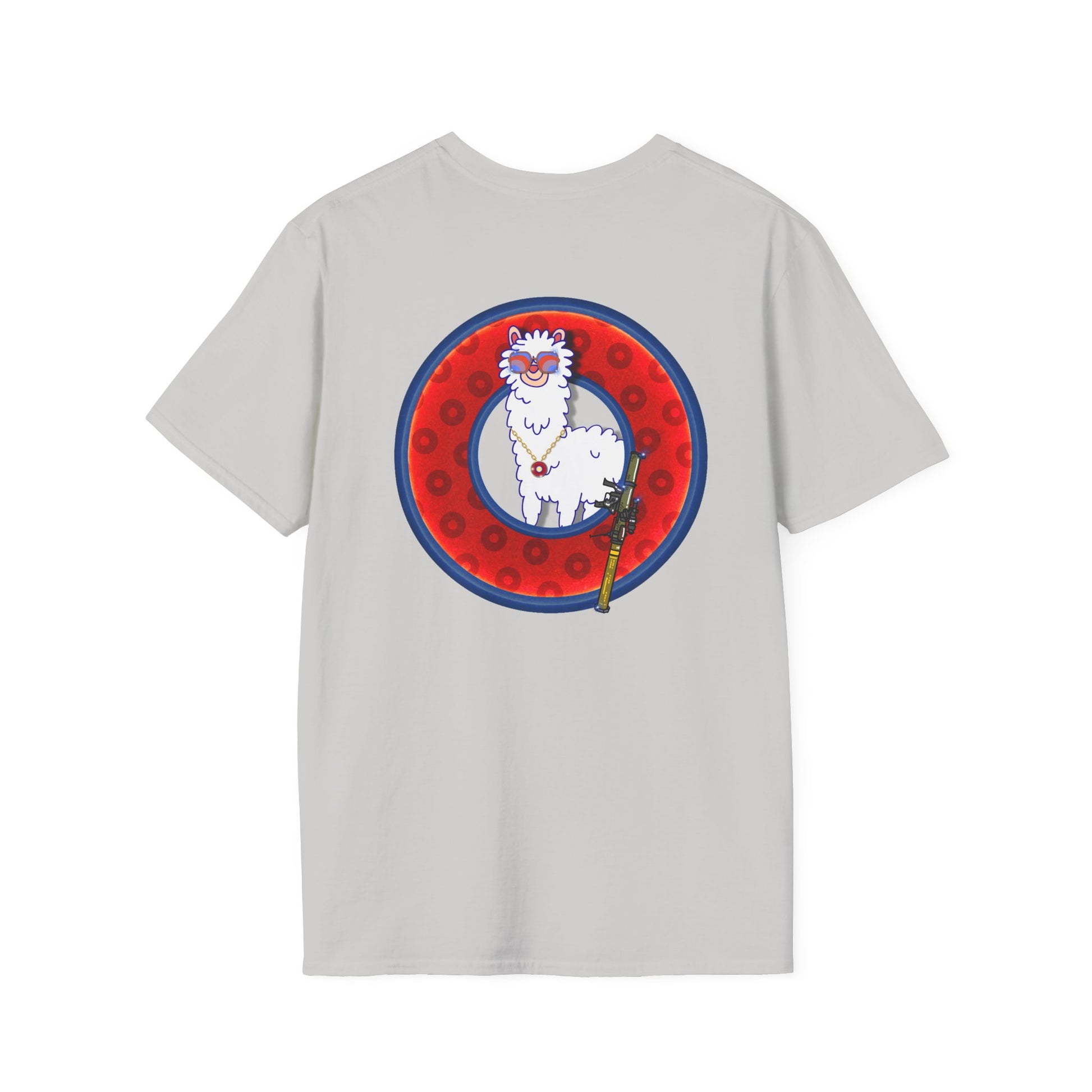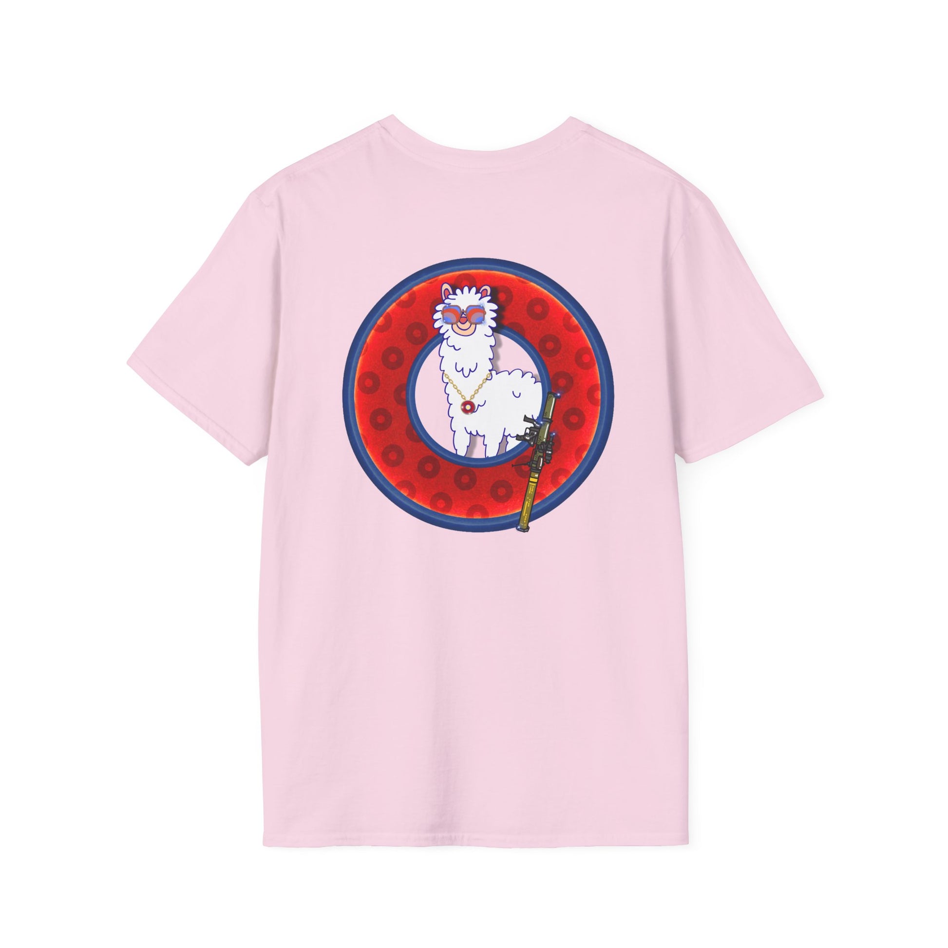 Classic Donut Tee - Unisex Soft-Style - "Medium Paced Llama Donut" - red/blue widemouthed paradox donut