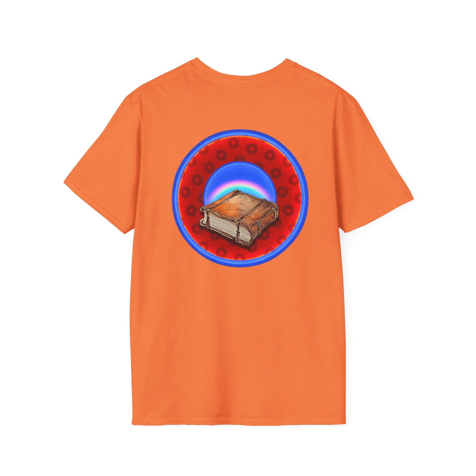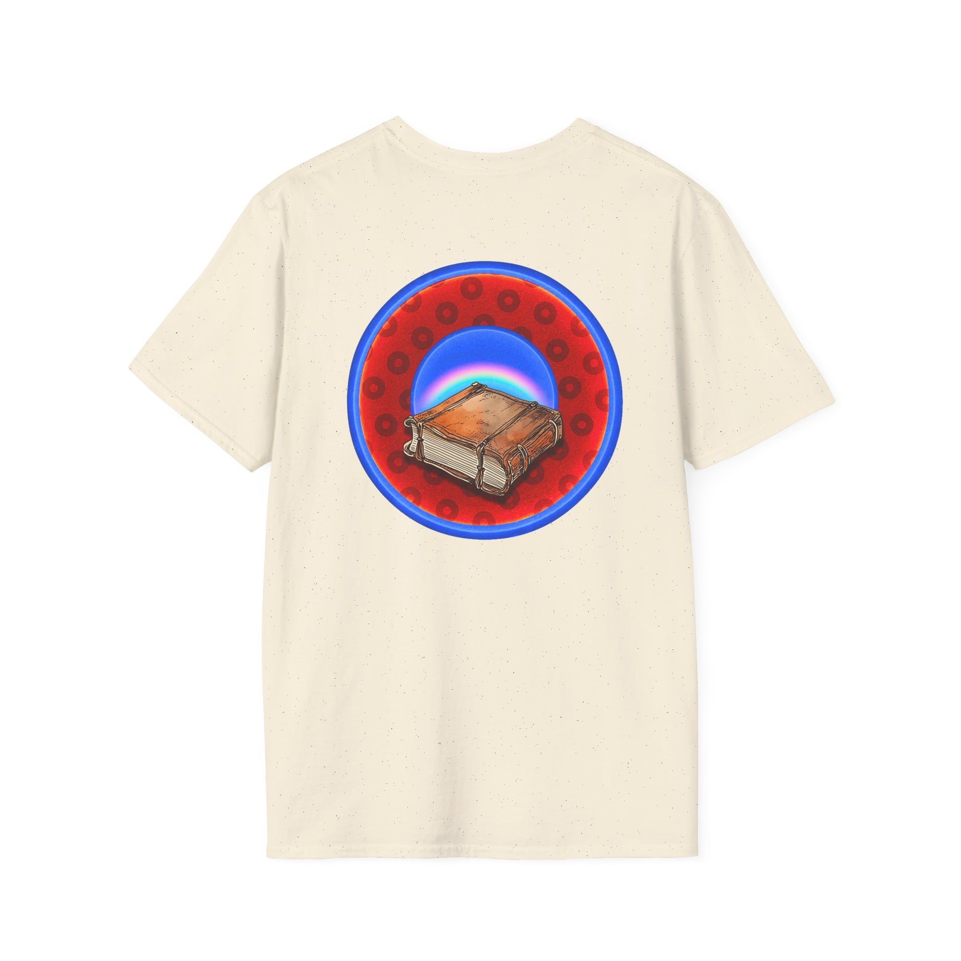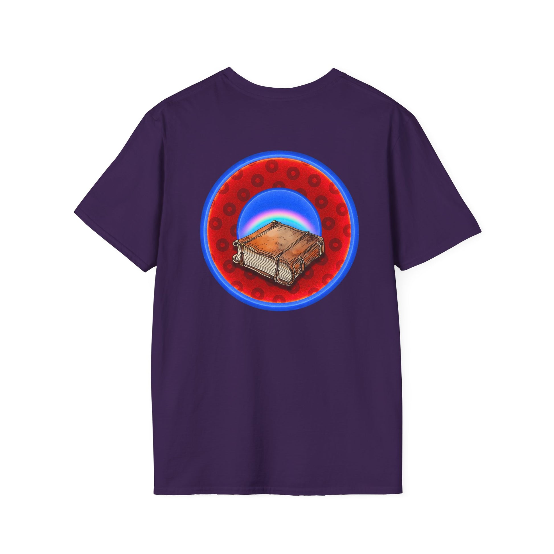Classic Donut Tee - Unisex Soft-Style - "Read the F'ing Donut Book" - paradoxical widemouthed red/blue donut - variant 2