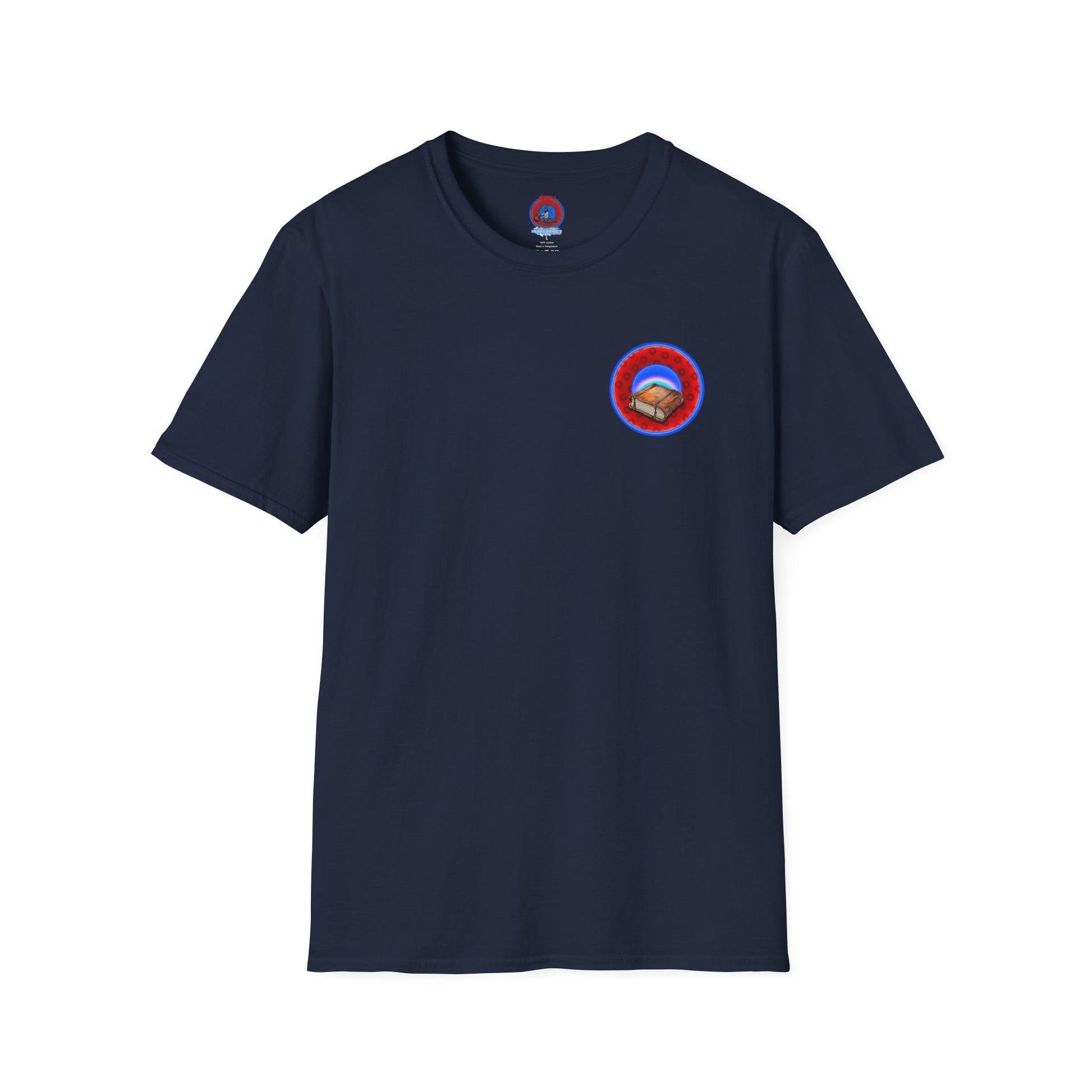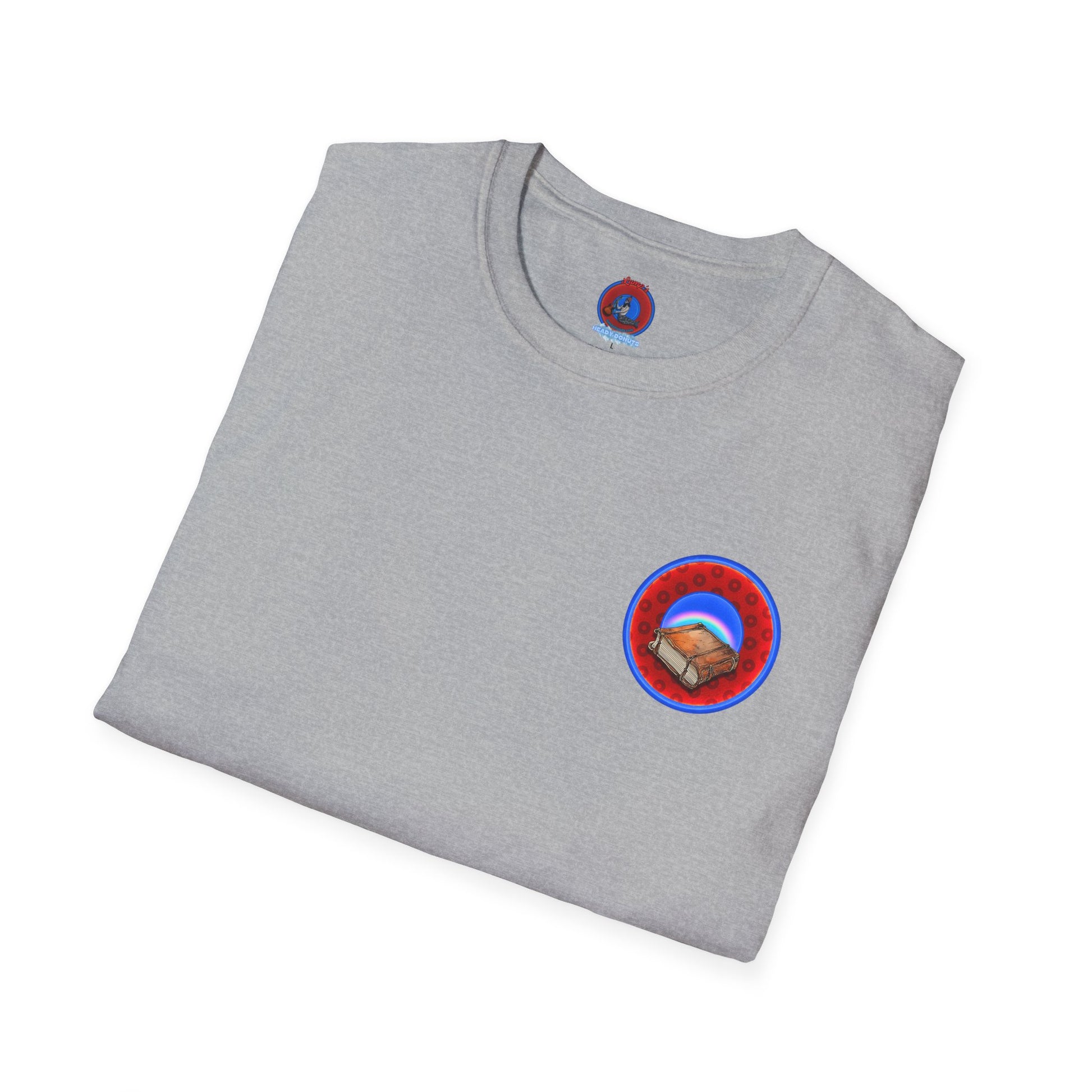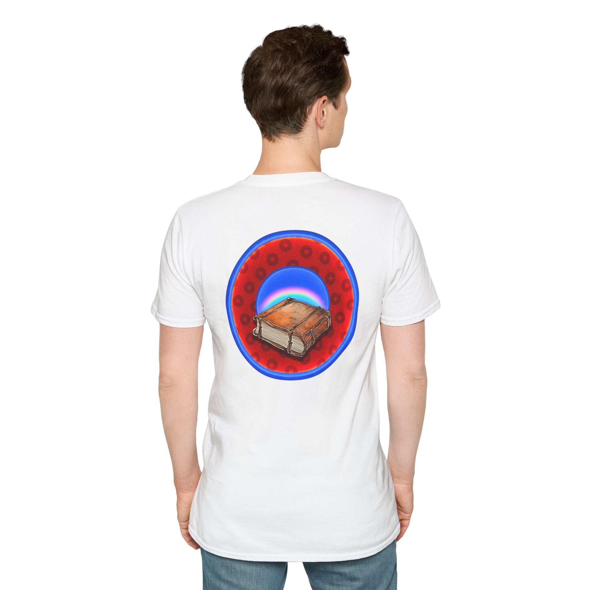 Classic Donut Tee - Unisex Soft-Style - "Read the F'ing Donut Book" - paradoxical widemouthed red/blue donut - variant 2