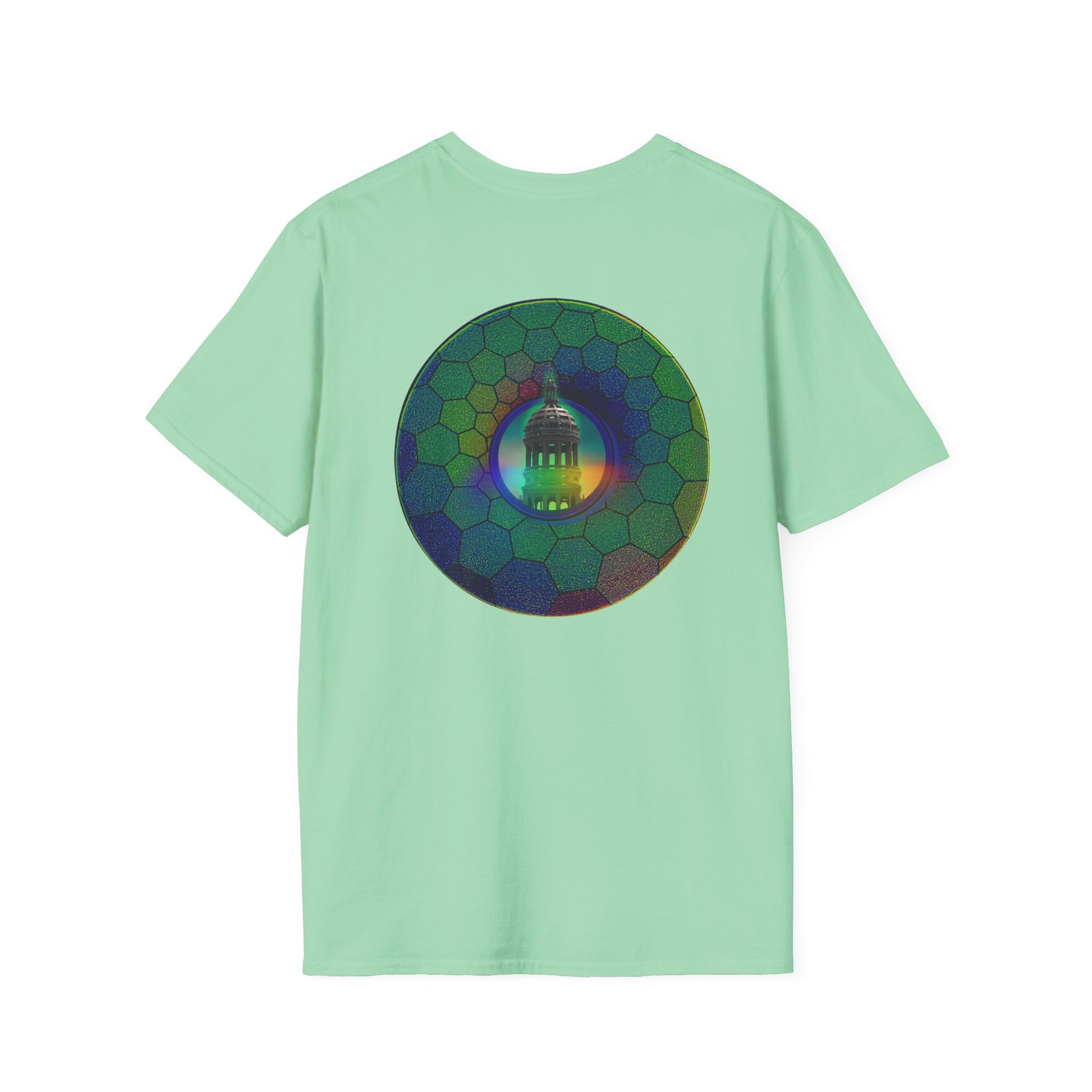 Classic Donut Tee - Unisex Soft-Style - "Save the Mondegreen City Hall Clock Tower" - hexadonut - series 1.0 -variant 1 - green donut