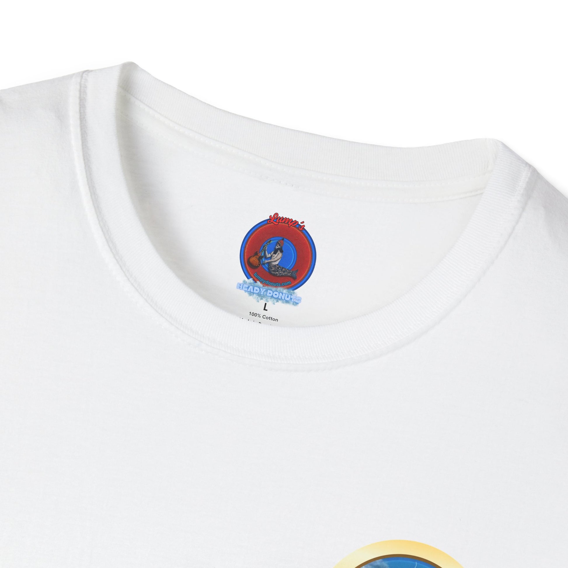 Classic Donut Tee - Unisex Soft-Style - "The Divided Donut" - variant 1 - blue/blue donut [*50% to The Divided Sky Foundation]