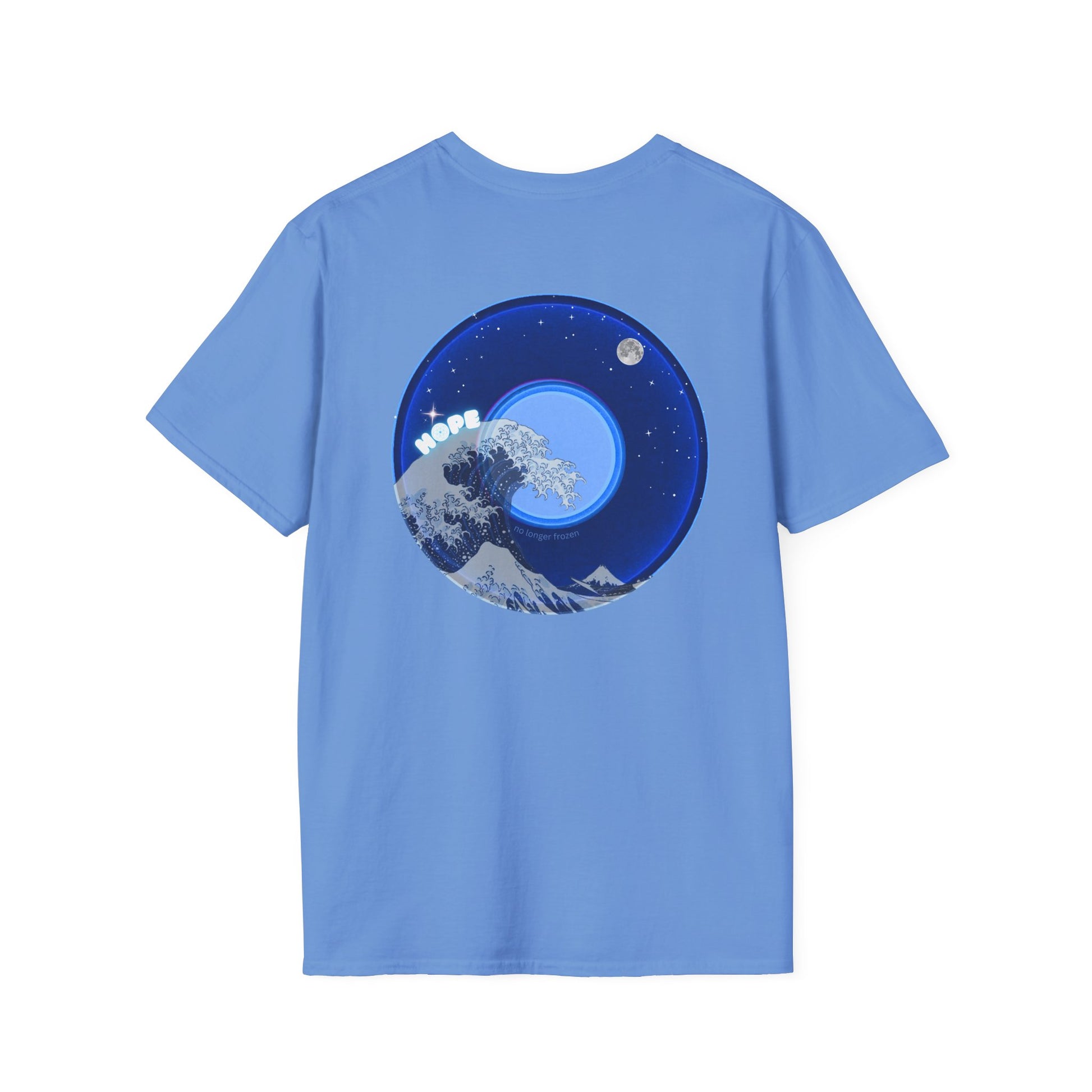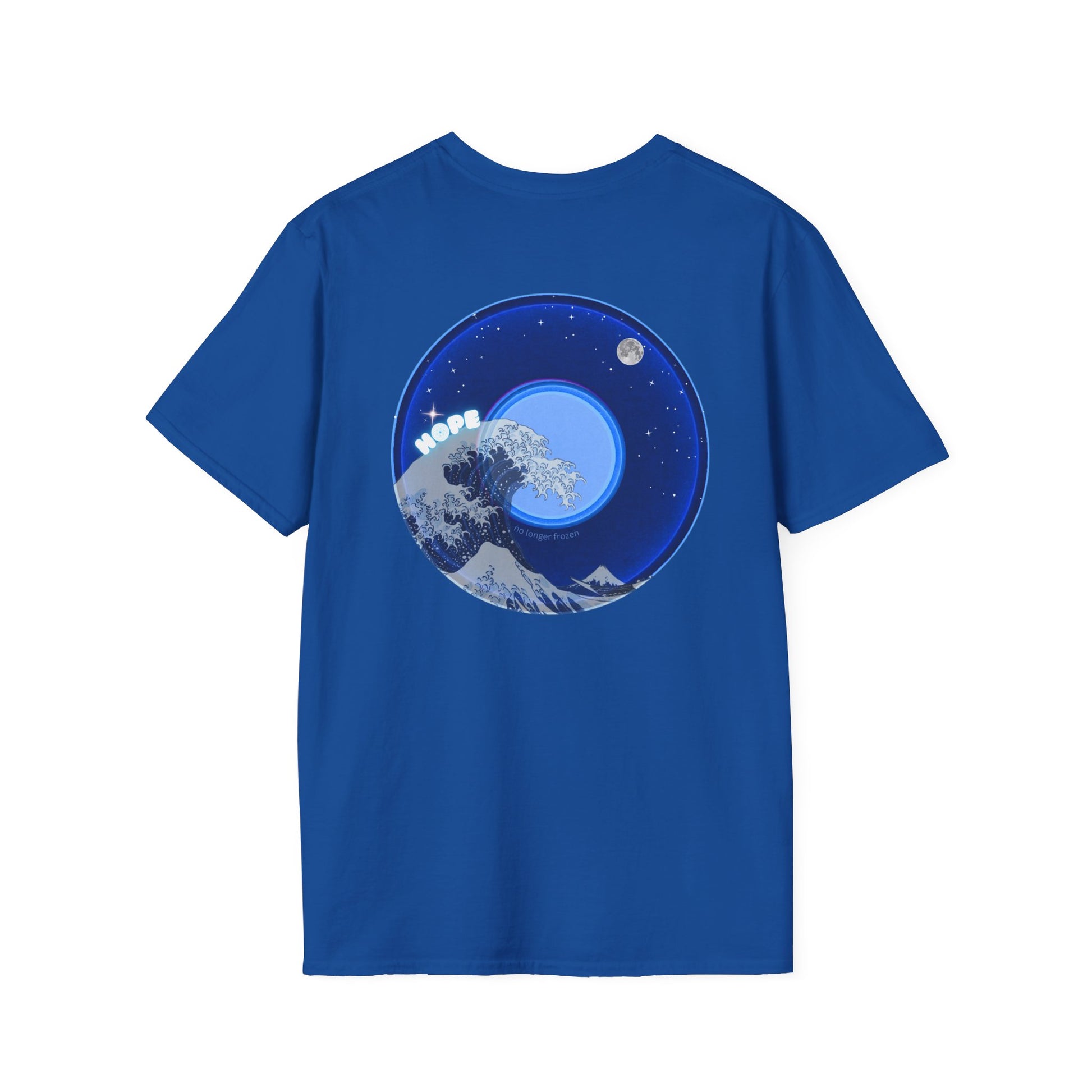 Classic Donut Tee - Unisex Soft-Style - "The Hopeful Waving Donut" - variant 2 - vivid blue donut