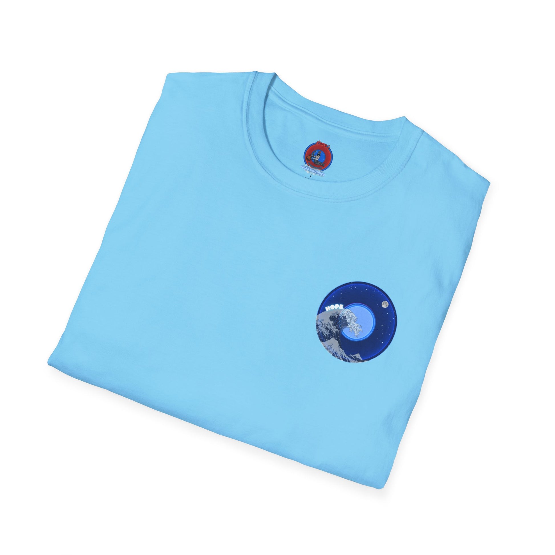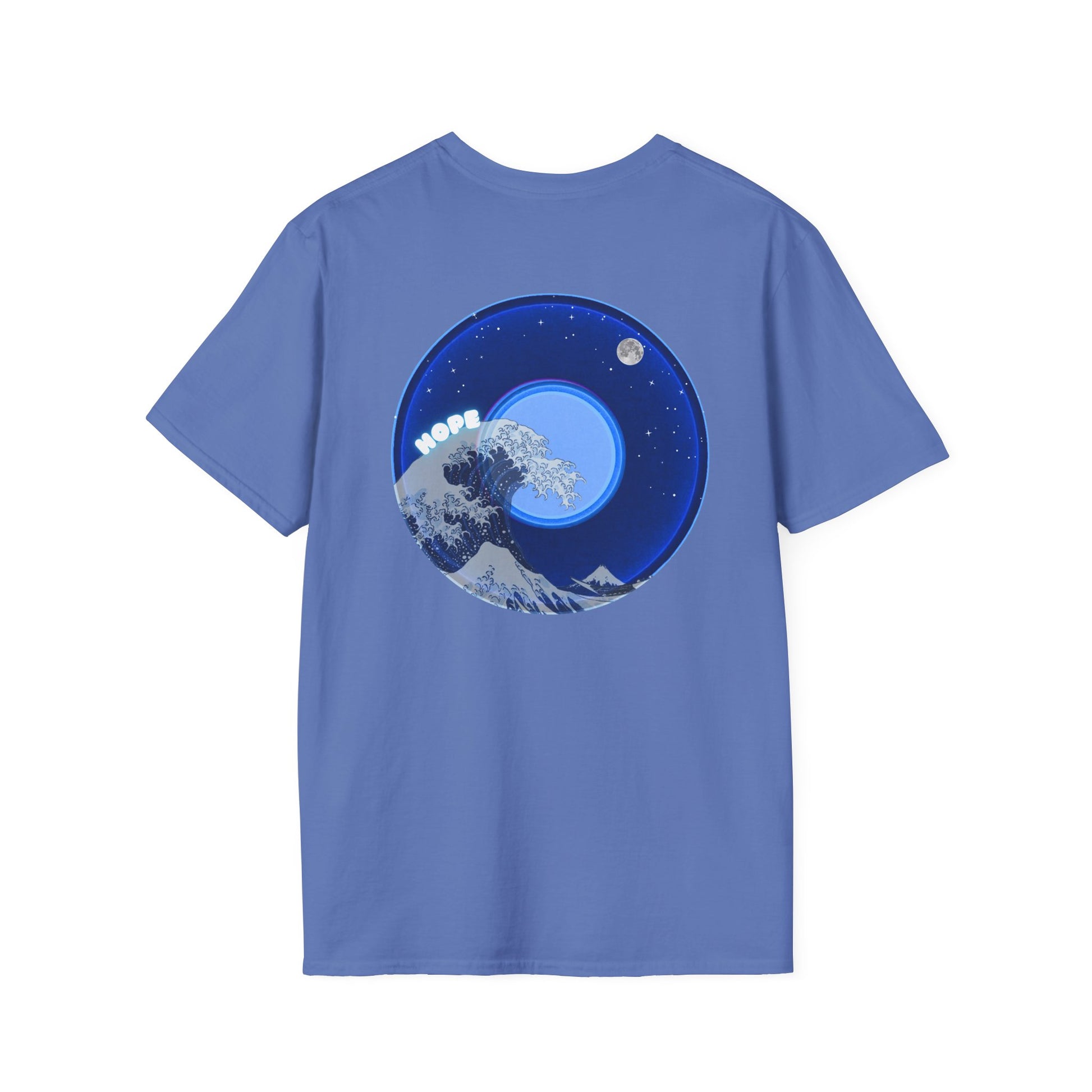 Classic Donut Tee - Unisex Soft-Style - "The Hopeful Waving Donut" - vivid blue donut