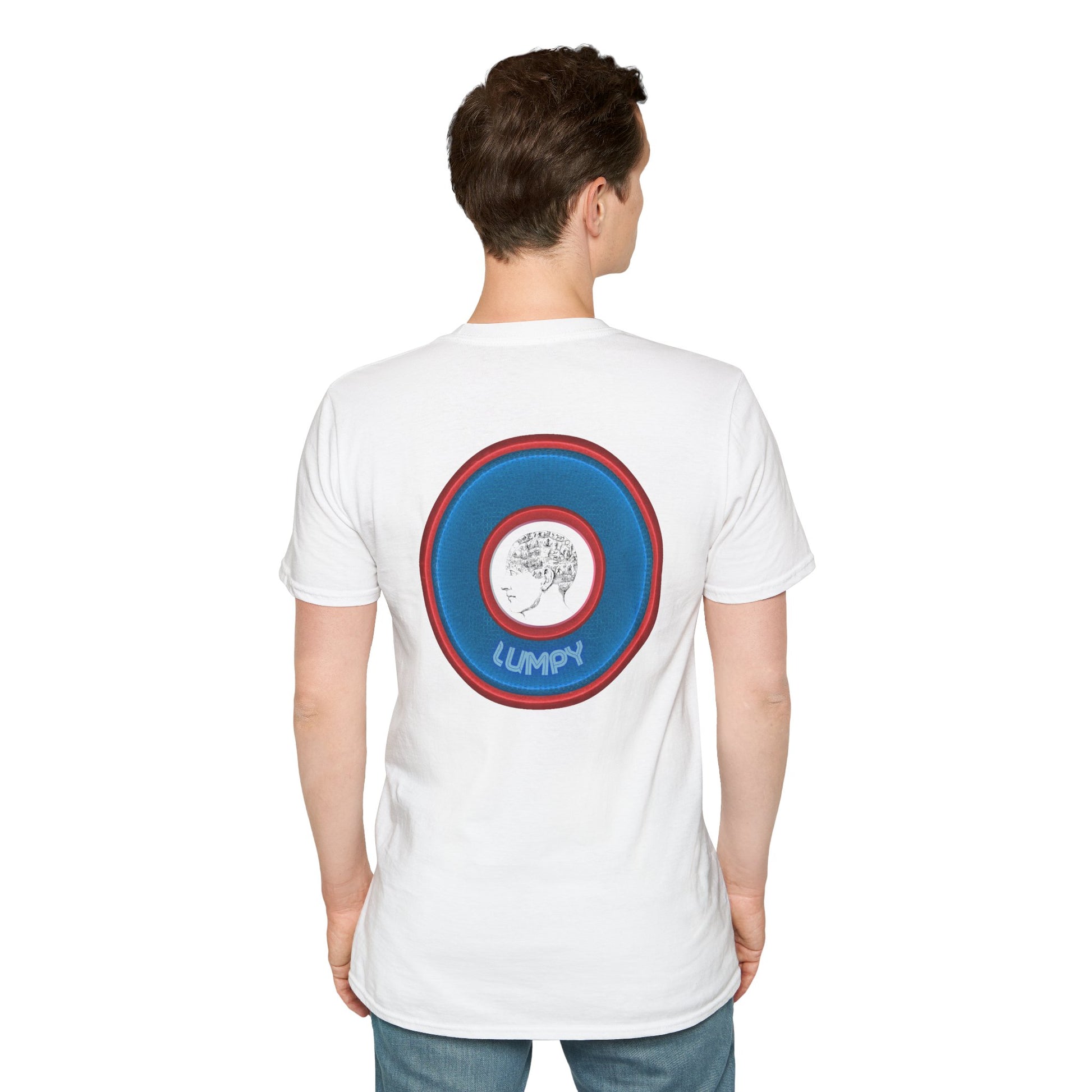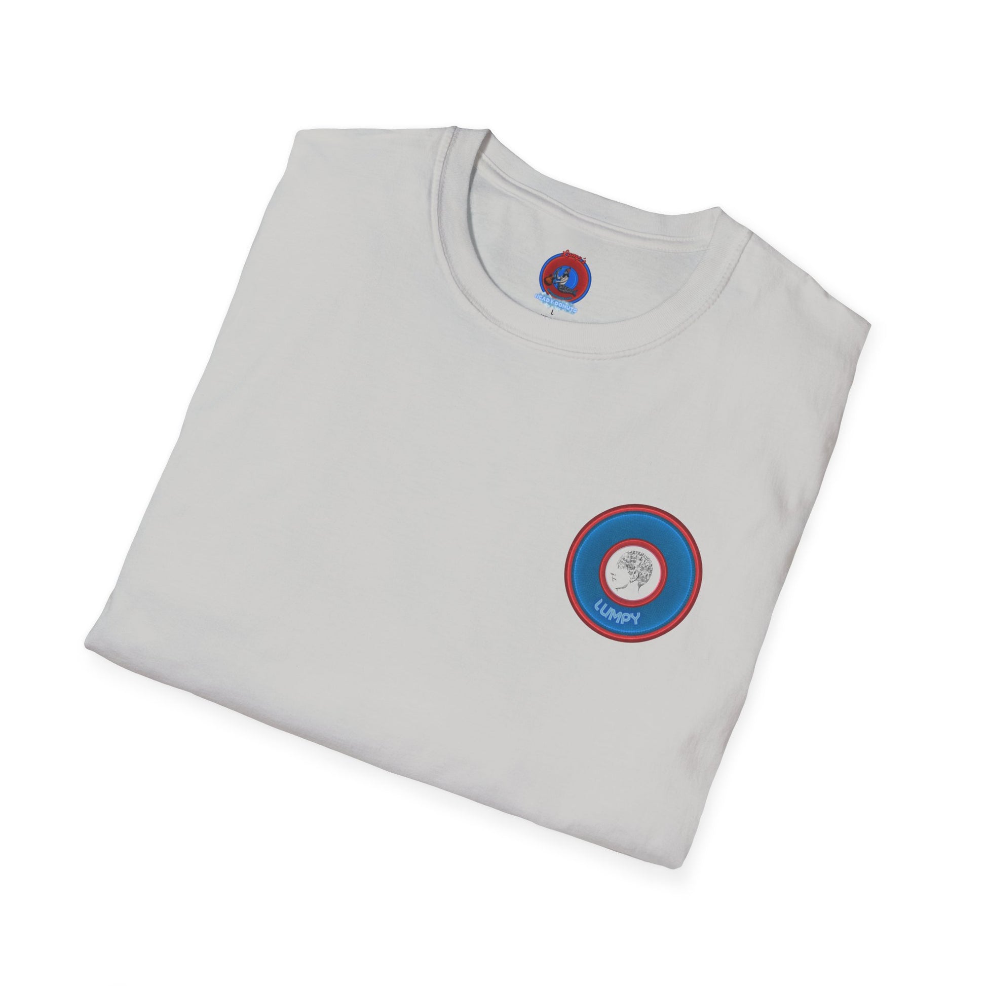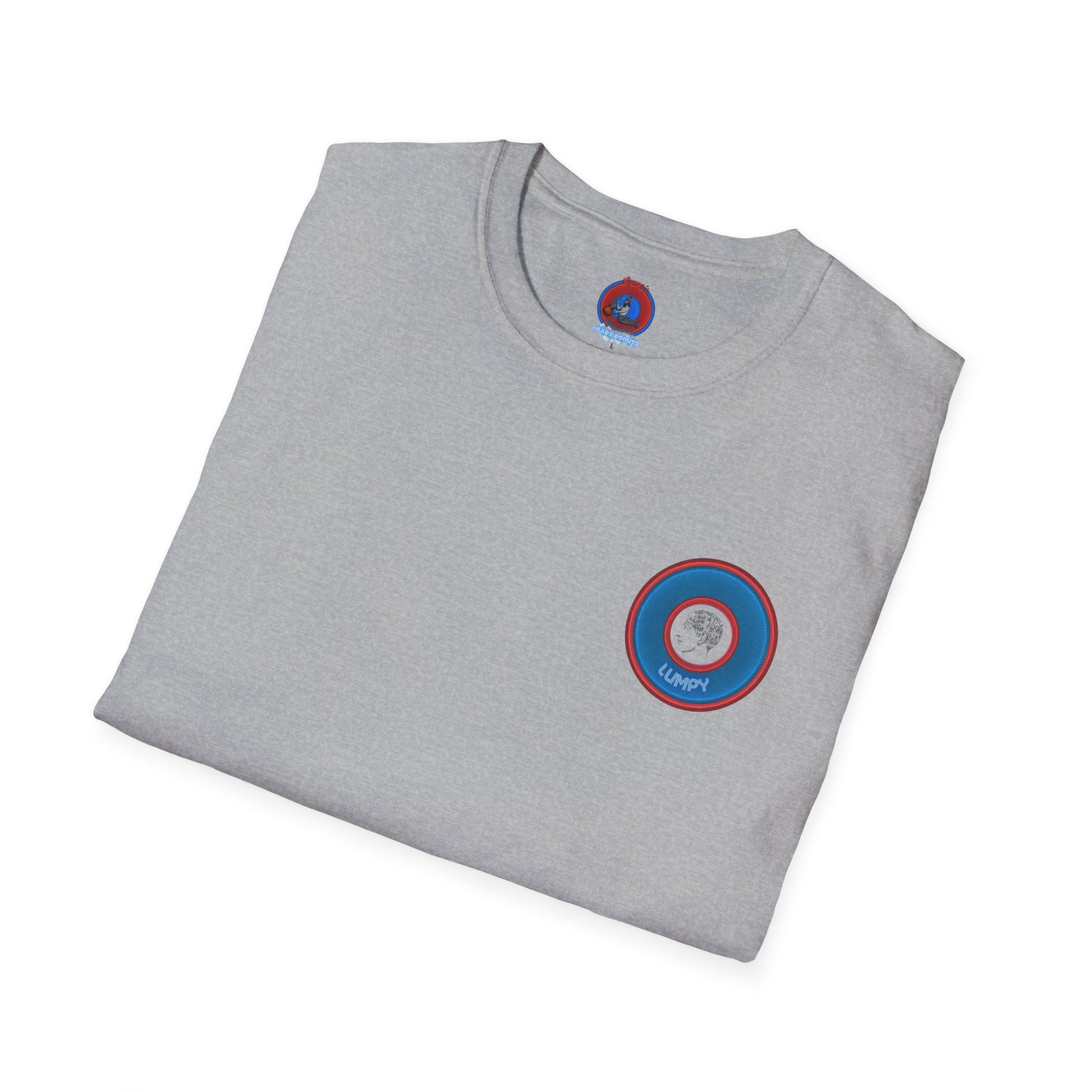 Classic Donut Tee - Unisex Soft-Style - "The Lumpy Donut" - variant 2 - blue/red donut