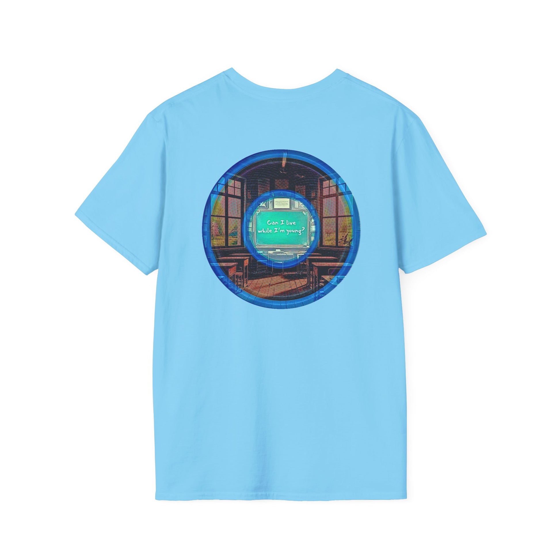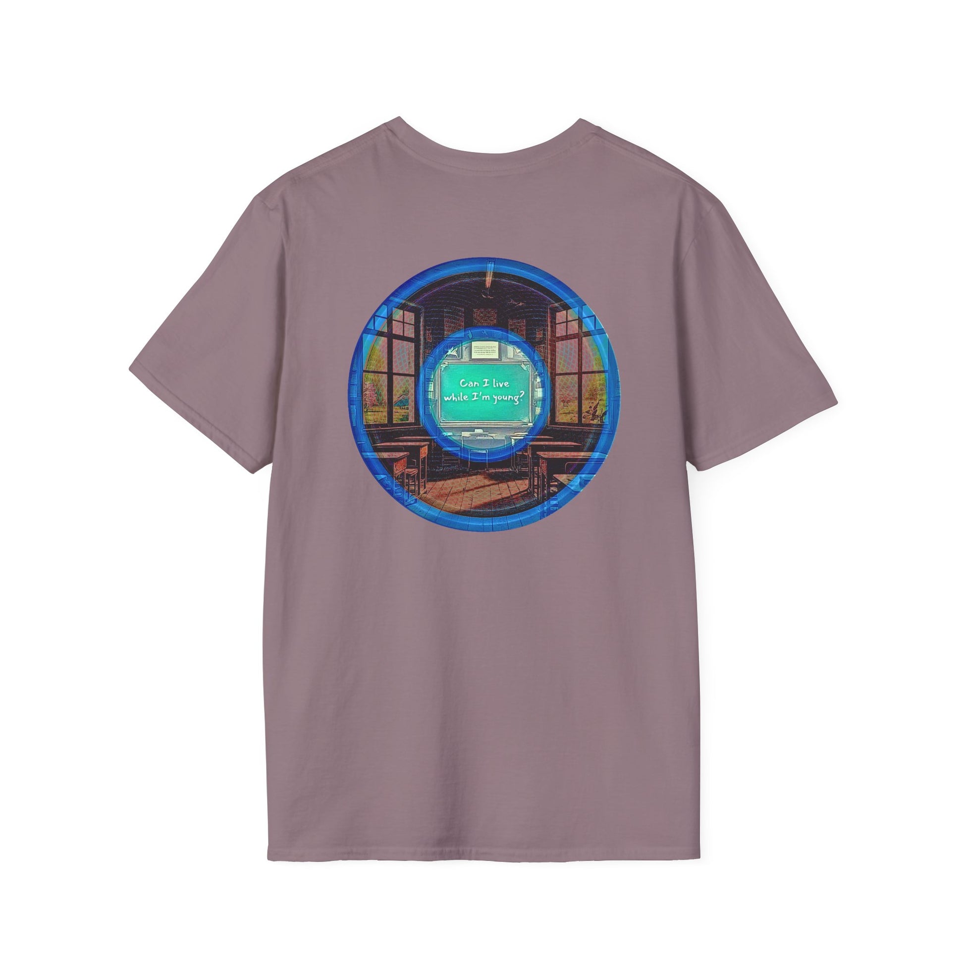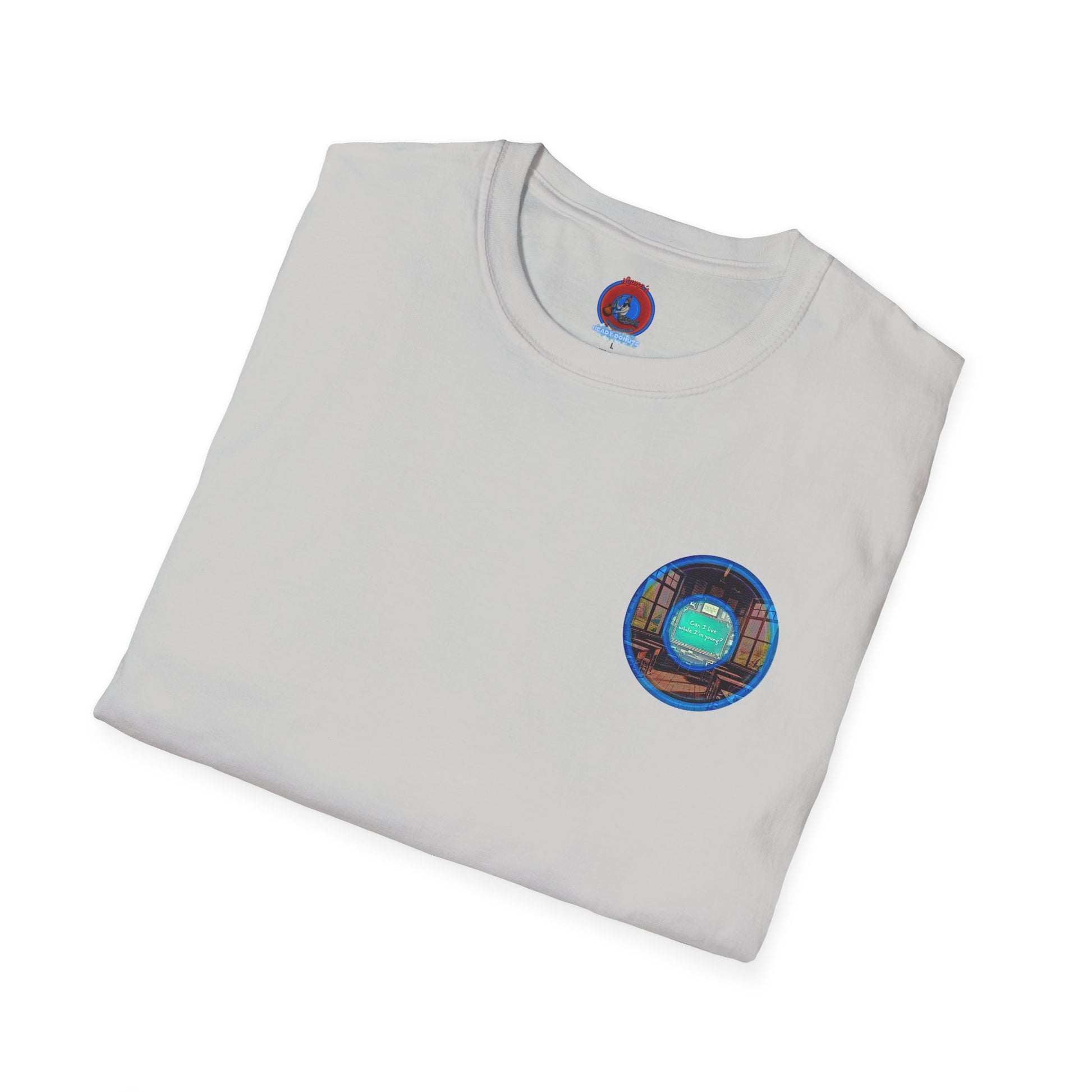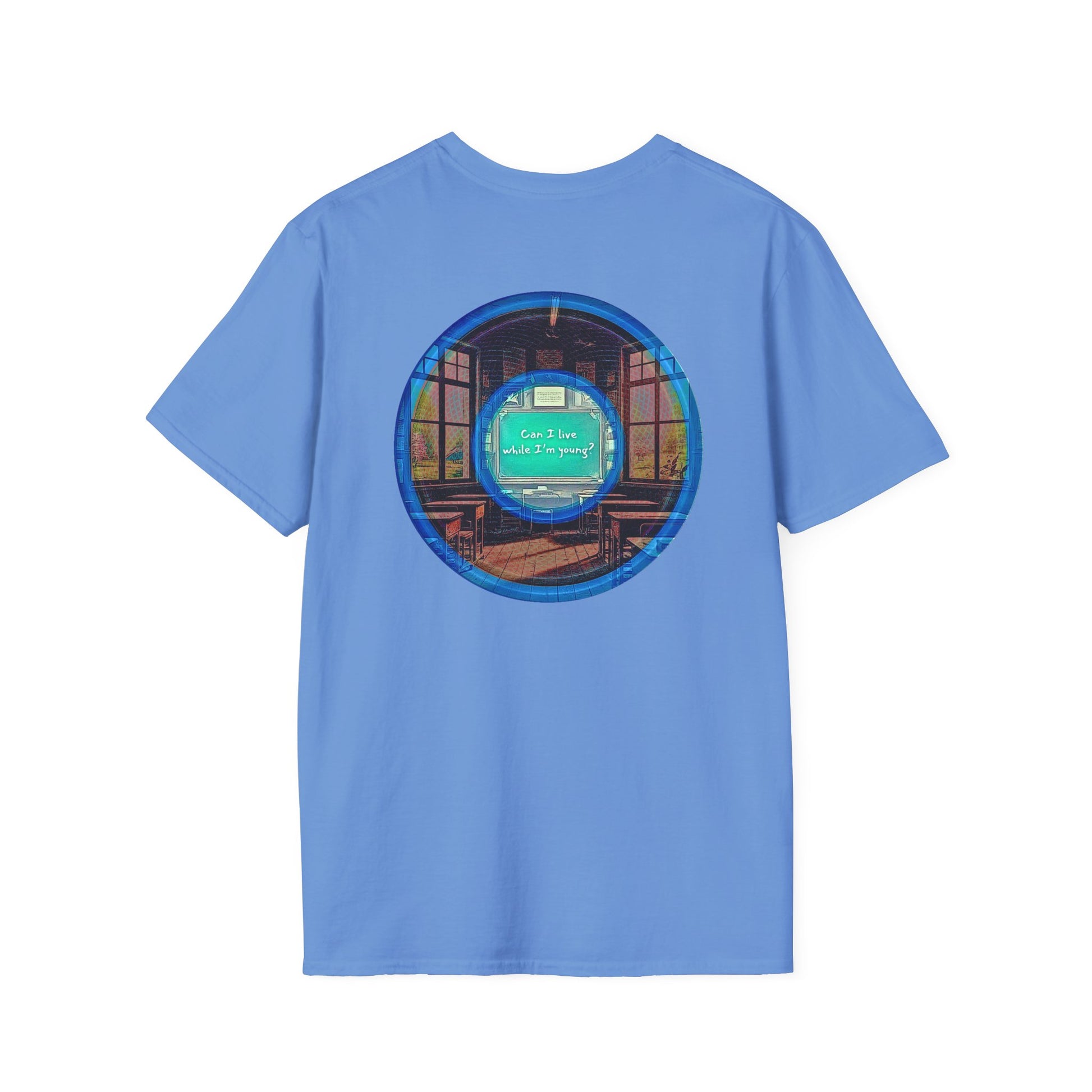 Classic Donut Tee - Unisex Soft-Style - "The Torturous Chalk Dust Donut " - blue/red picture donut