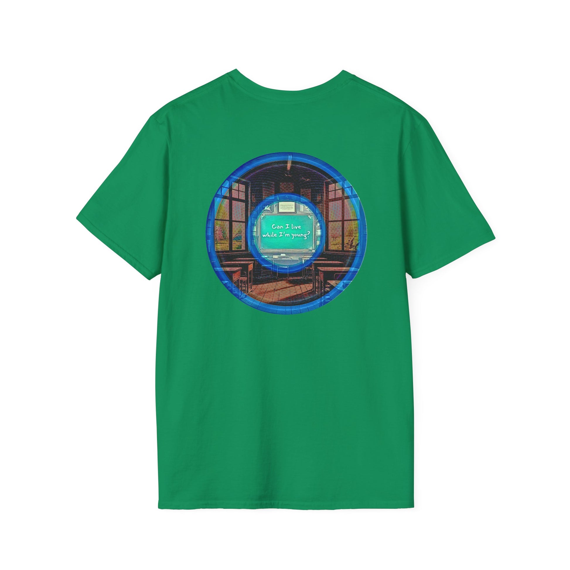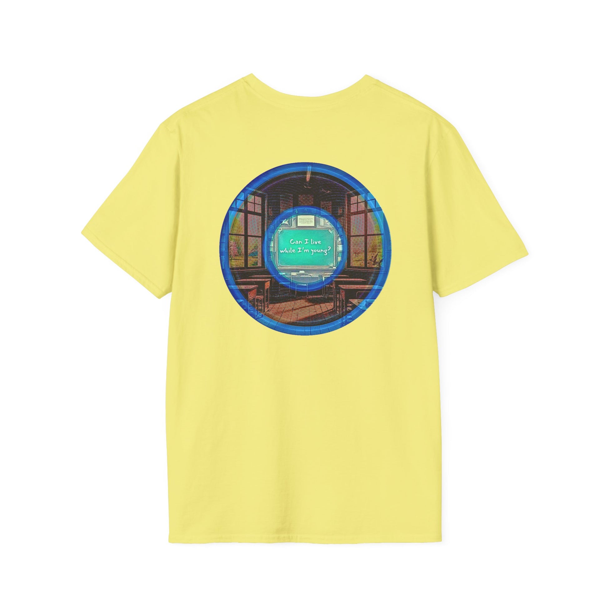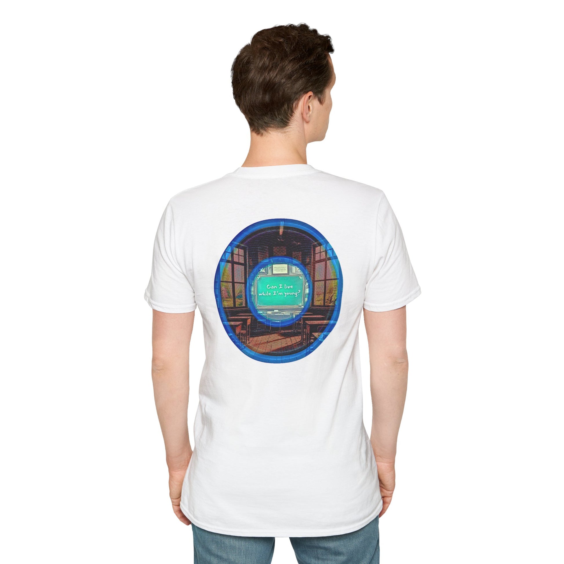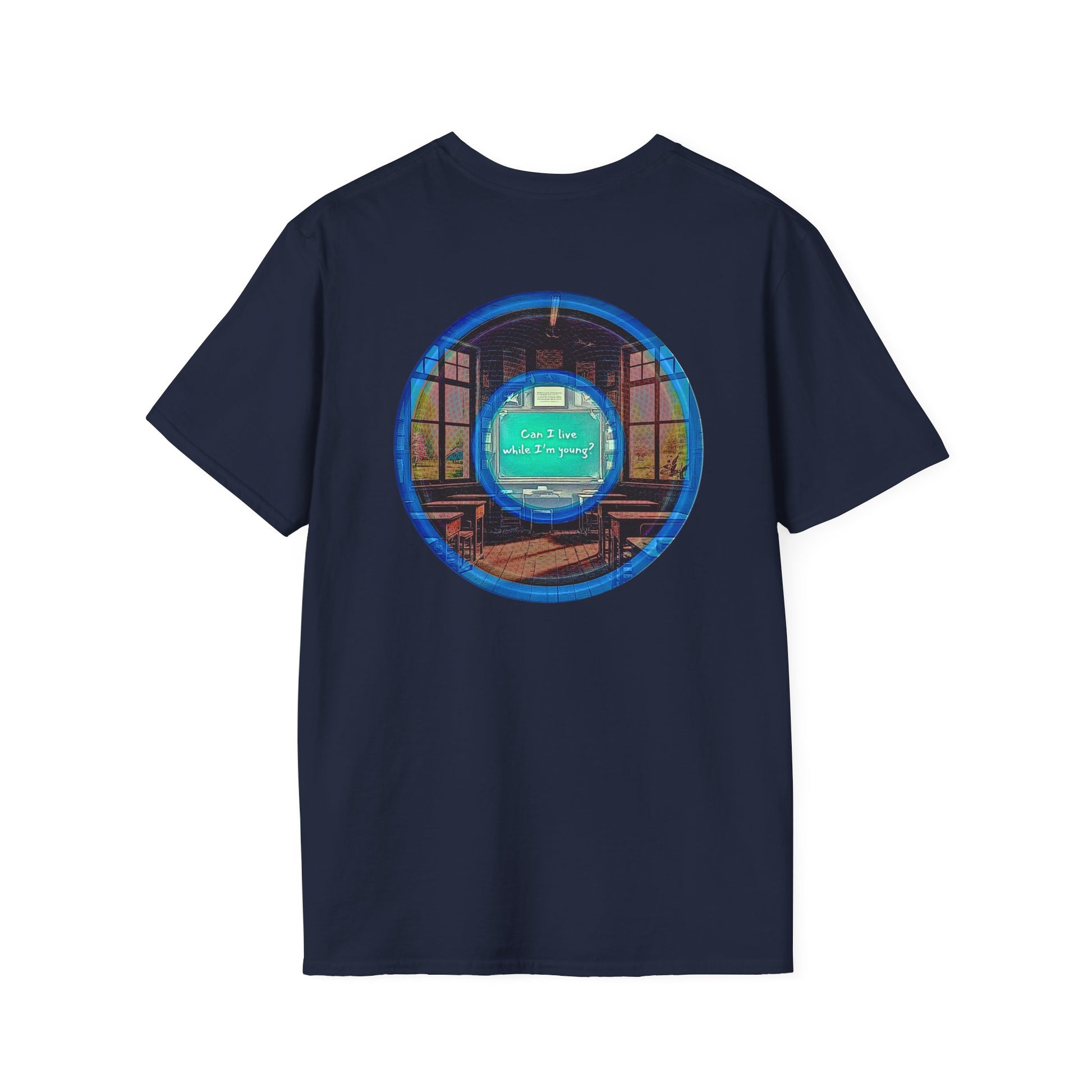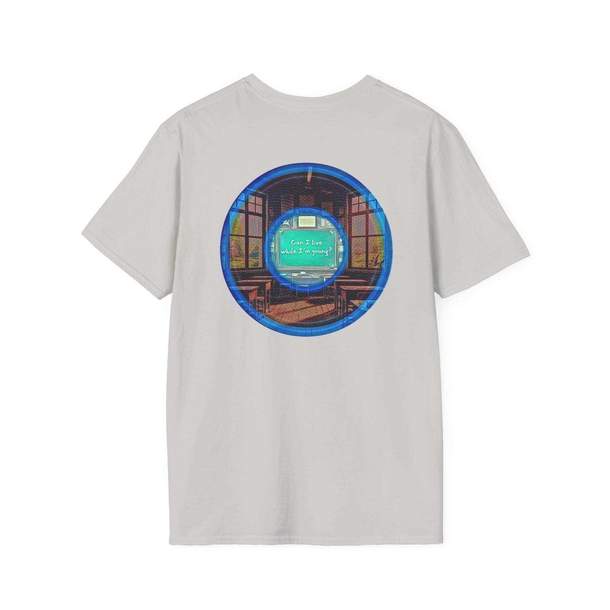 Classic Donut Tee - Unisex Soft-Style - "The Torturous Chalk Dust Donut " - blue/red picture donut