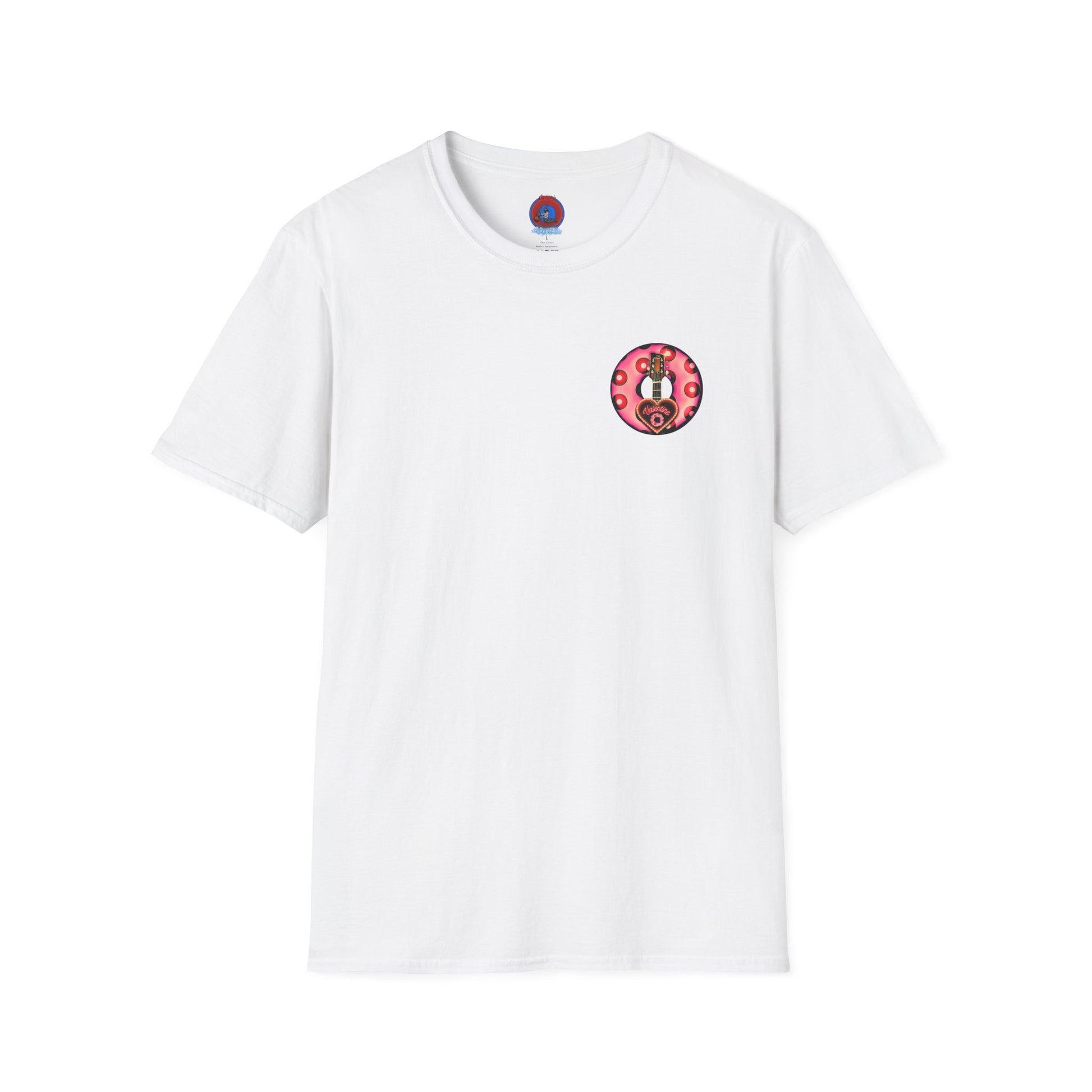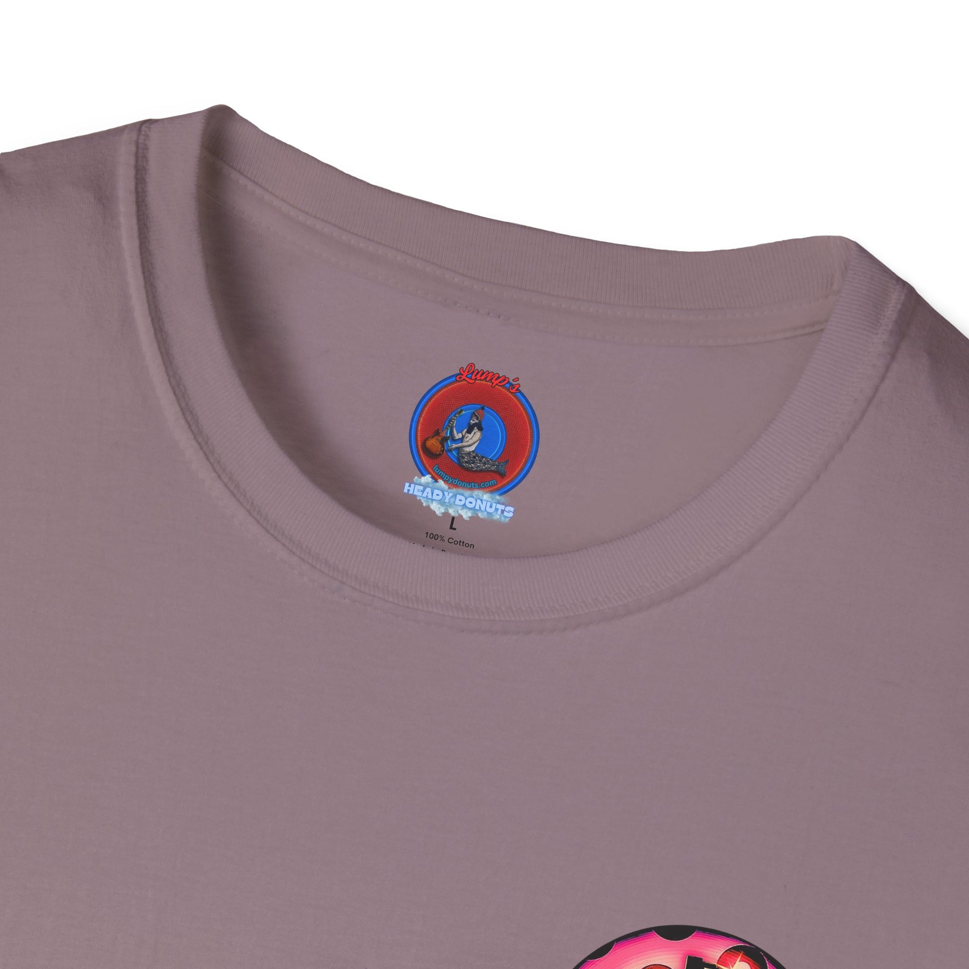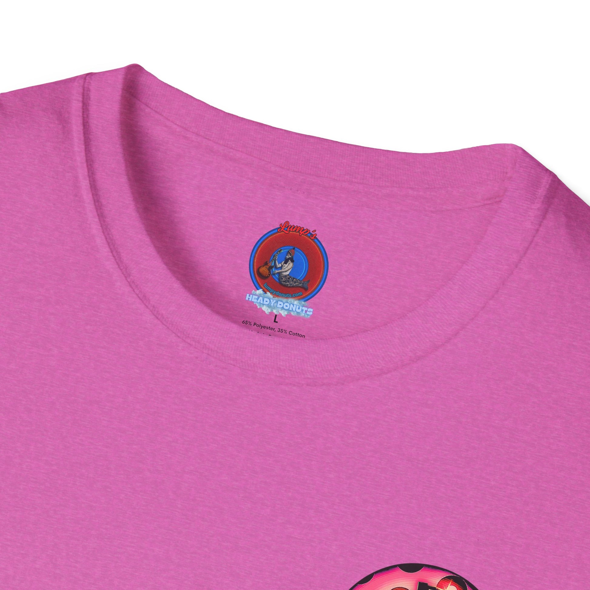 Classic Donut Tee - Unisex Soft-Style - "Would You Be My Donut?" - paradoxical faded magenta/red donut - variant 13