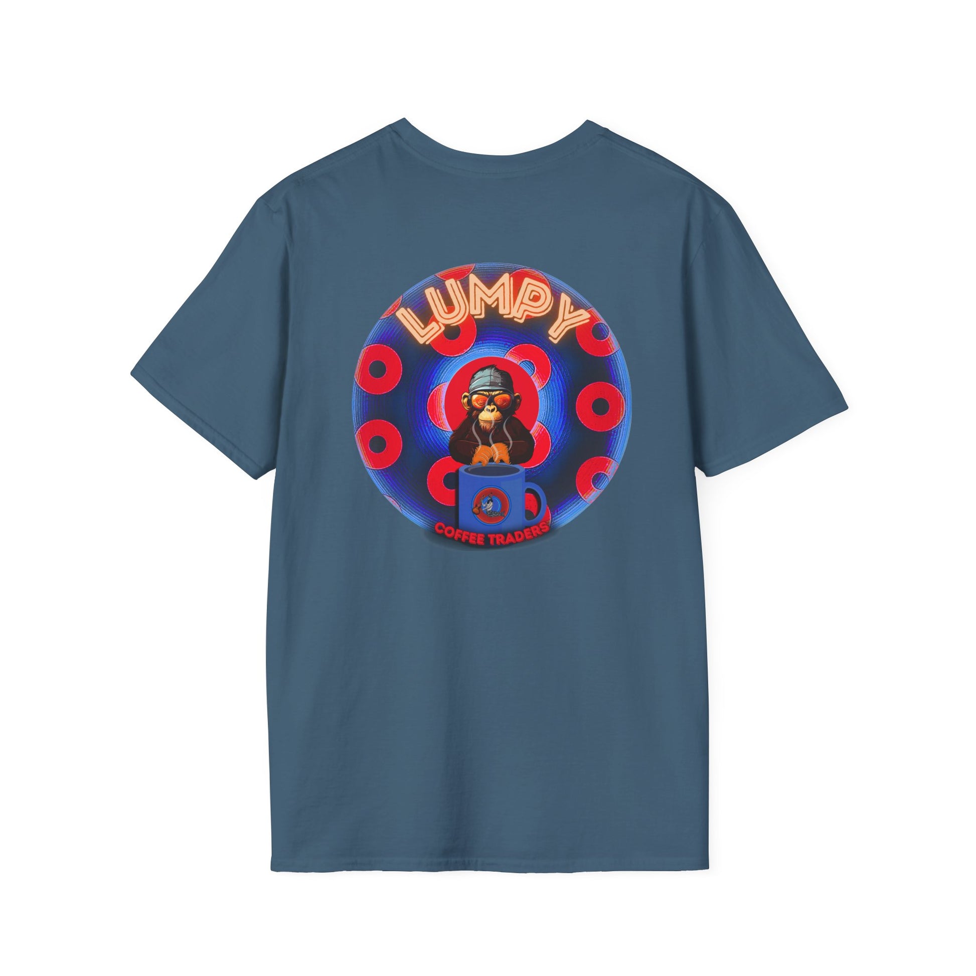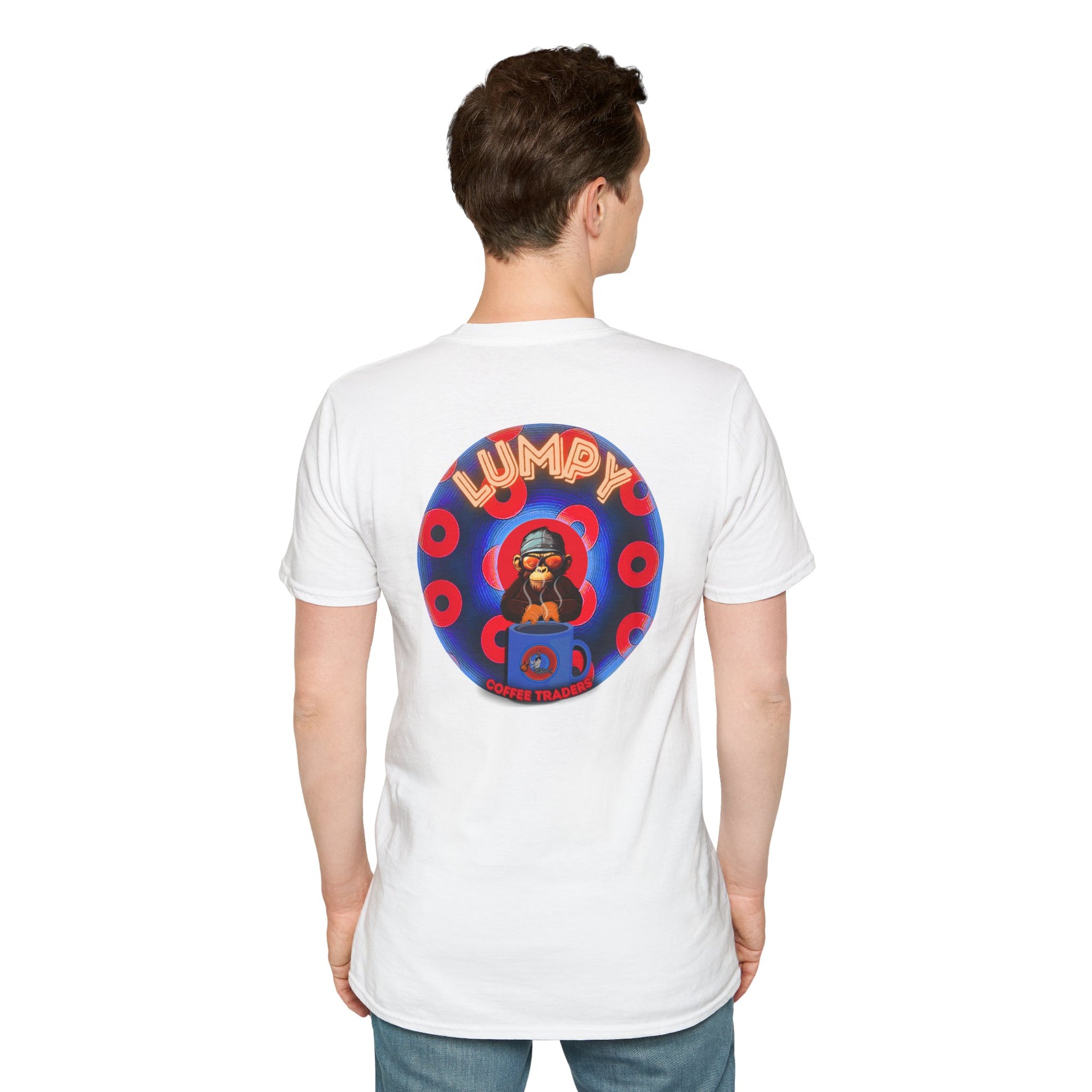 Coffee Traders Tee - Unisex Soft-Style - "Tasty Coffee" - paradoxical donut/rustic red donut - variant 1 - tasty front/logo back