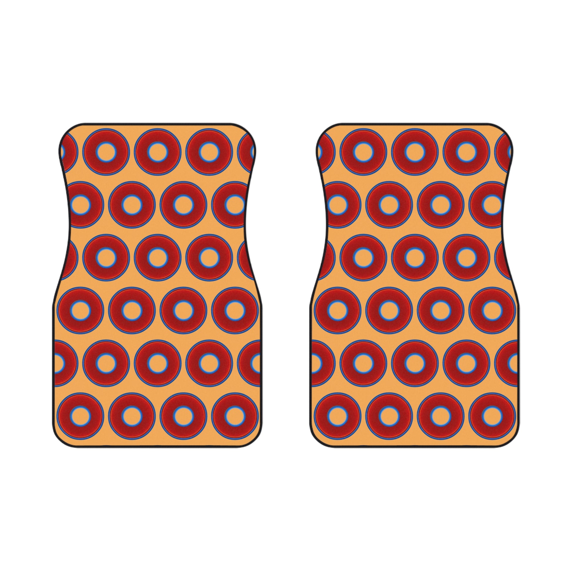 Contacted Car Mats - Set of 2/Front - vivid donut print w/creamsicle orange background