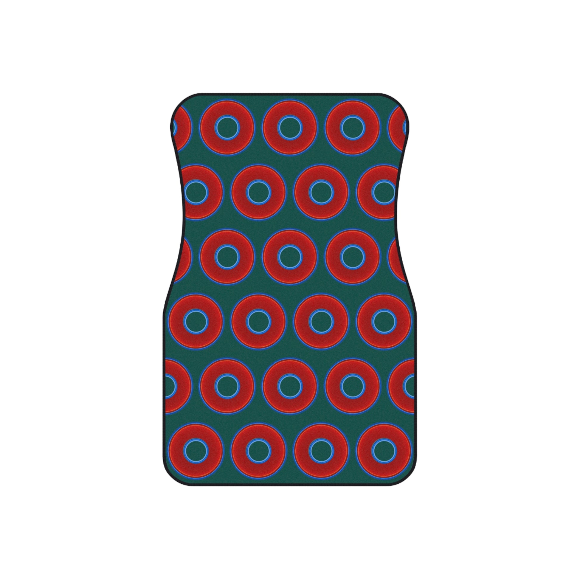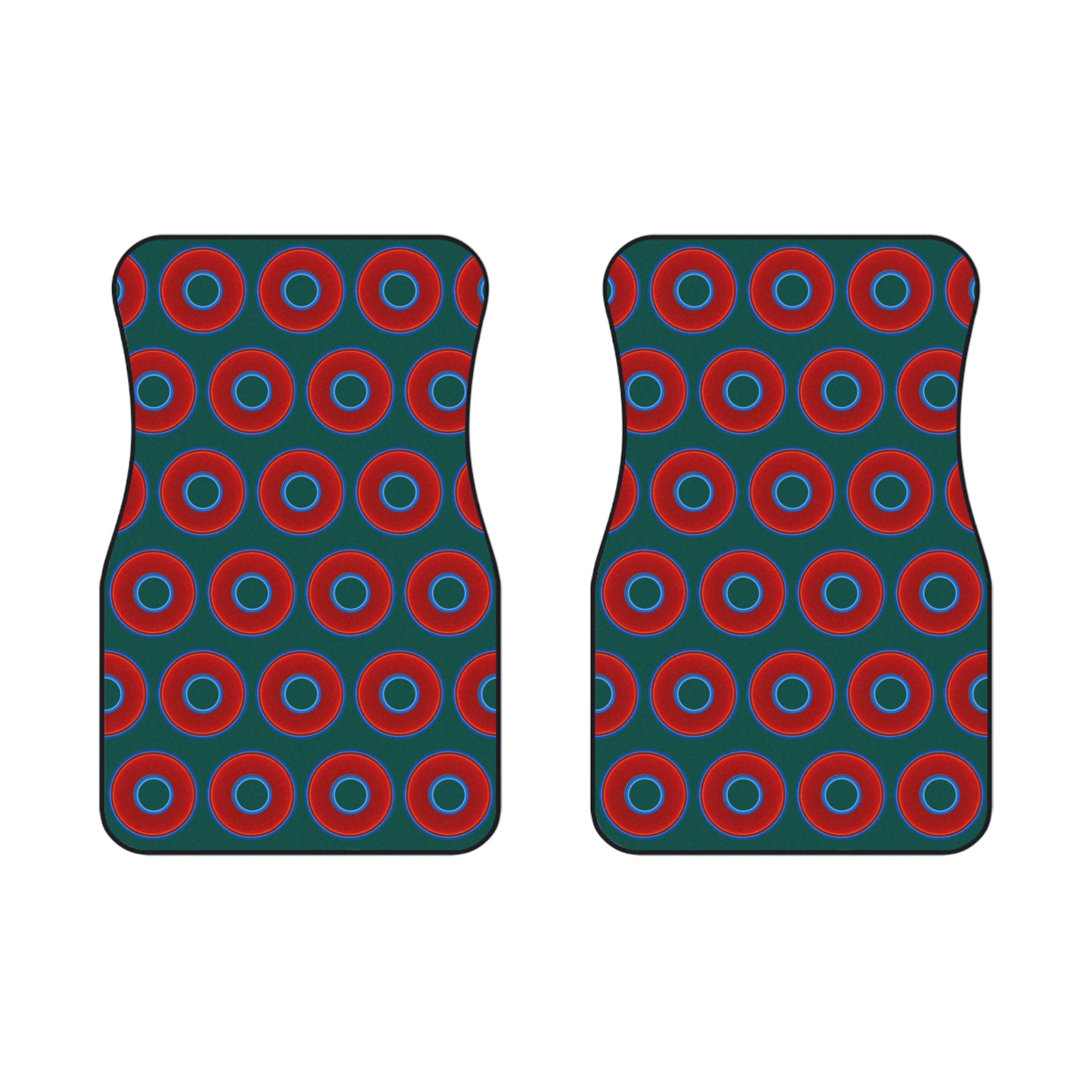 Contacted Car Mats - Set of 2/Front - vivid donut print w/dark Fenway green background
