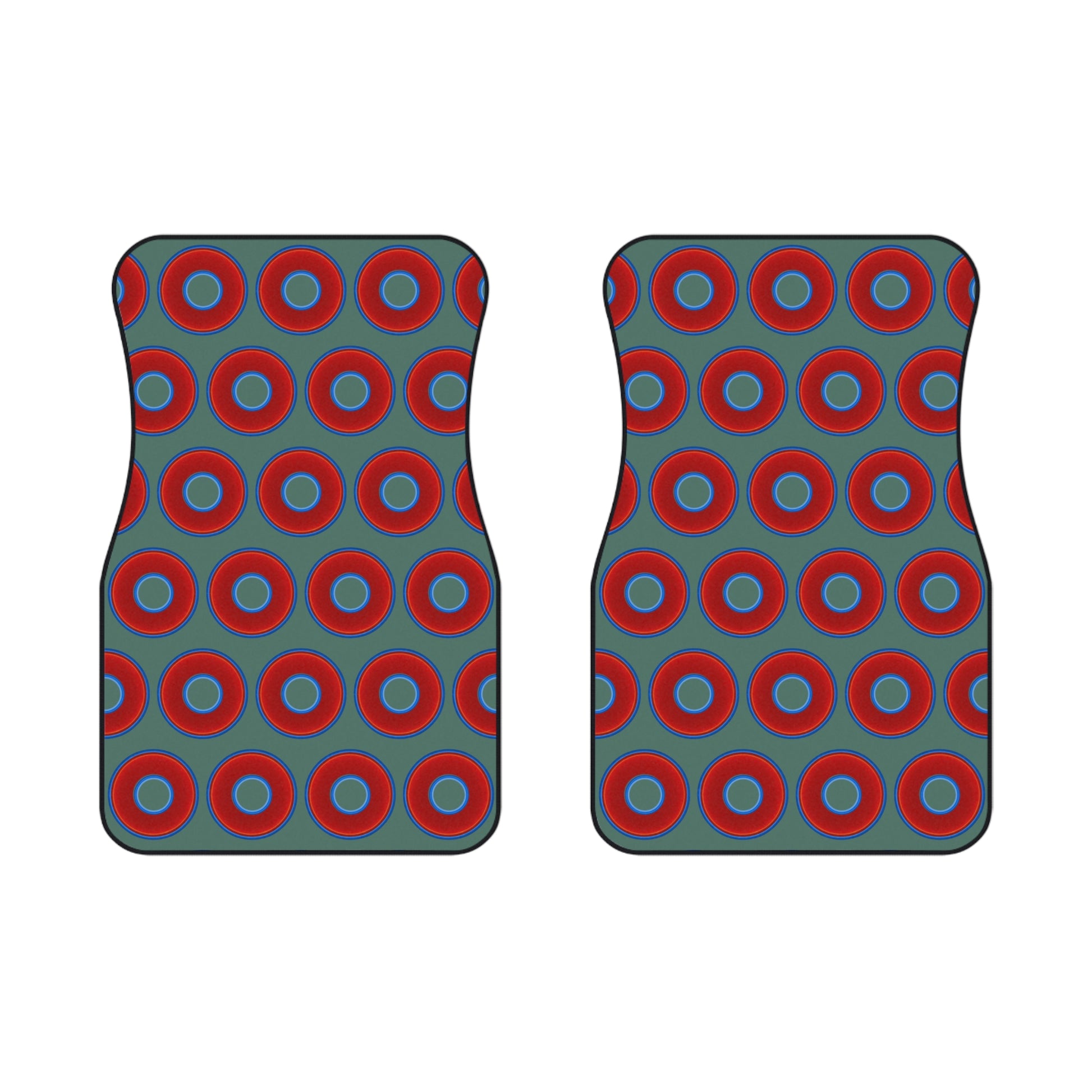 Contacted Car Mats - Set of 2/Front - vivid donut print w/Fenway green background
