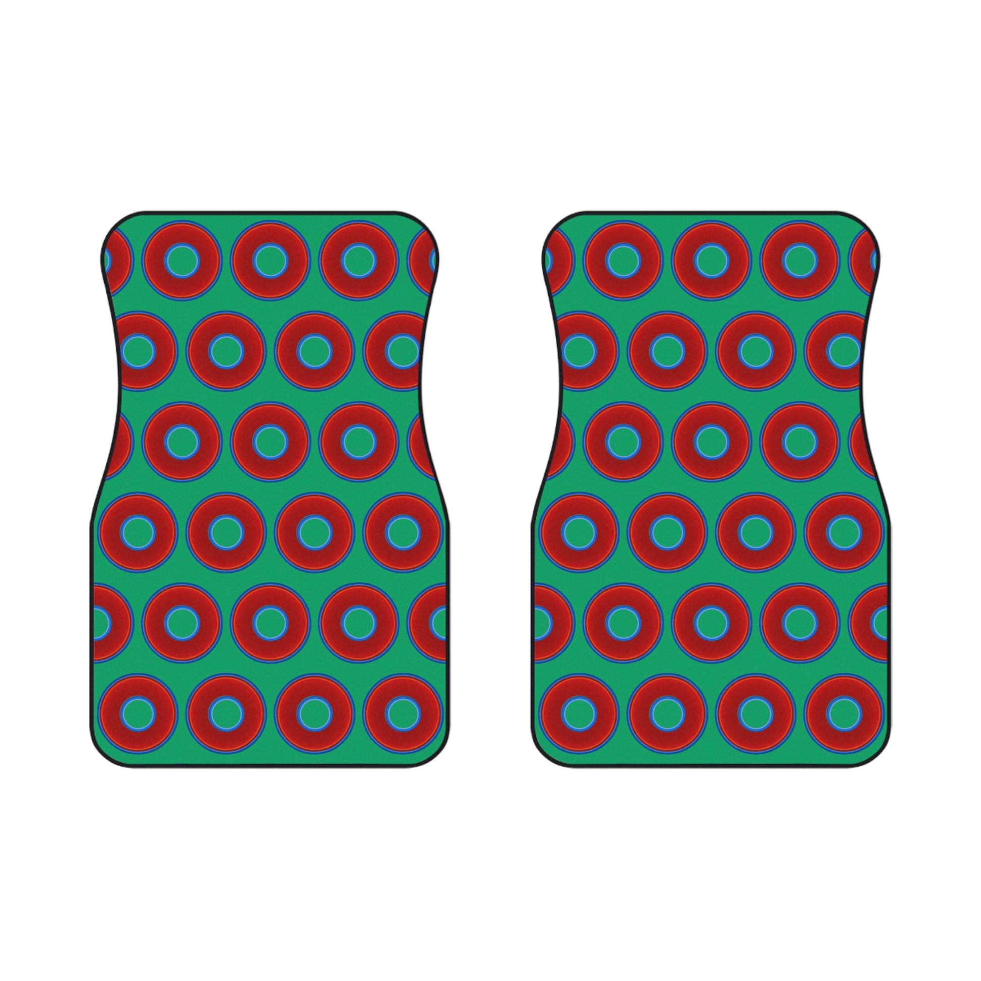 Contacted Car Mats - Set of 2/Front - vivid donut print w/jade green background