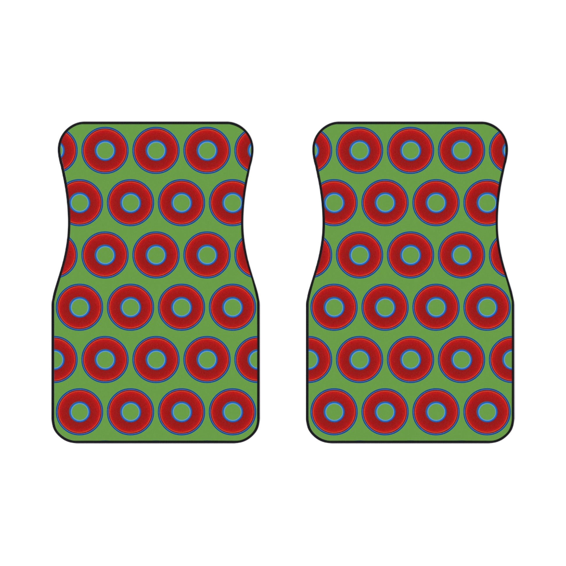 Contacted Car Mats - Set of 2/Front - vivid donut print w/light green background