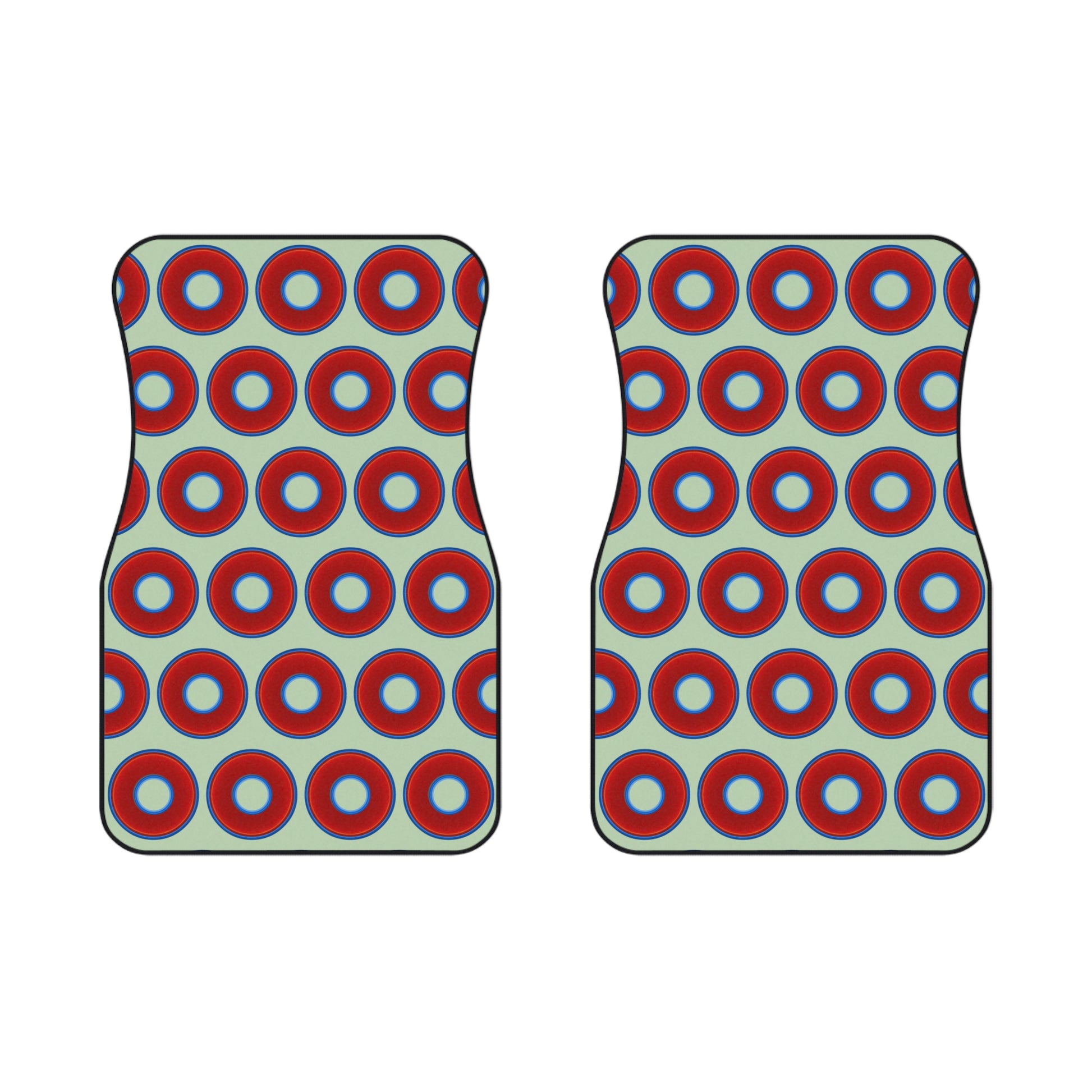 Contacted Car Mats - Set of 2/Front - vivid donut print w/seafoam background