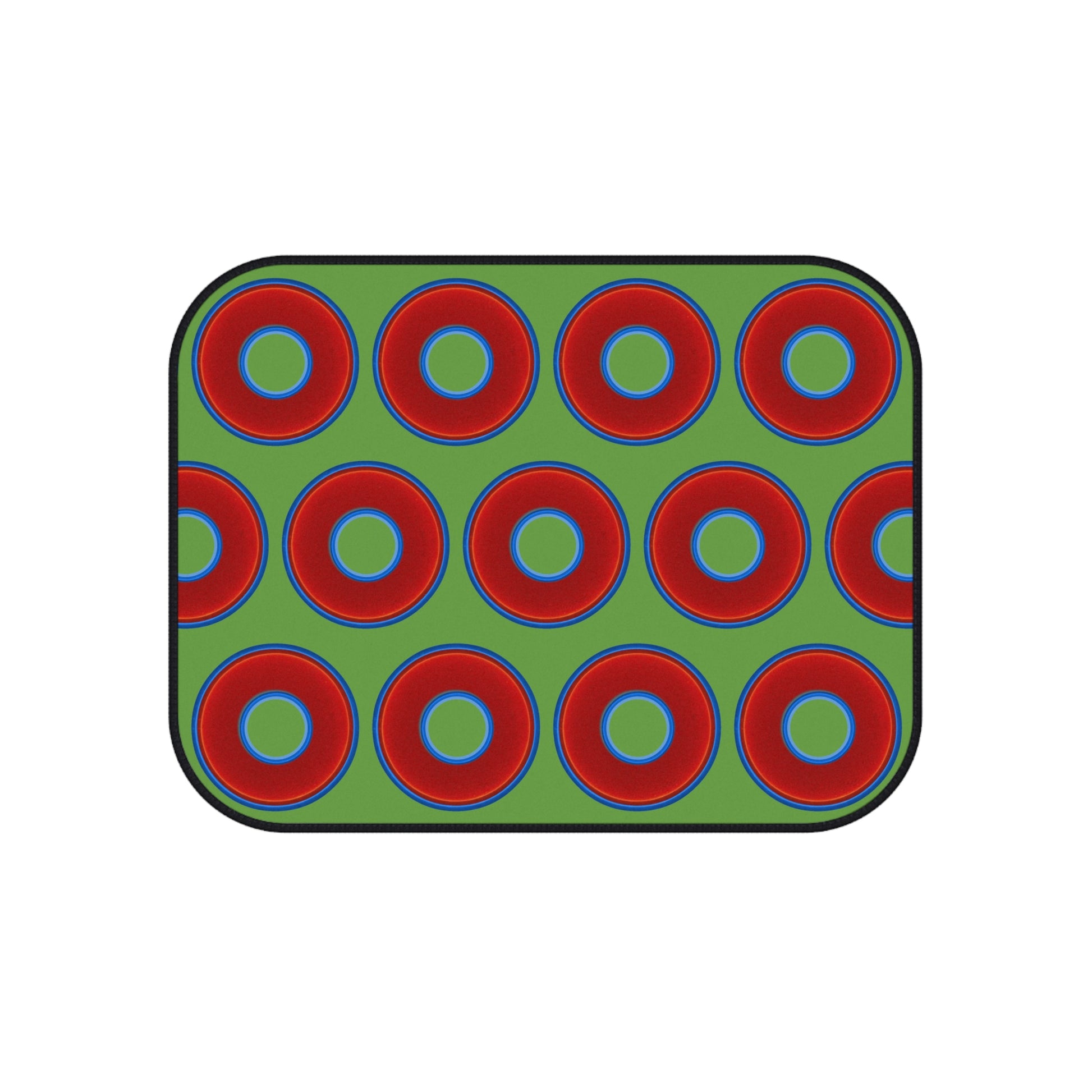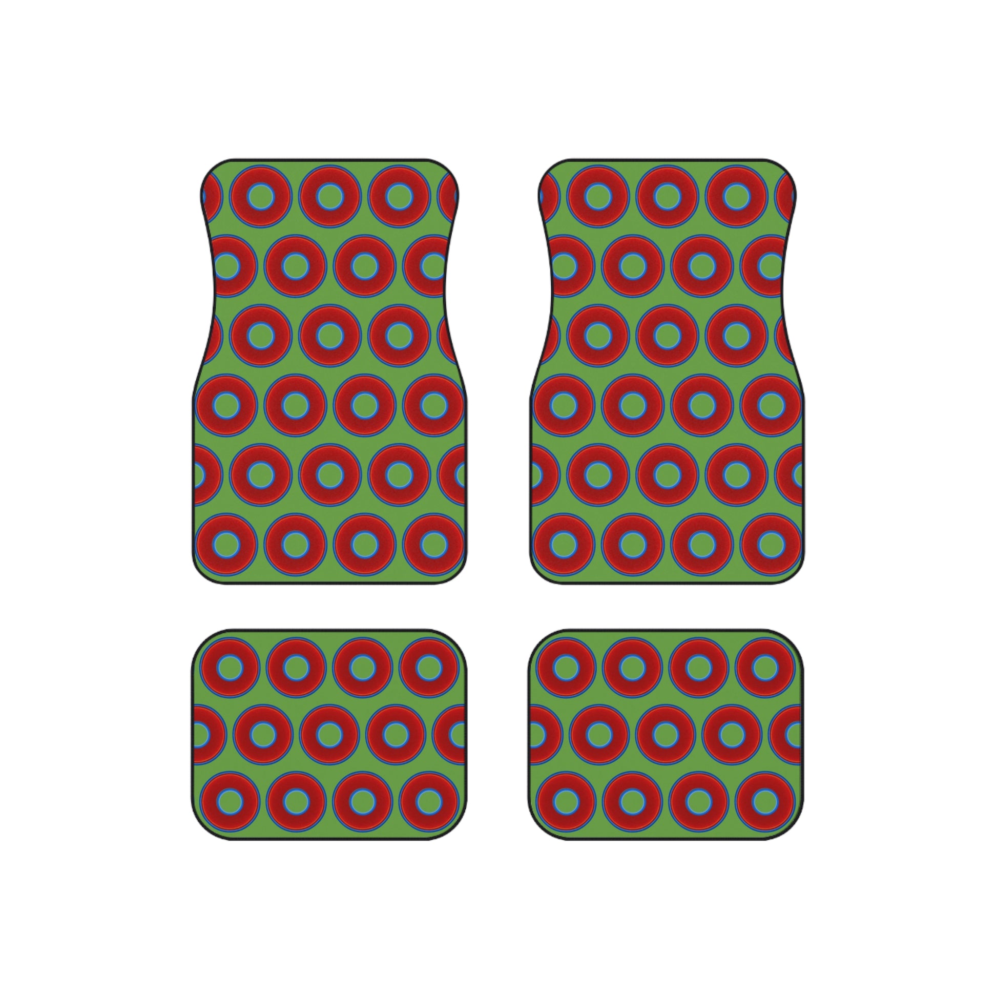 Contacted Car Mats - vivid donut print w/light green background