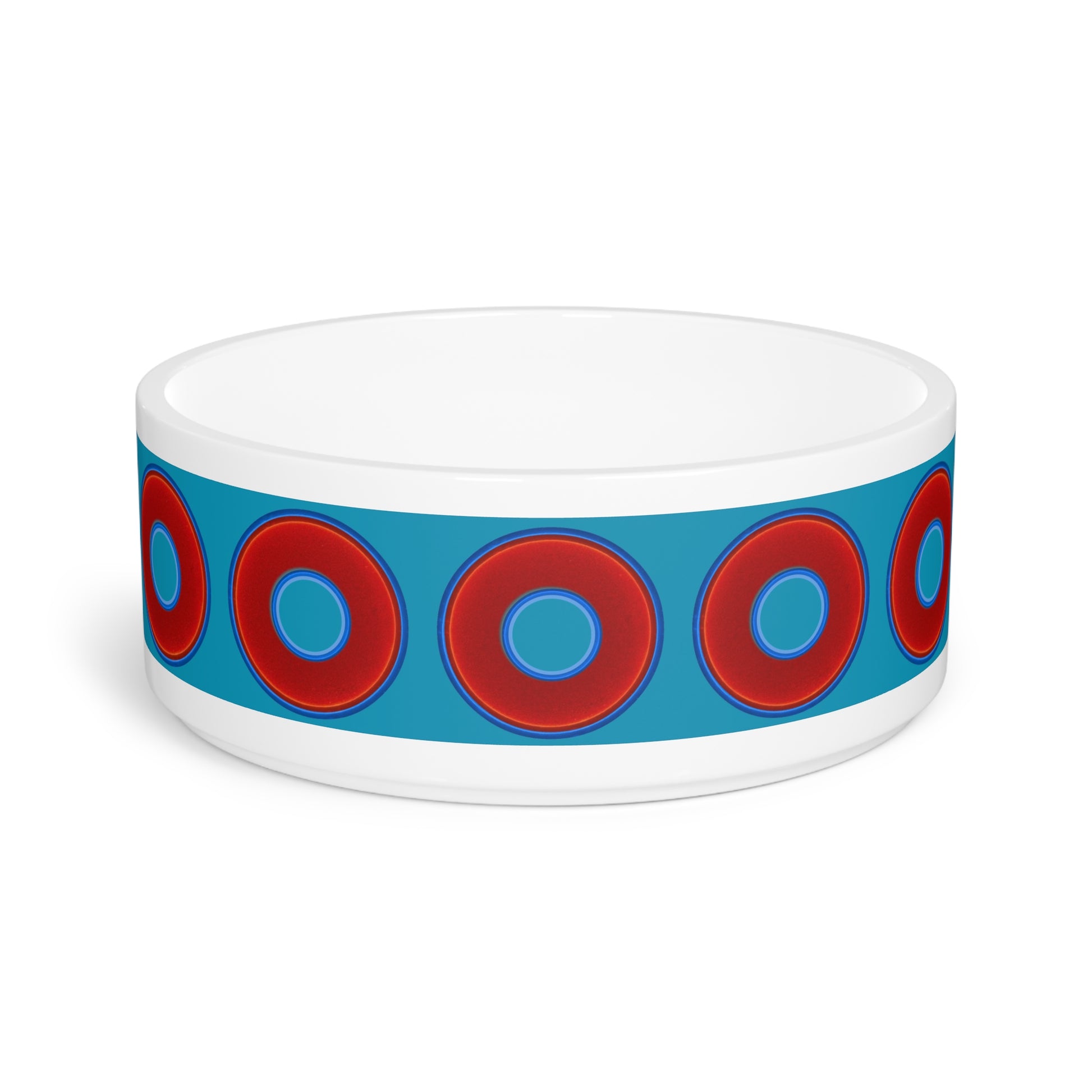 16 oz Lumpy Pet Bowl - vivid red donuts w/aquamarine blue background