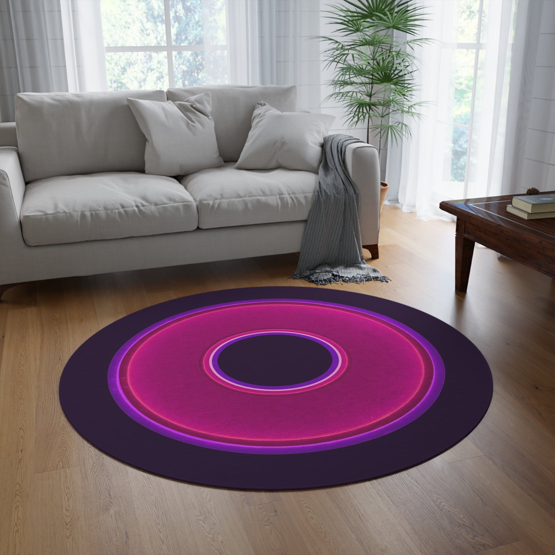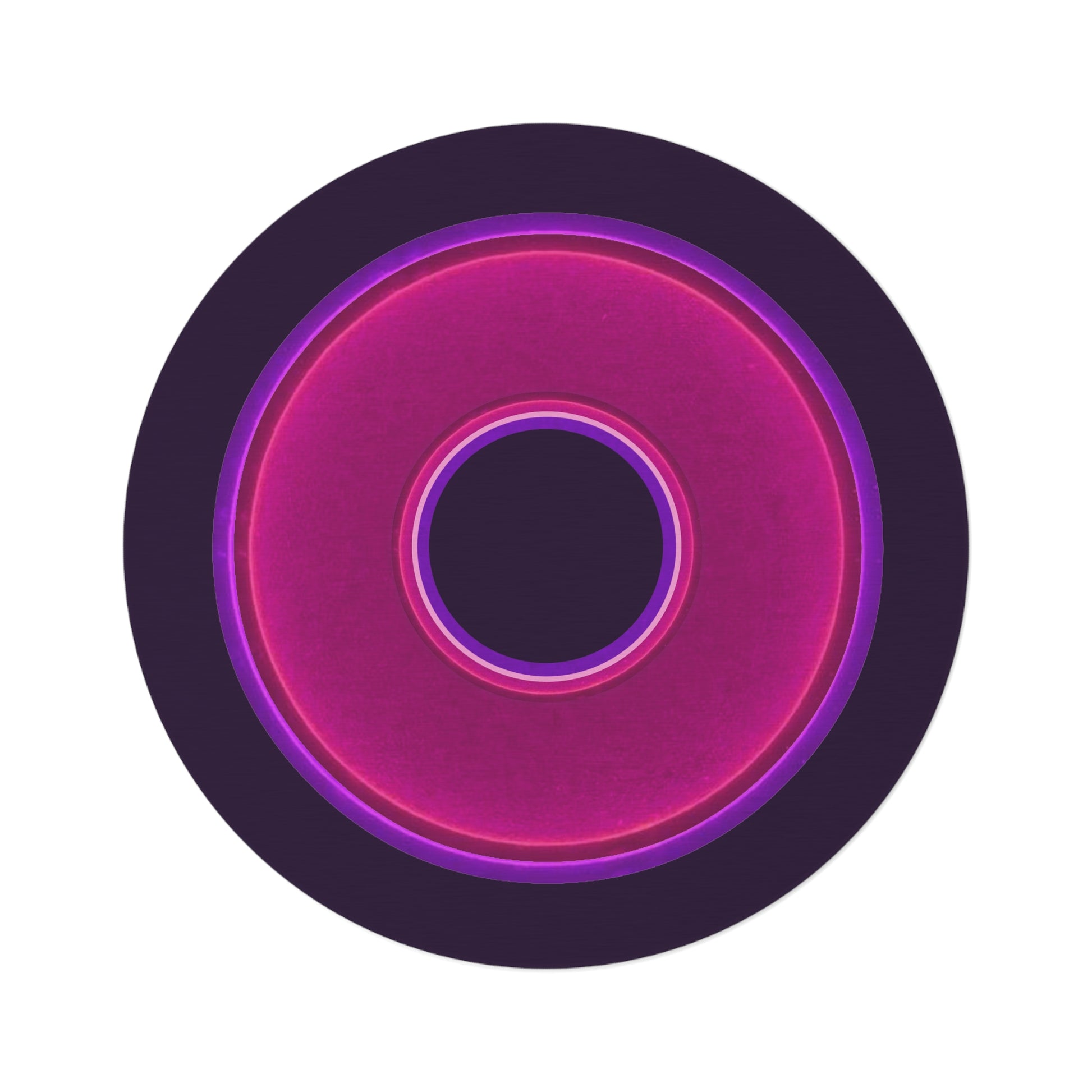Round Room - 5 ft x 5 ft Lumpy Donut Rug - "Plain Donut" - vivid magenta donut w/midnight purple background