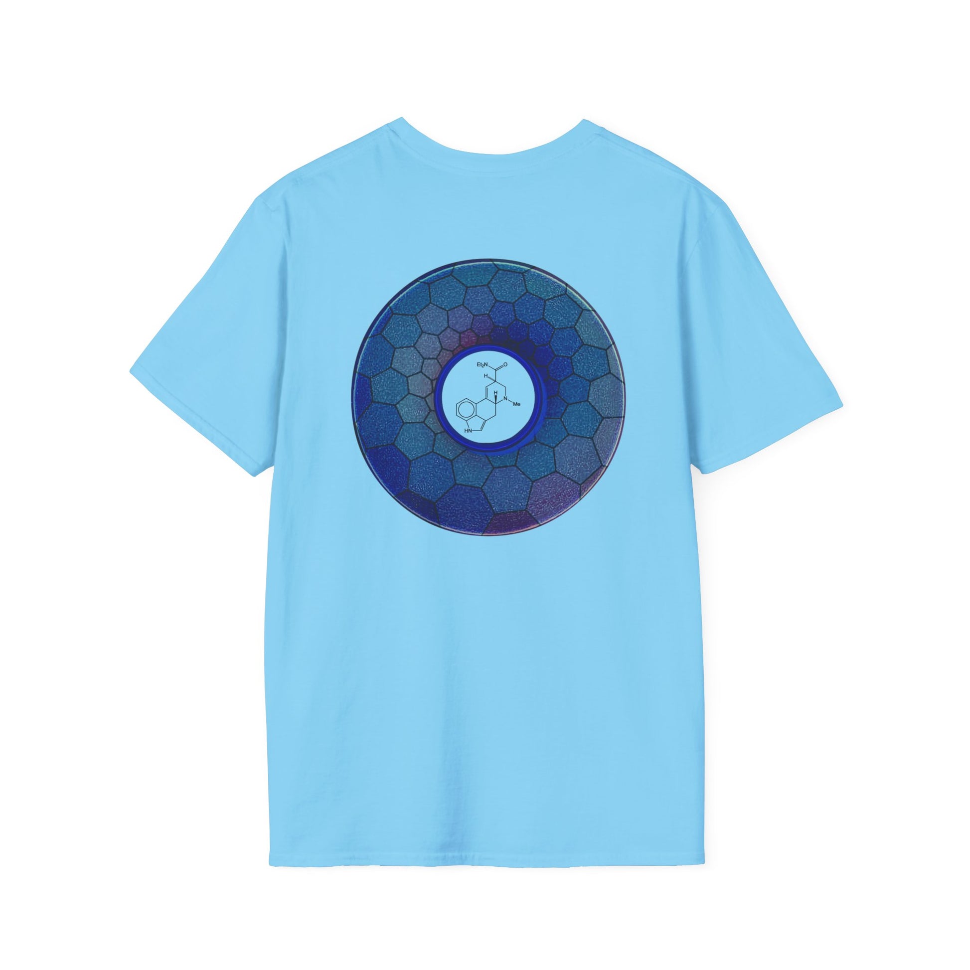 Classic Donut Tee - Unisex Soft-Style - "Dr. Albert Hofmann's Favorite Donut" - series 1.0 - variant 2 - blue hexadonut