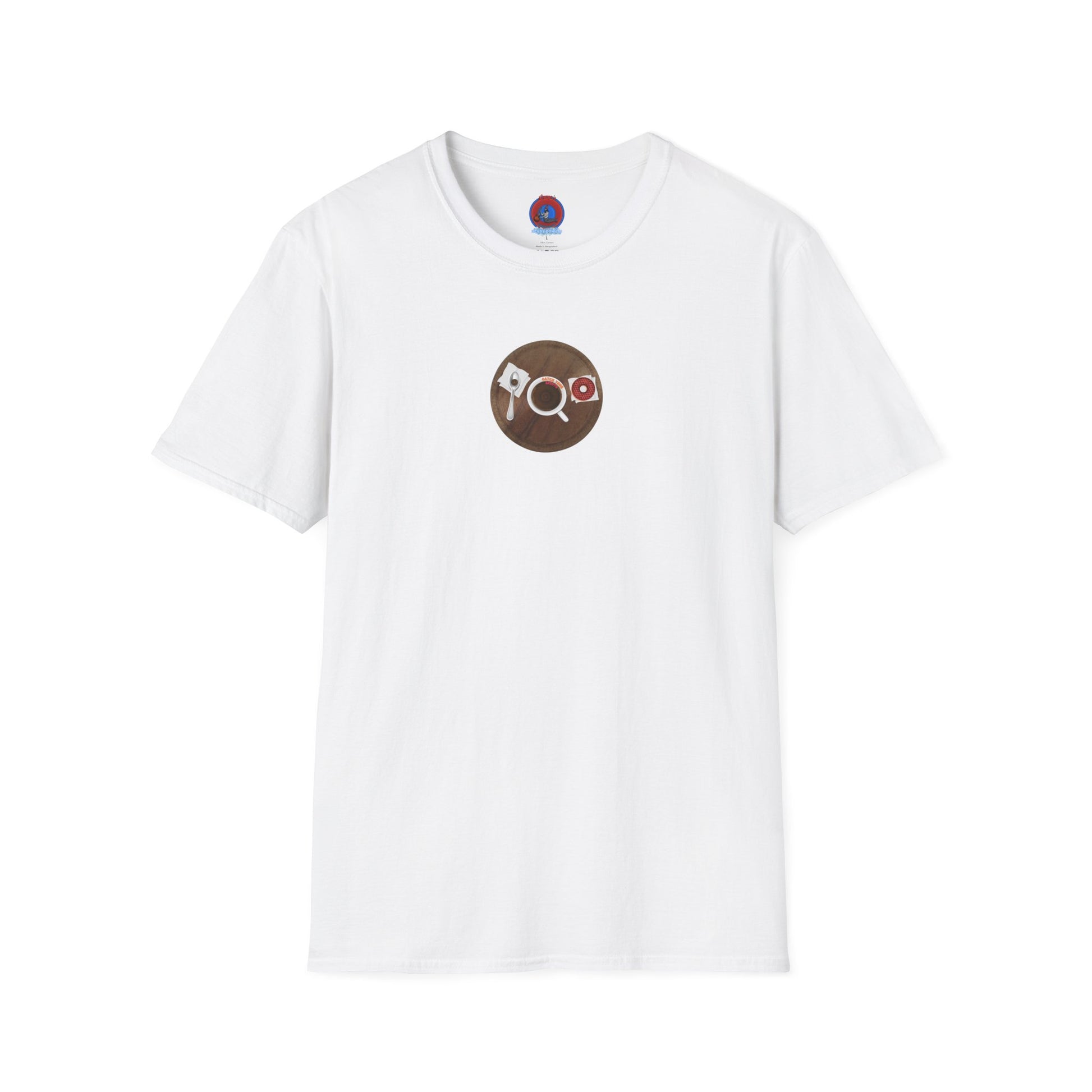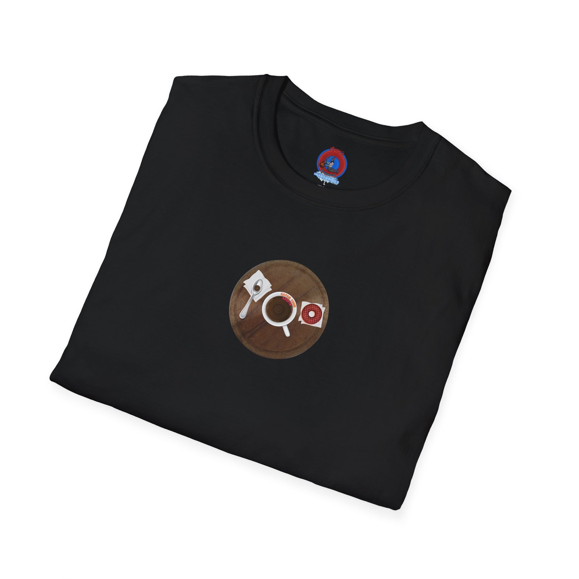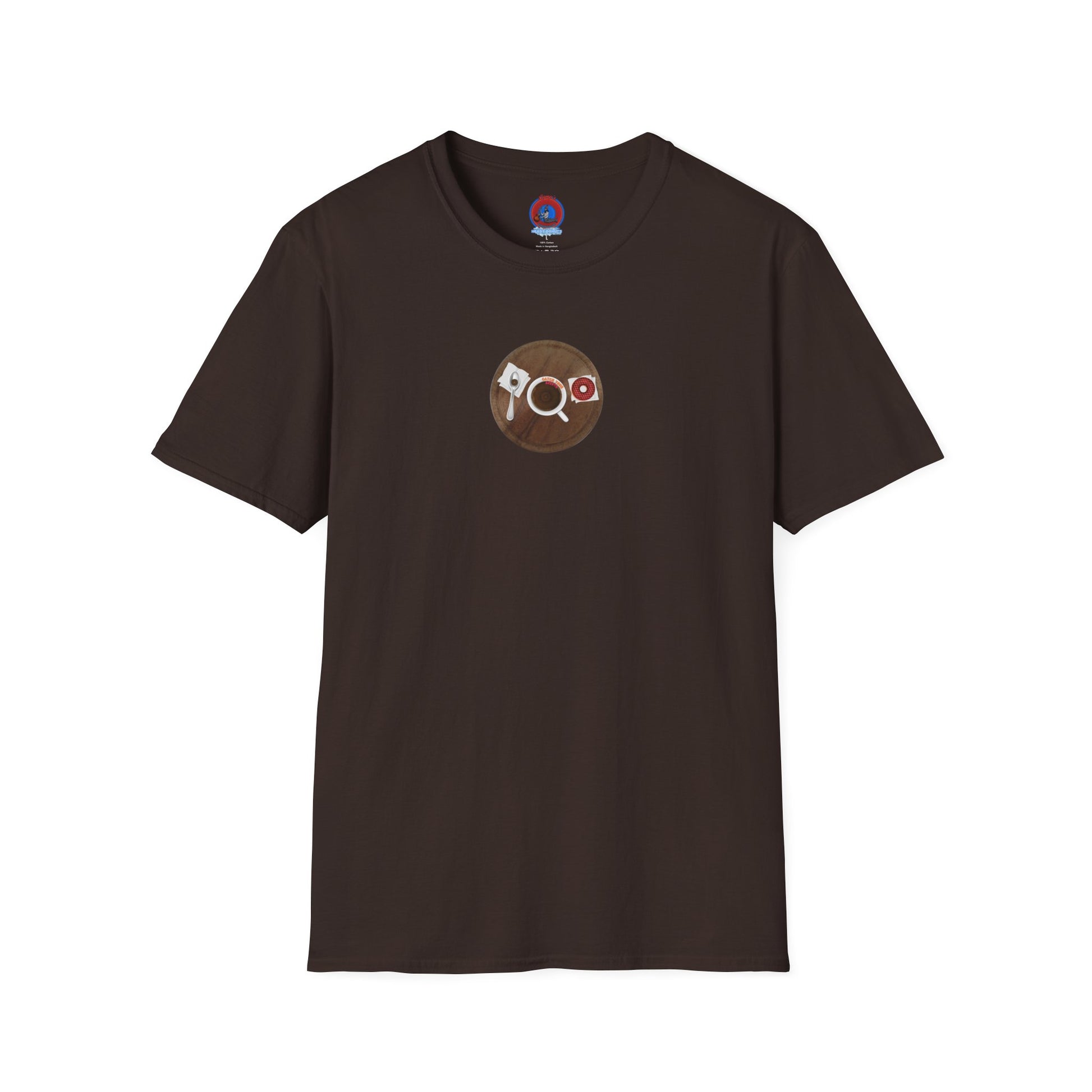Coffee Traders Tee - Unisex Soft-Style - "Columbia House CDs " - paradoxical donut - variant 1 - coffee front/logo back