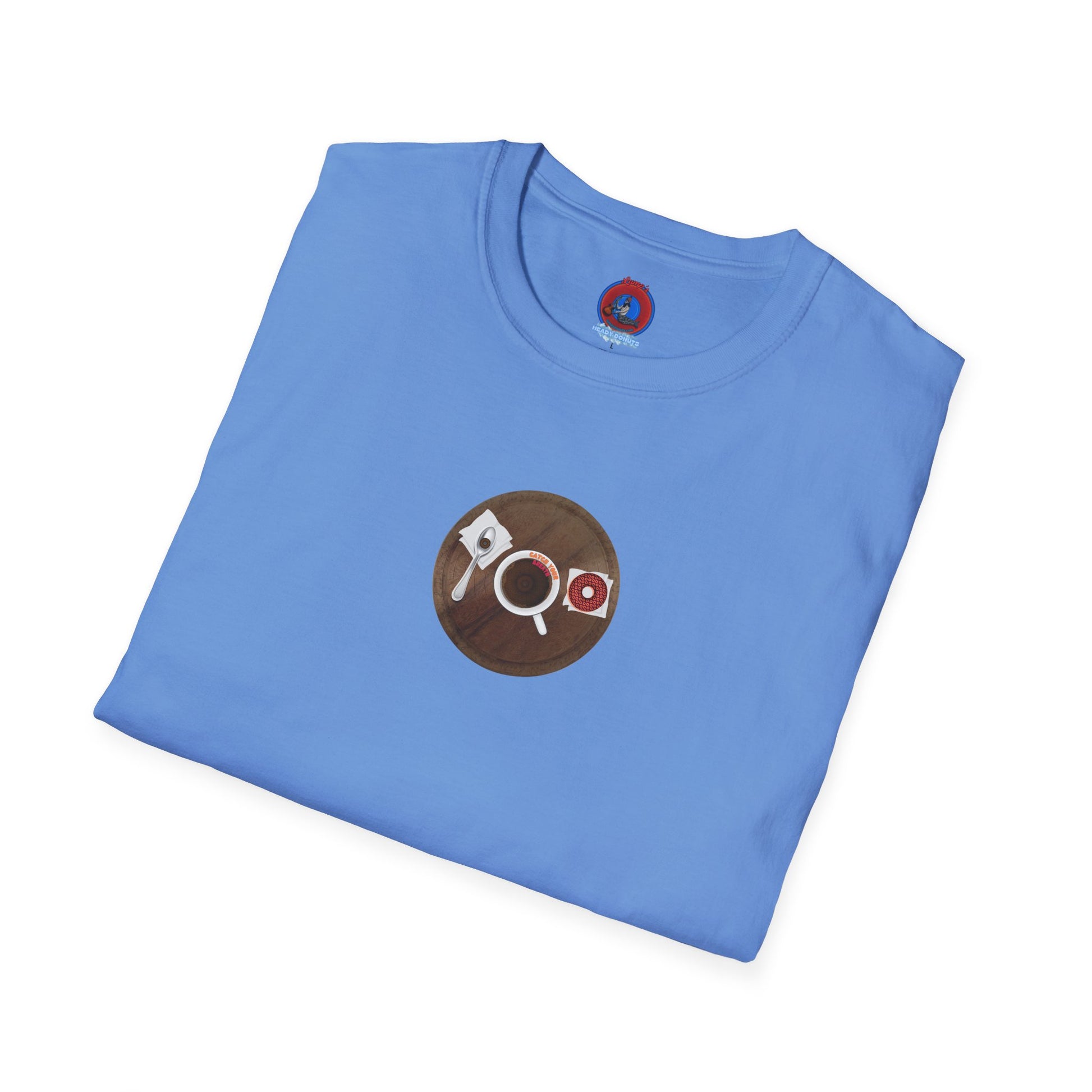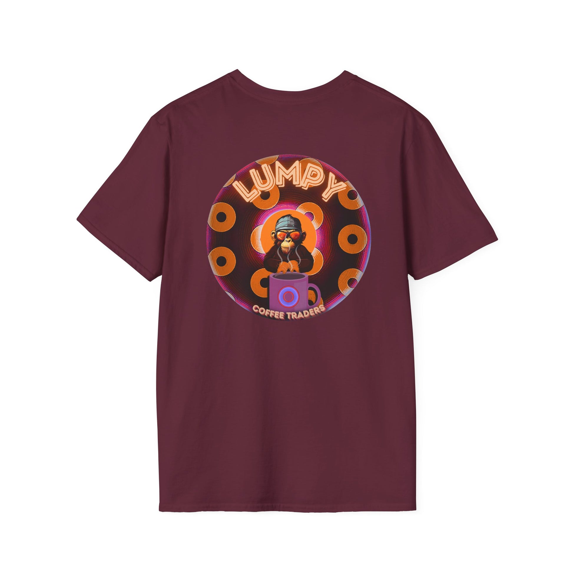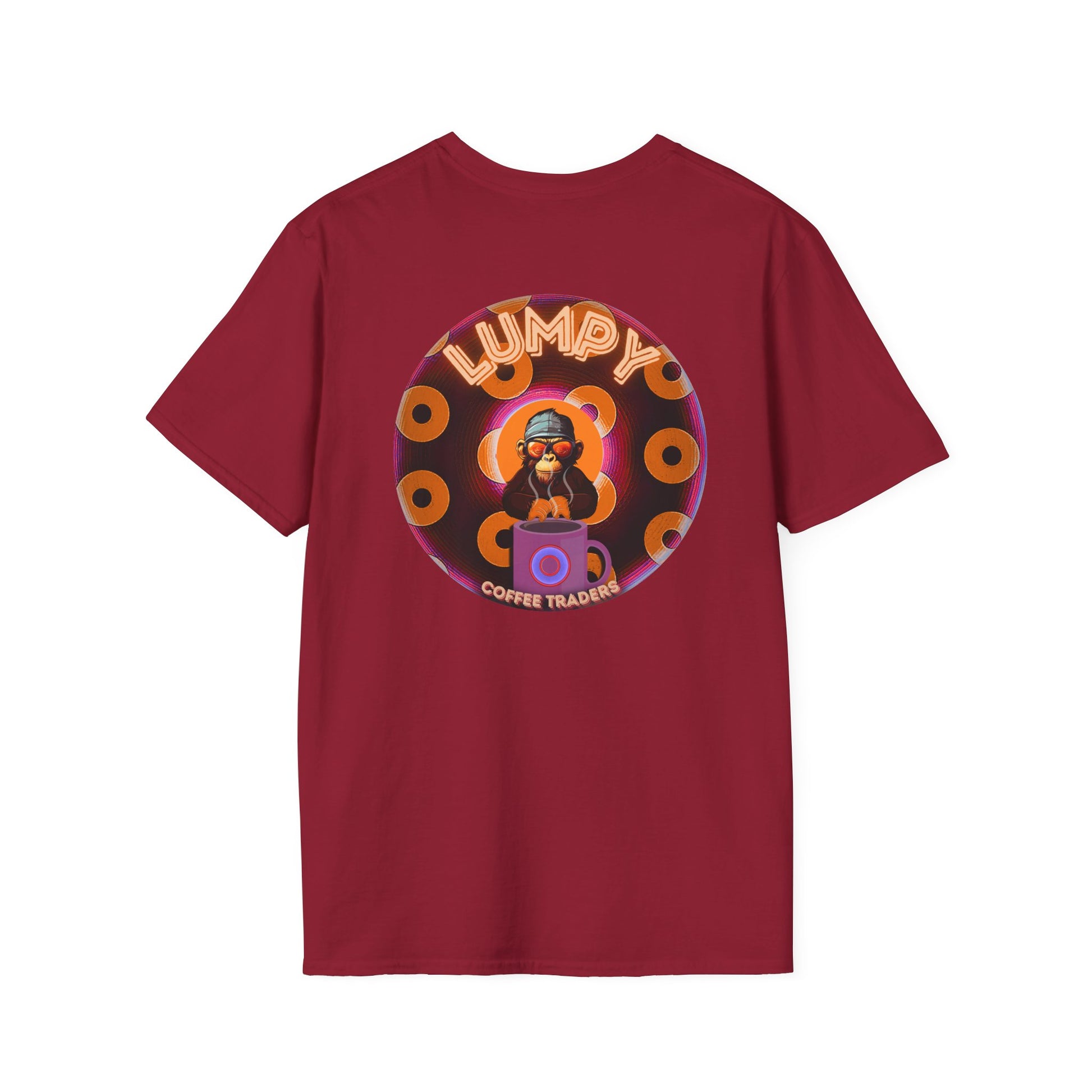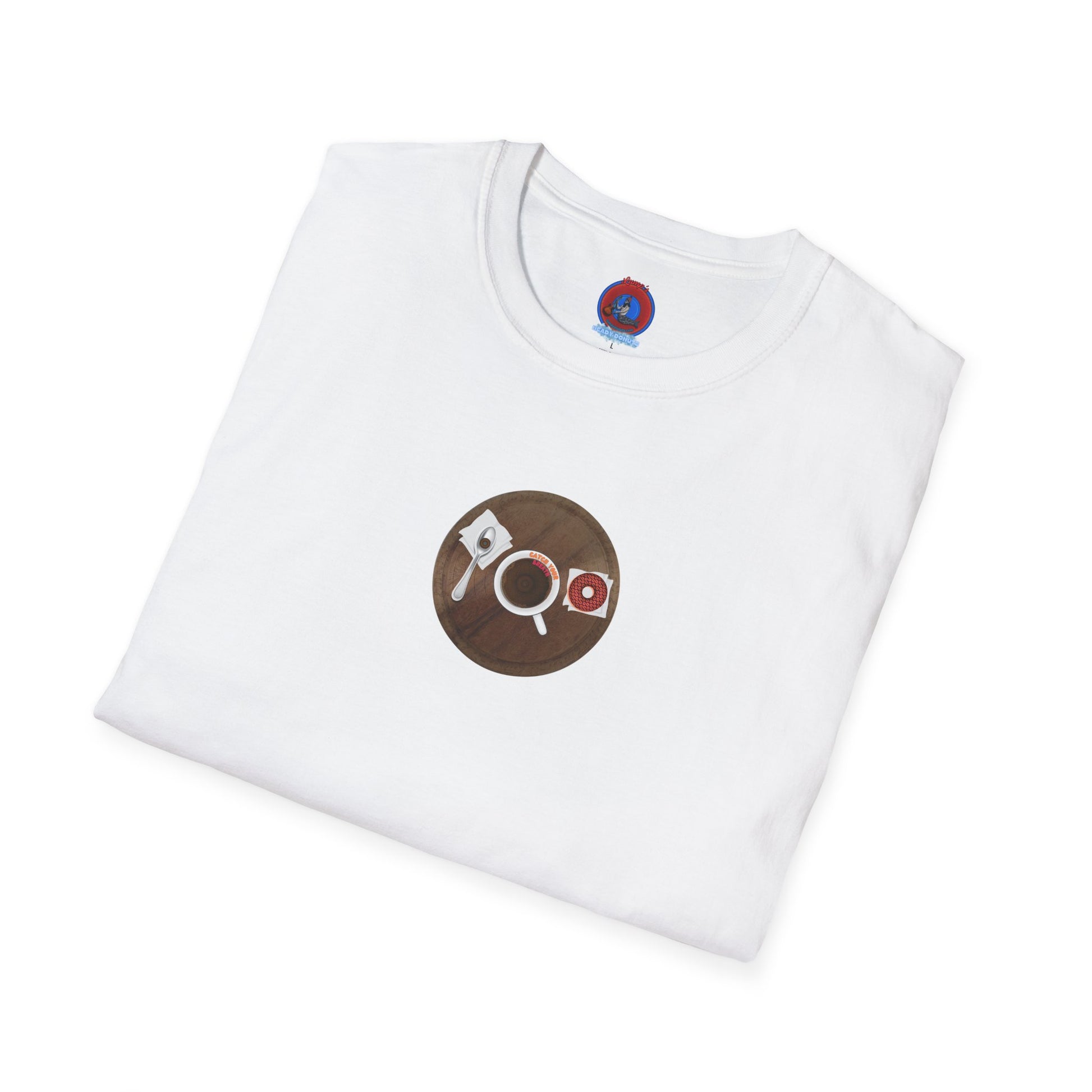 Coffee Traders Tee - Unisex Soft-Style - "Columbia House CDs " - paradoxical donut - variant 1 - coffee front/logo back
