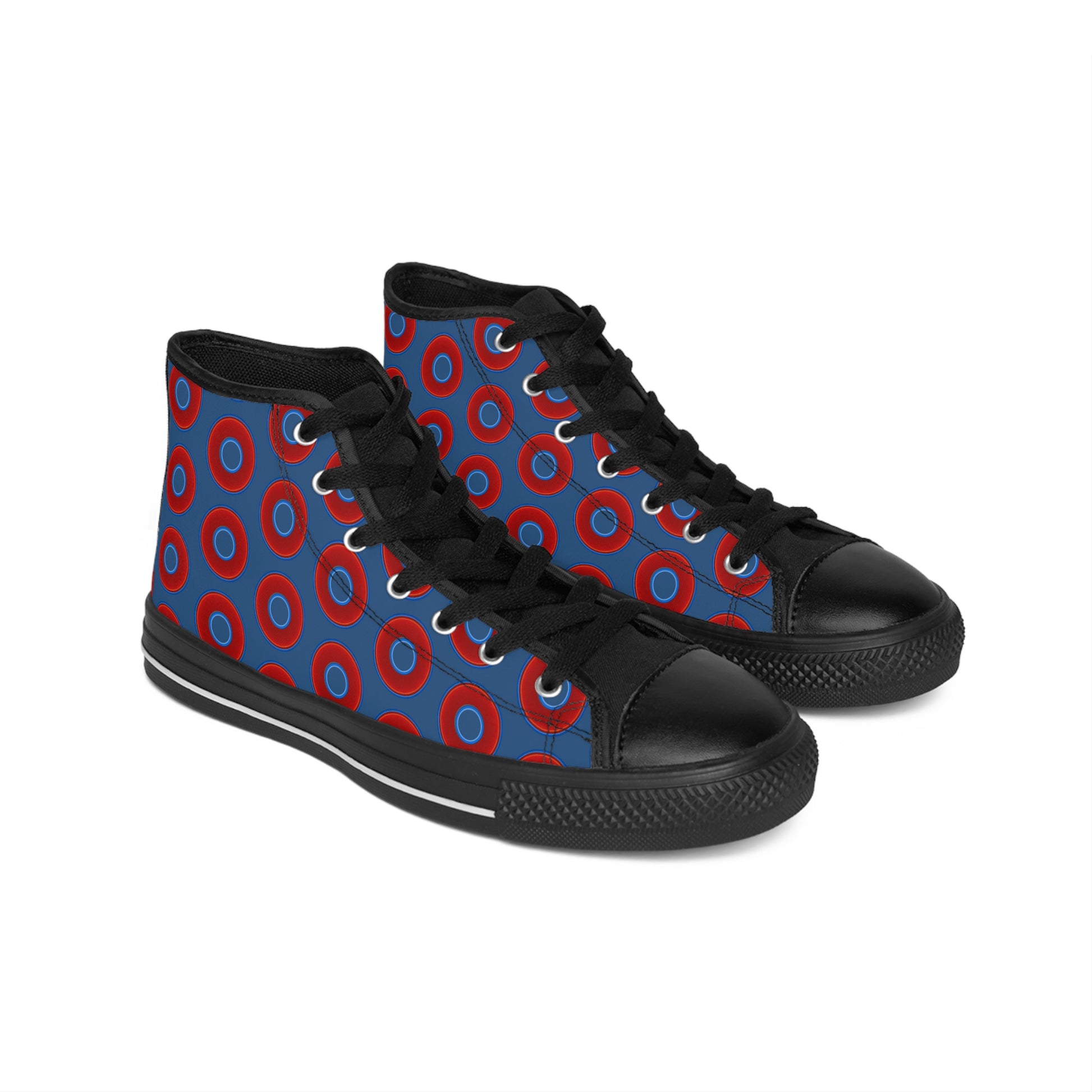 Cushiony Convectors - High Tops - red vivid donuts w/light navy blue background