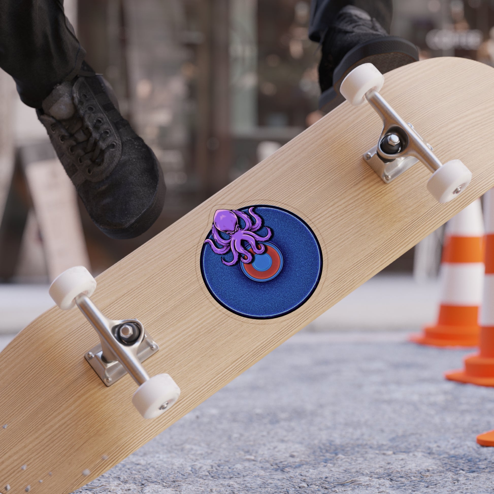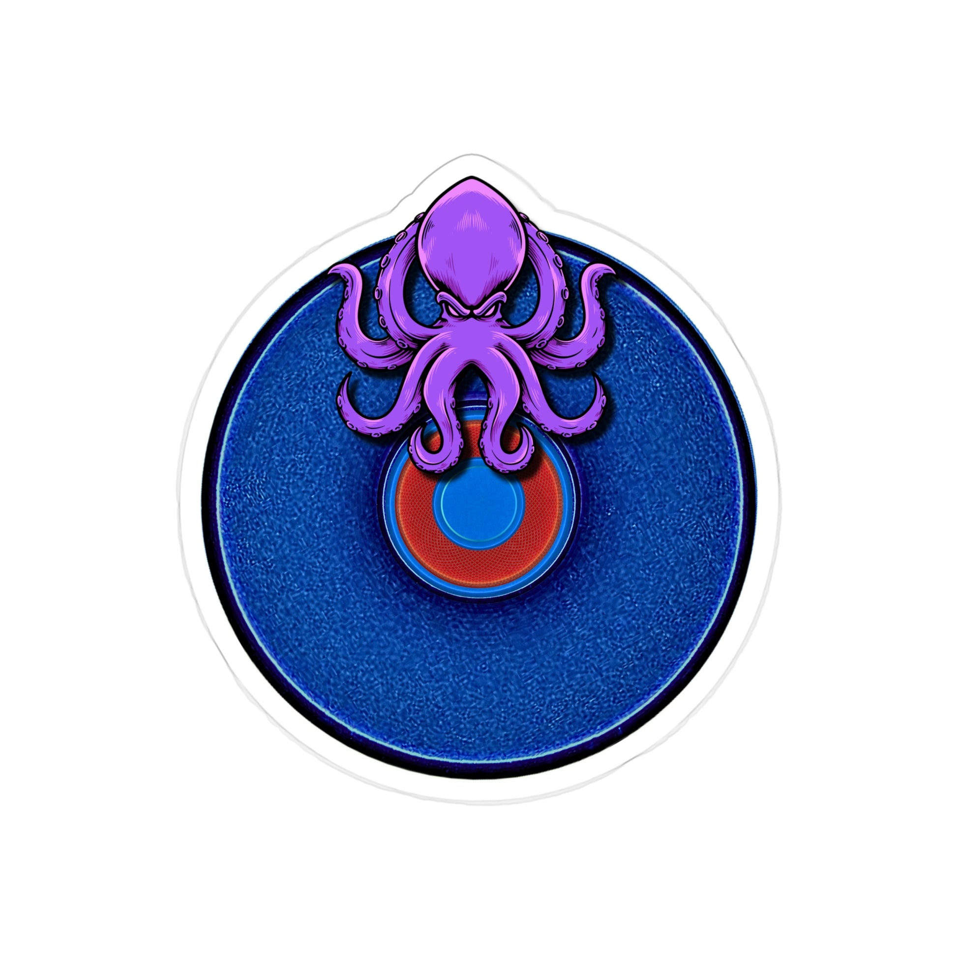 Donut Bumper/Outdoor Sticker - "Roger Moore's Donut" - variant 4 - blue donut w/octopus & red donut center - [Die-Cut] 6"x 6"