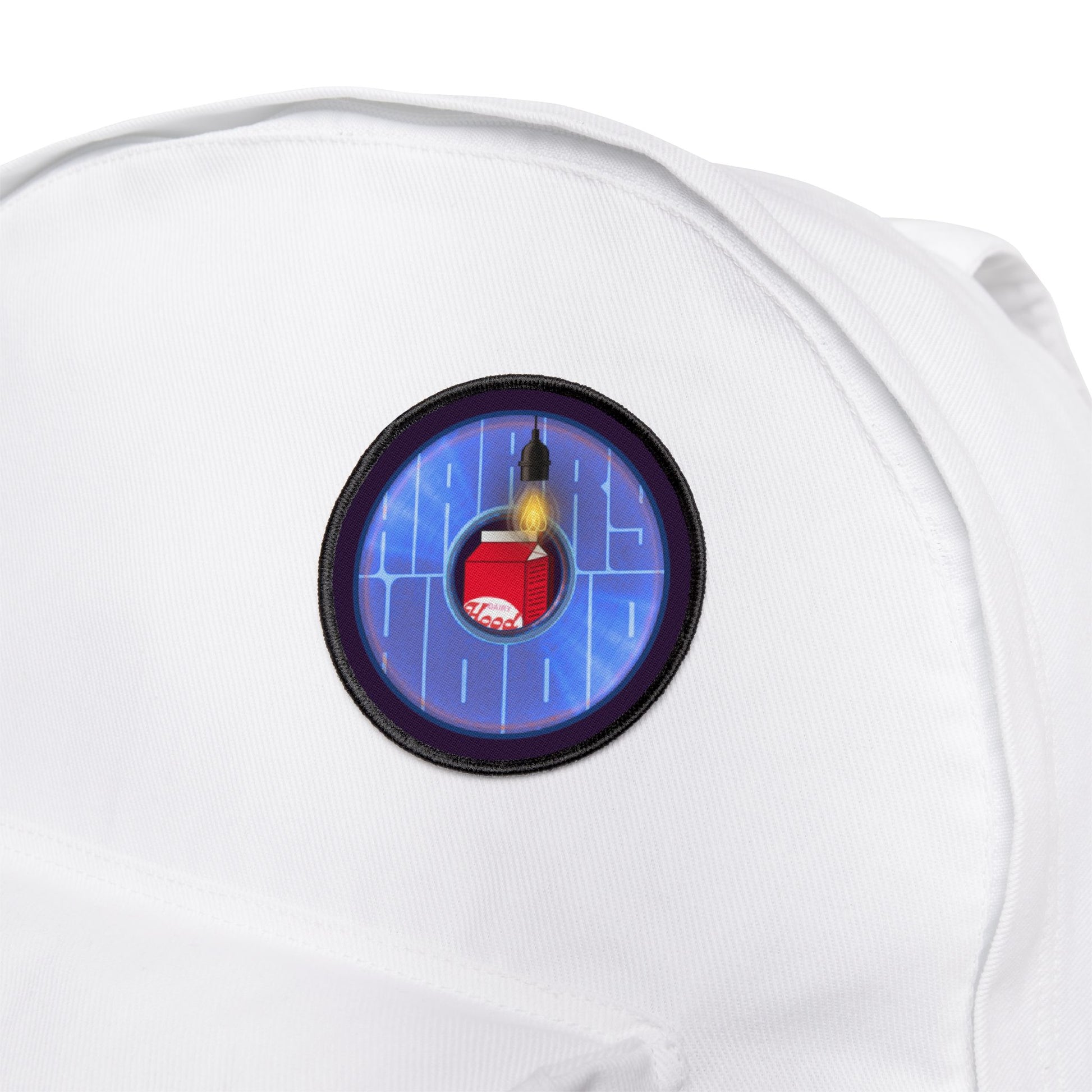 Iron-On Donut Patch - "Harry Preferred Donut Patch" - vivid blue/violet word donut - variant 4