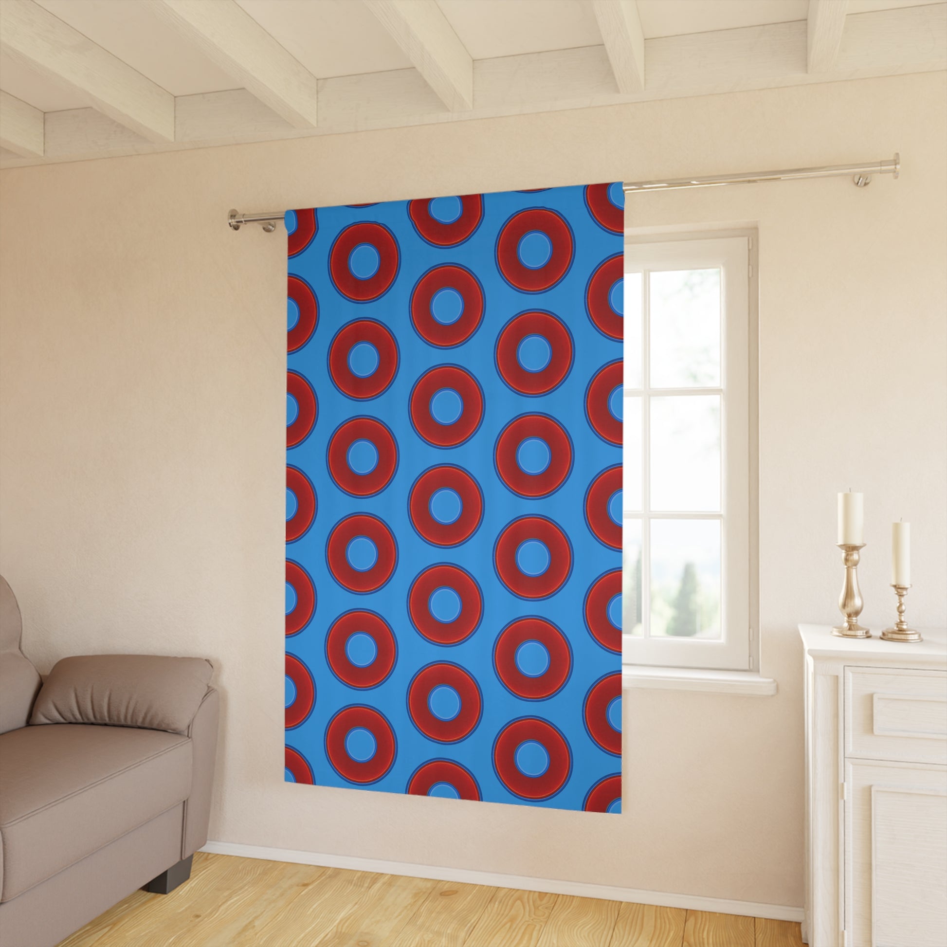 Lump's Heady Curtain w/Donuts - vivid red donut print - w/sky royal blue - [*1 Piece / 50" x 84"]